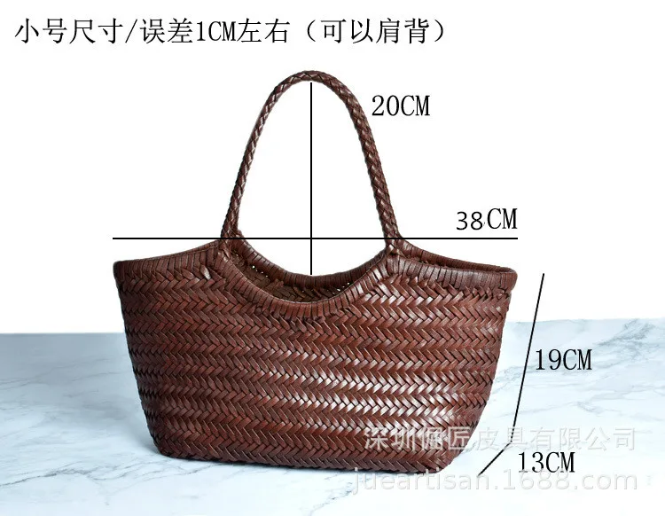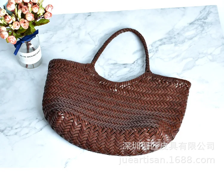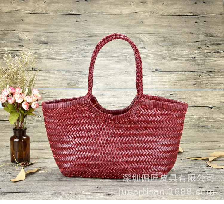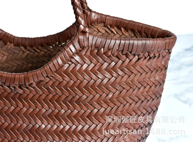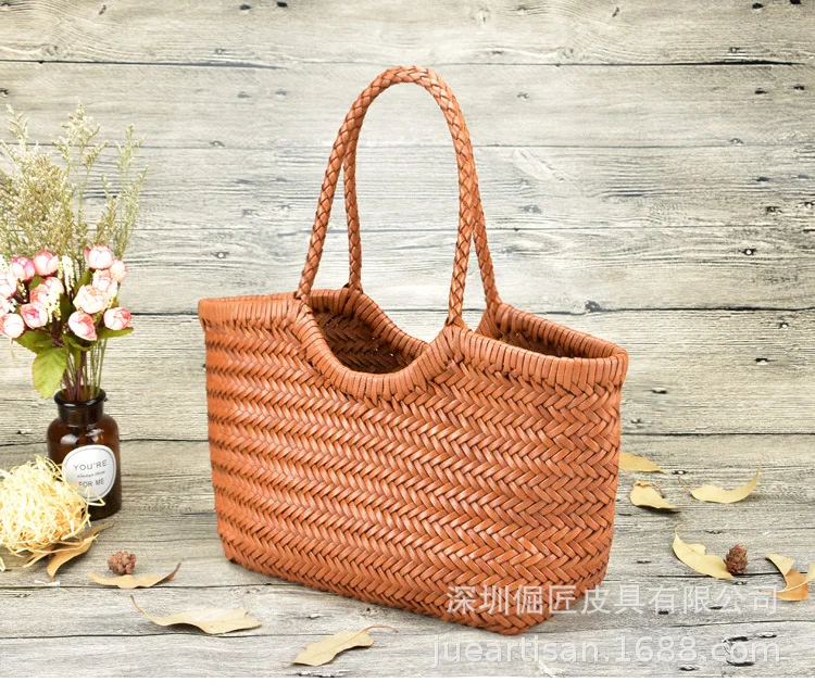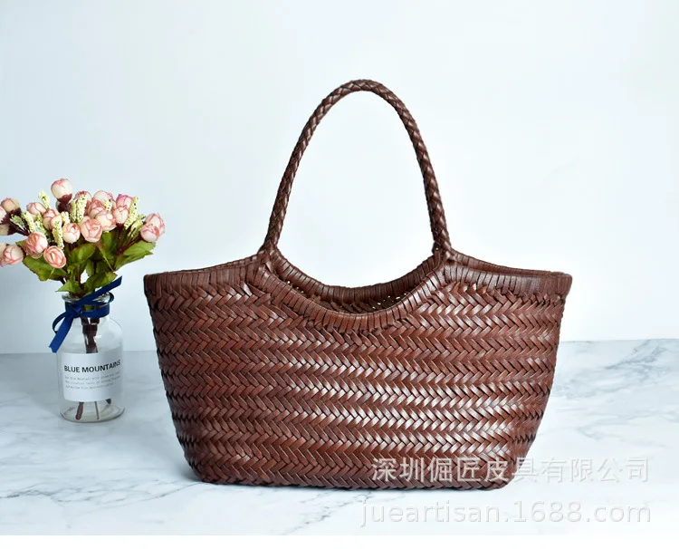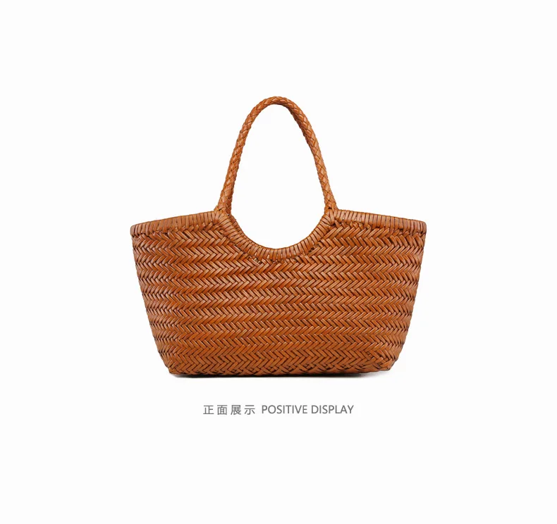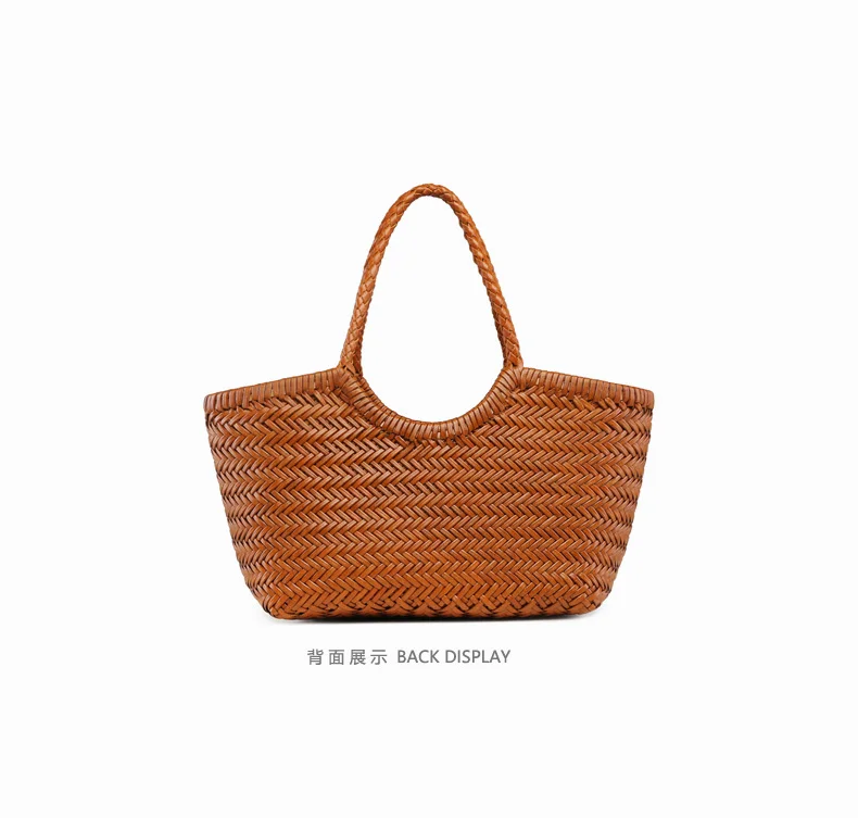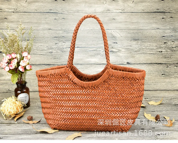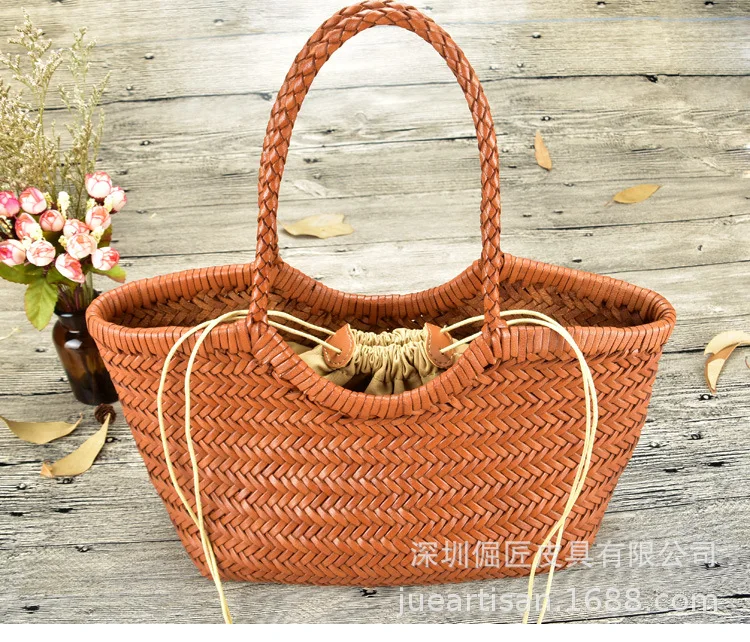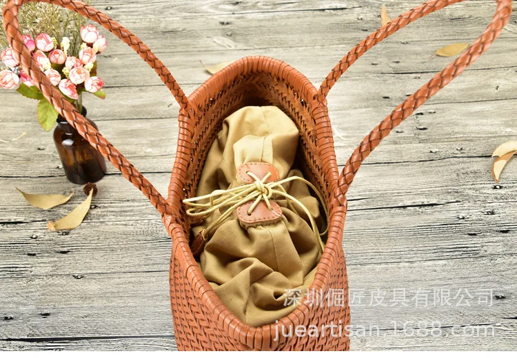 Hand-woven 100% Genuine Leather Woven casual vegetable basket bag with Casual Woven Inside Bag Vintage Shopping Bag Tote Bag Crossed Tote Bags