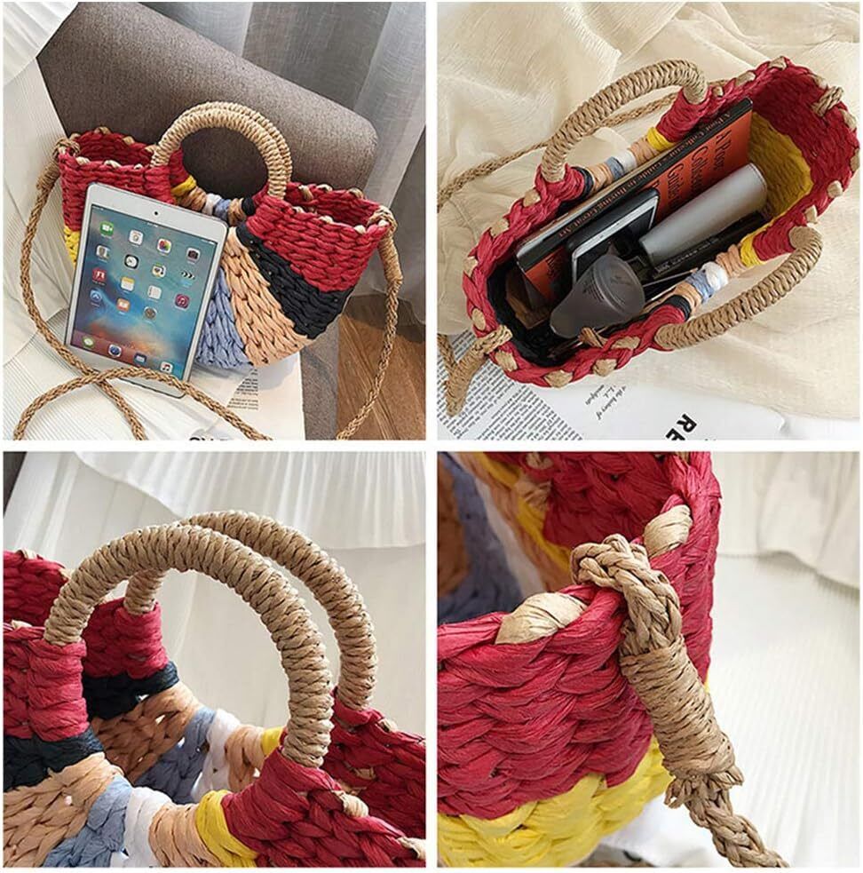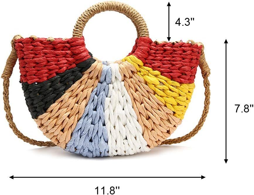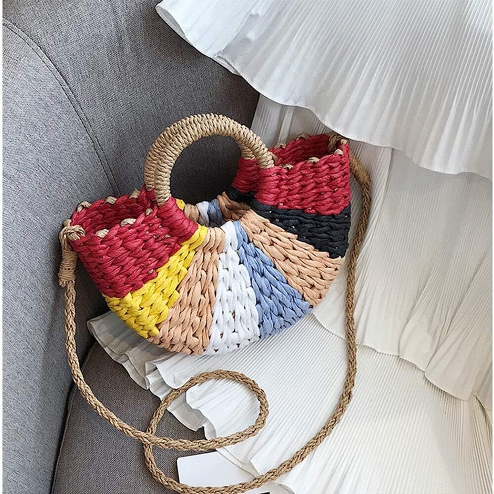 Hand Woven Rattan Women Retro Bag Colorful Boho Shoulder Crossbody Handle Gift