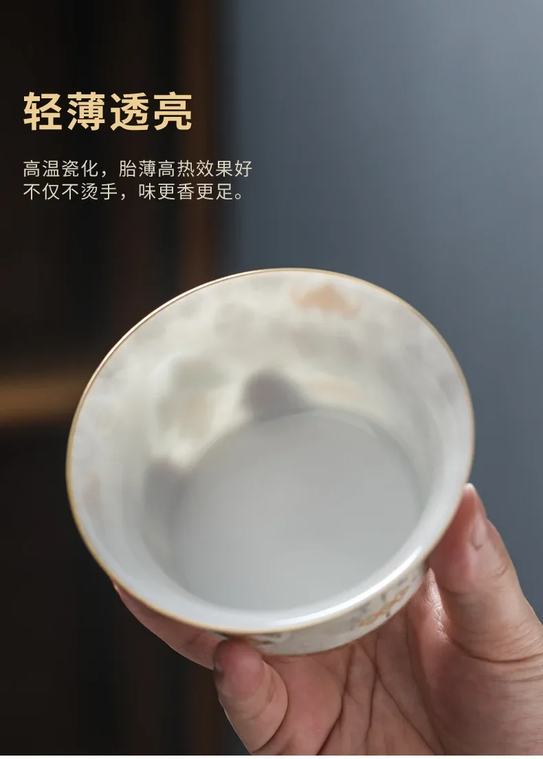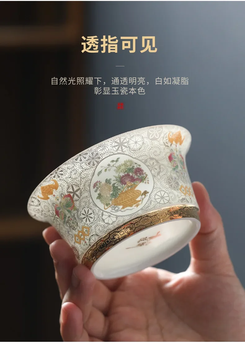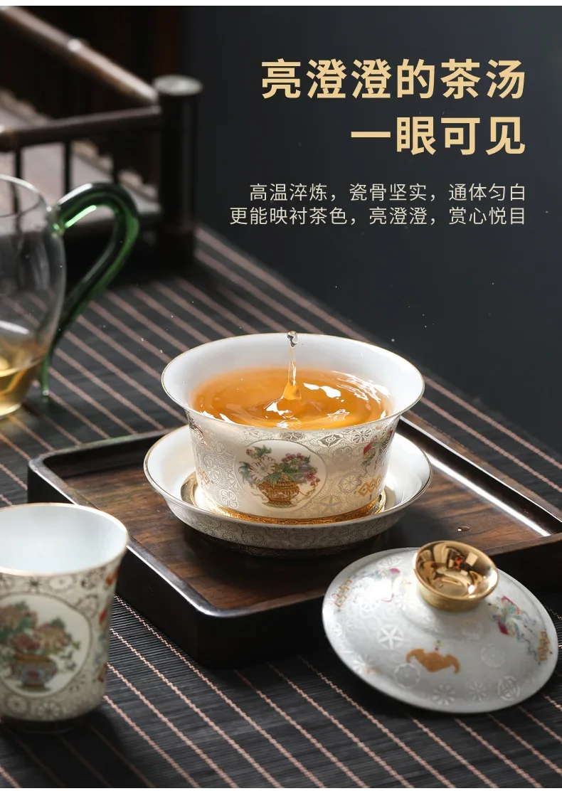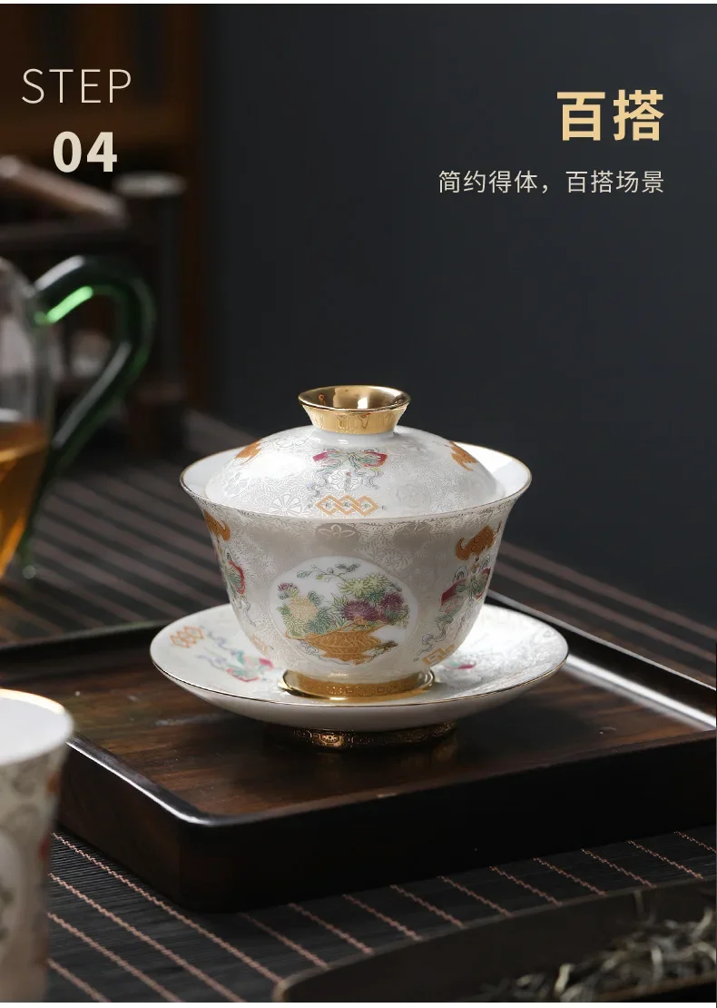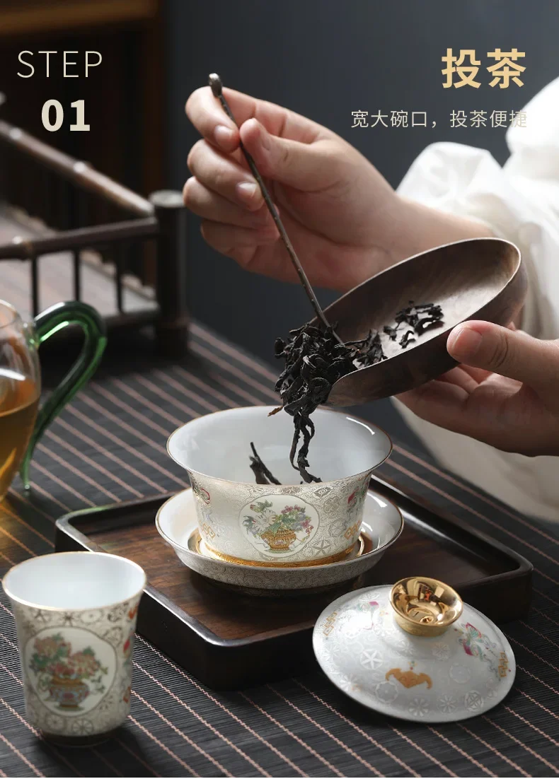 Handcrafted Goldpalace Enamel Colored Gaiwan Aesthetic Ceramic Bowl with Lid Tea Tureen Tea Maker Cover Bowl Teaset Collection