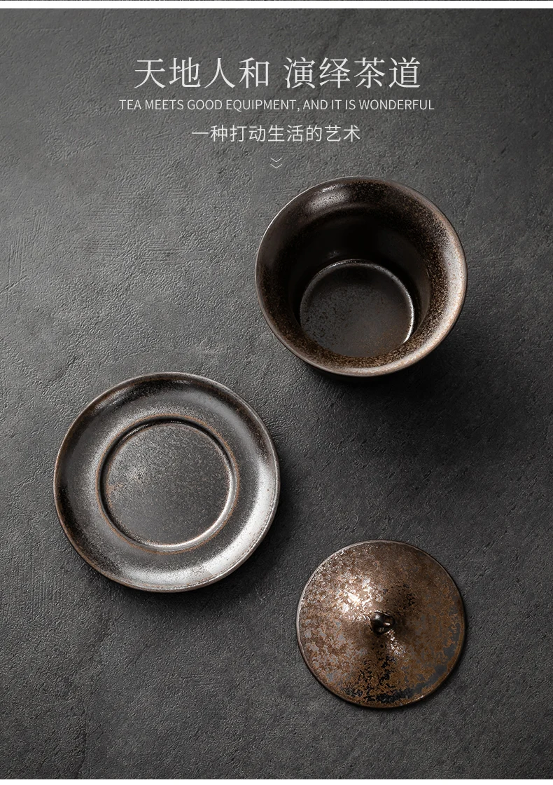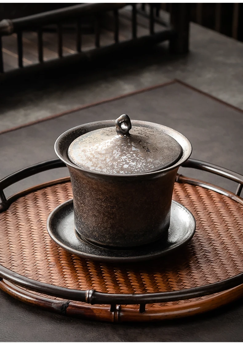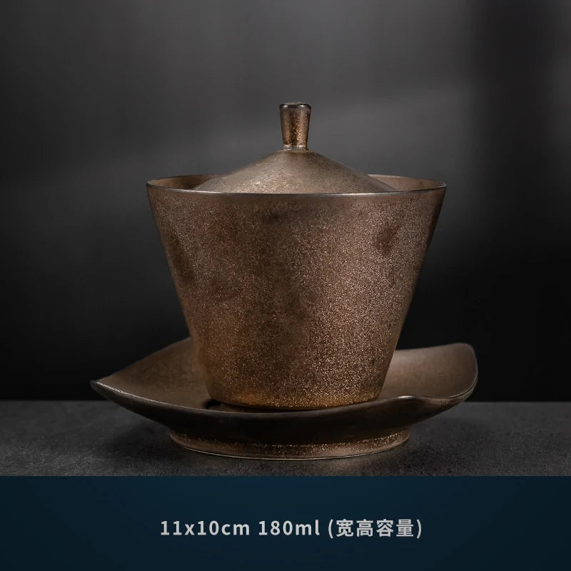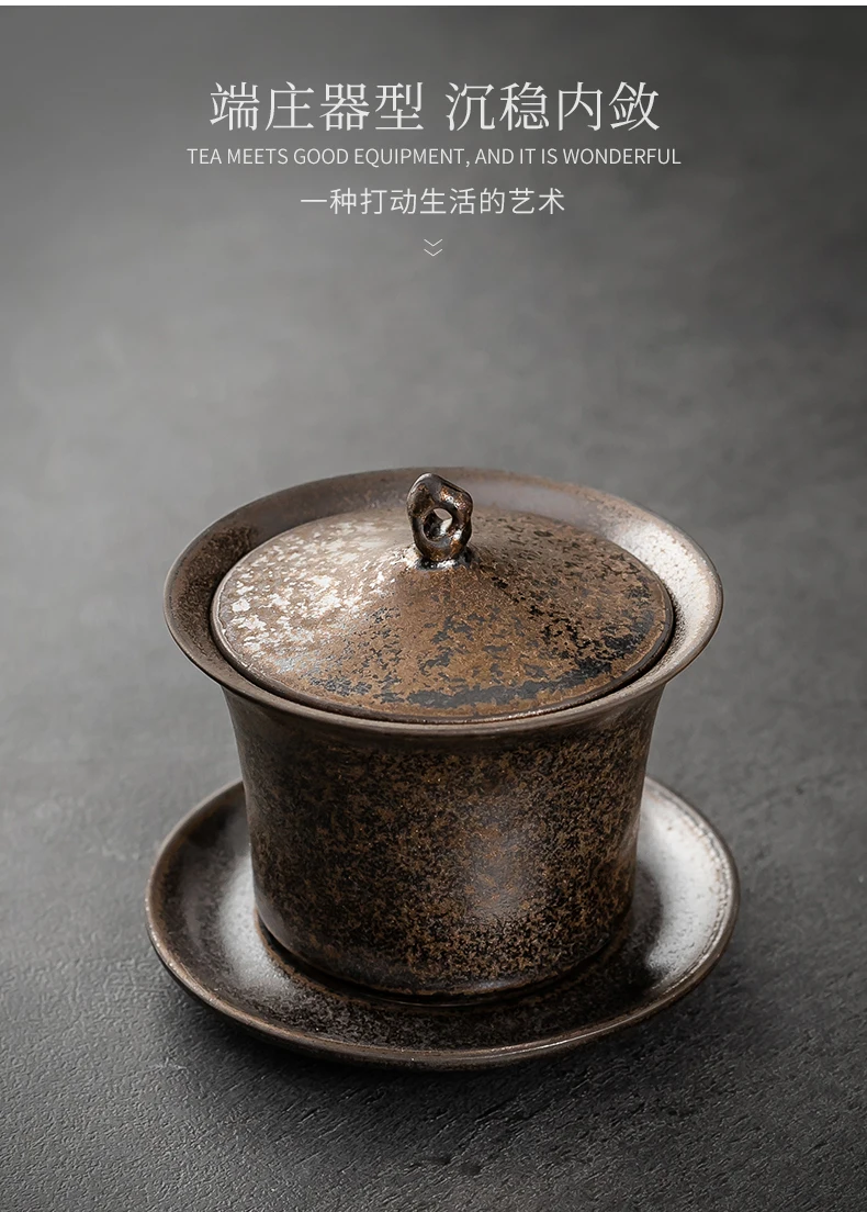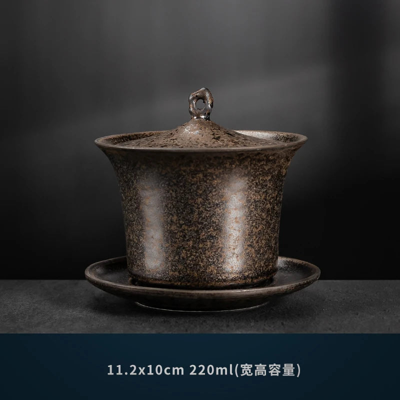 Handmade Ceramic Tea Set Gaiwan Japanese Style Tureen Teacup Rust Sancai Cup Single Large Tea Bowl Teaware Kitchen Dining Bar