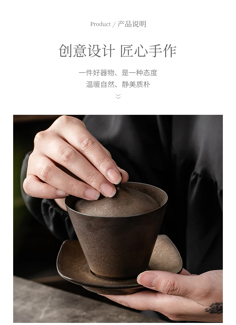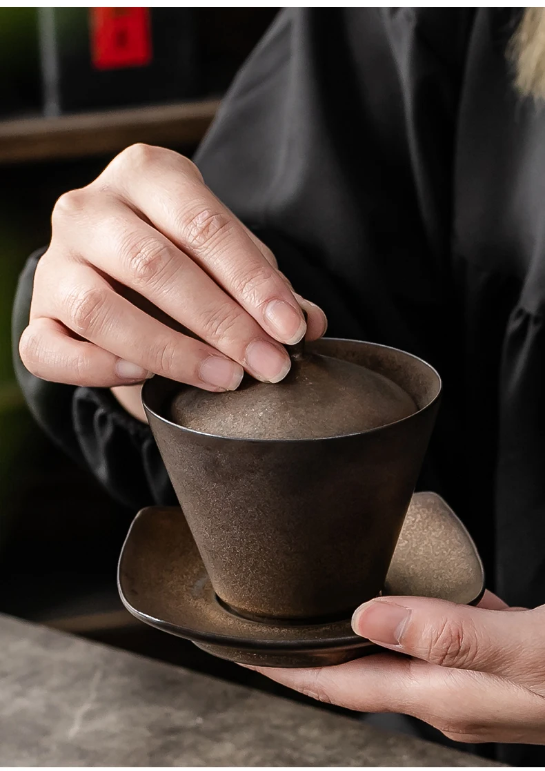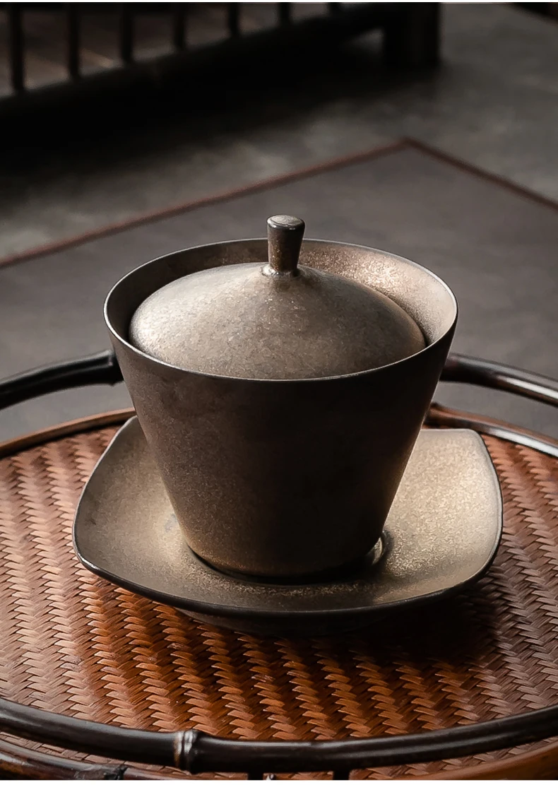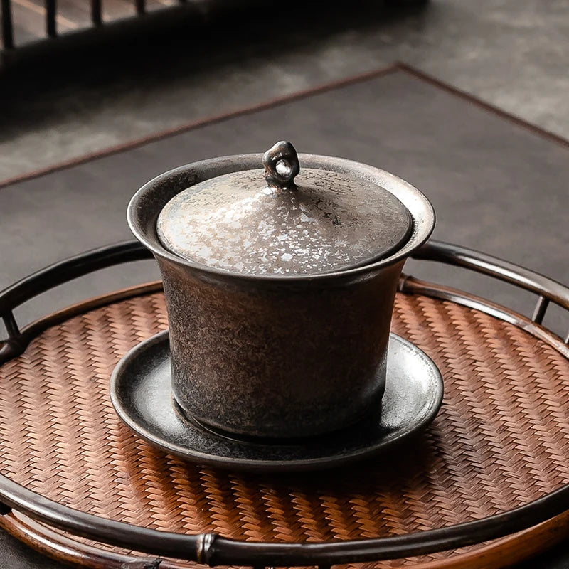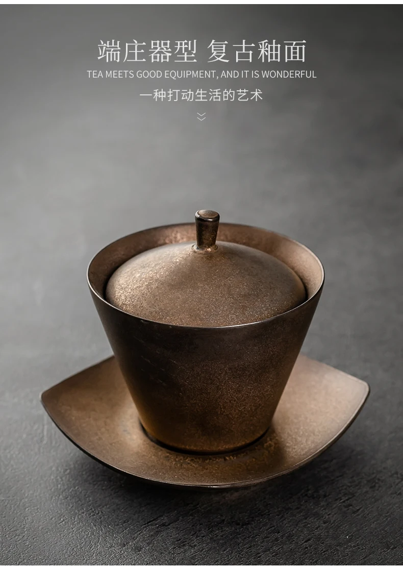 Handmade Ceramic Tea Set Gaiwan Japanese Style Tureen Teacup Rust Sancai Cup Single Large Tea Bowl Teaware Kitchen Dining Bar