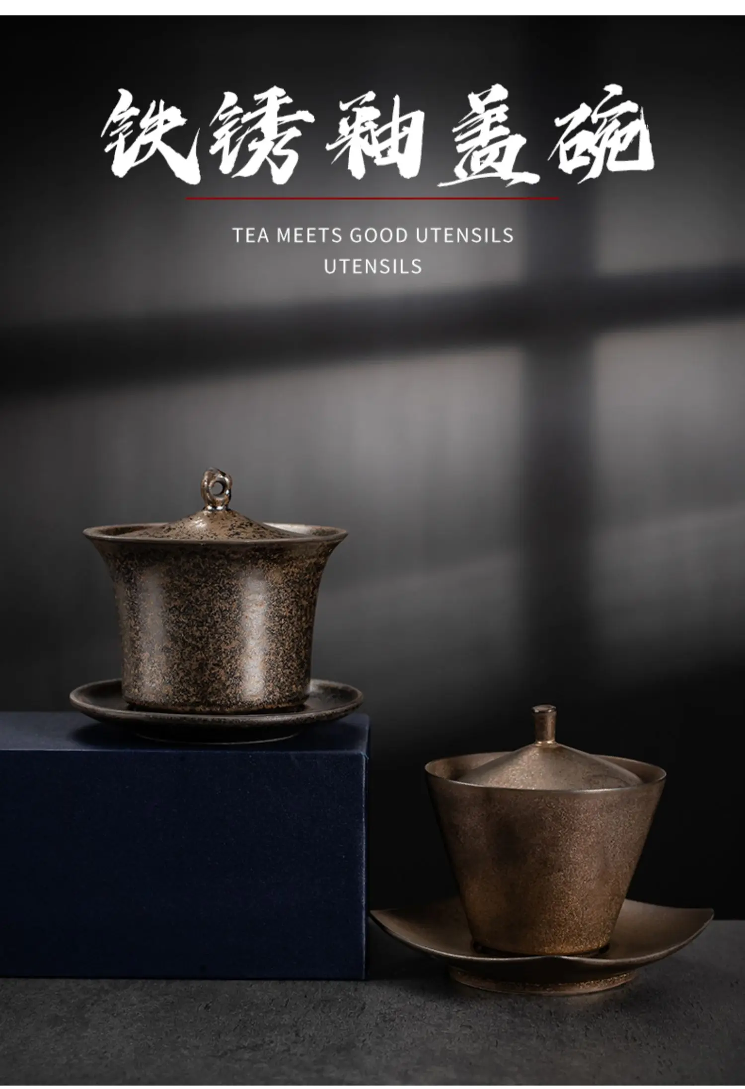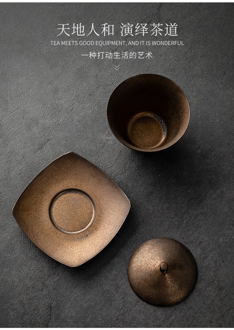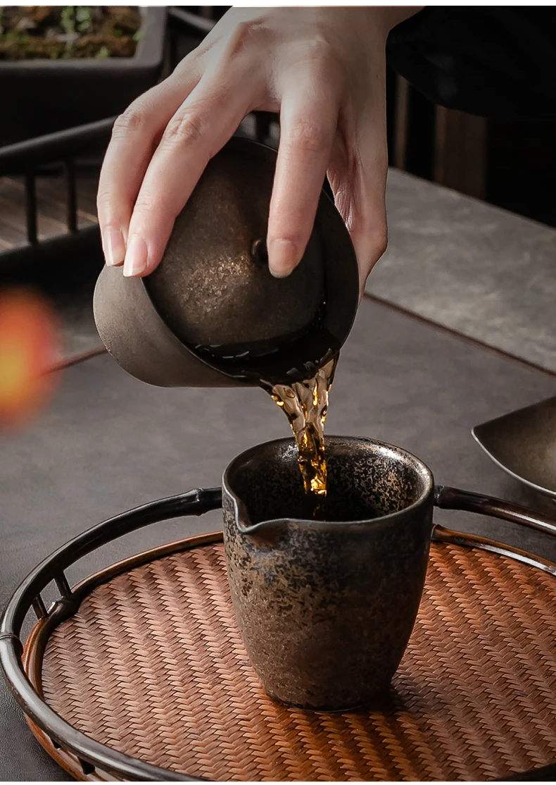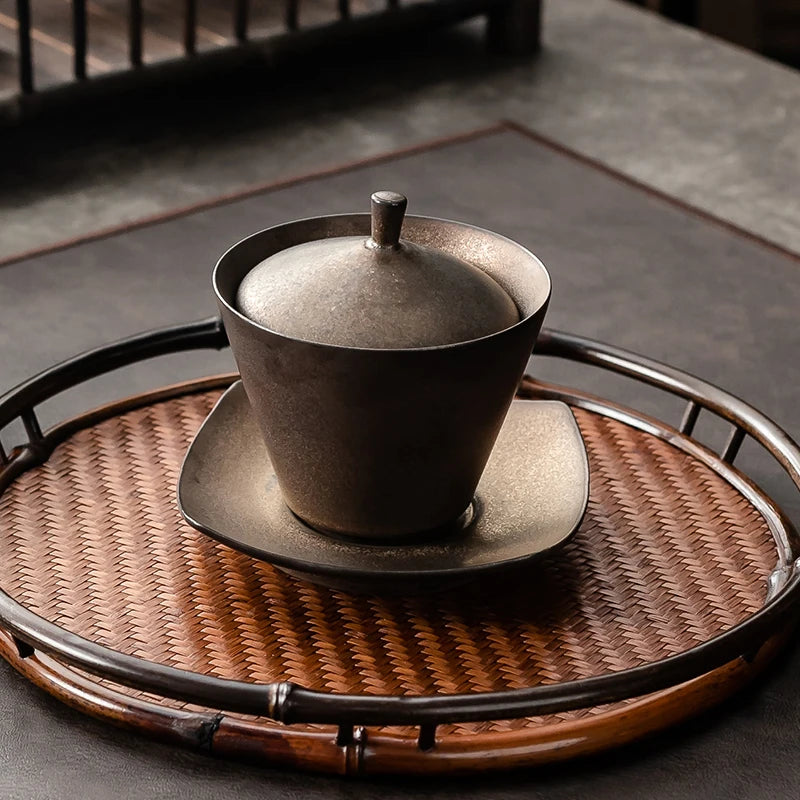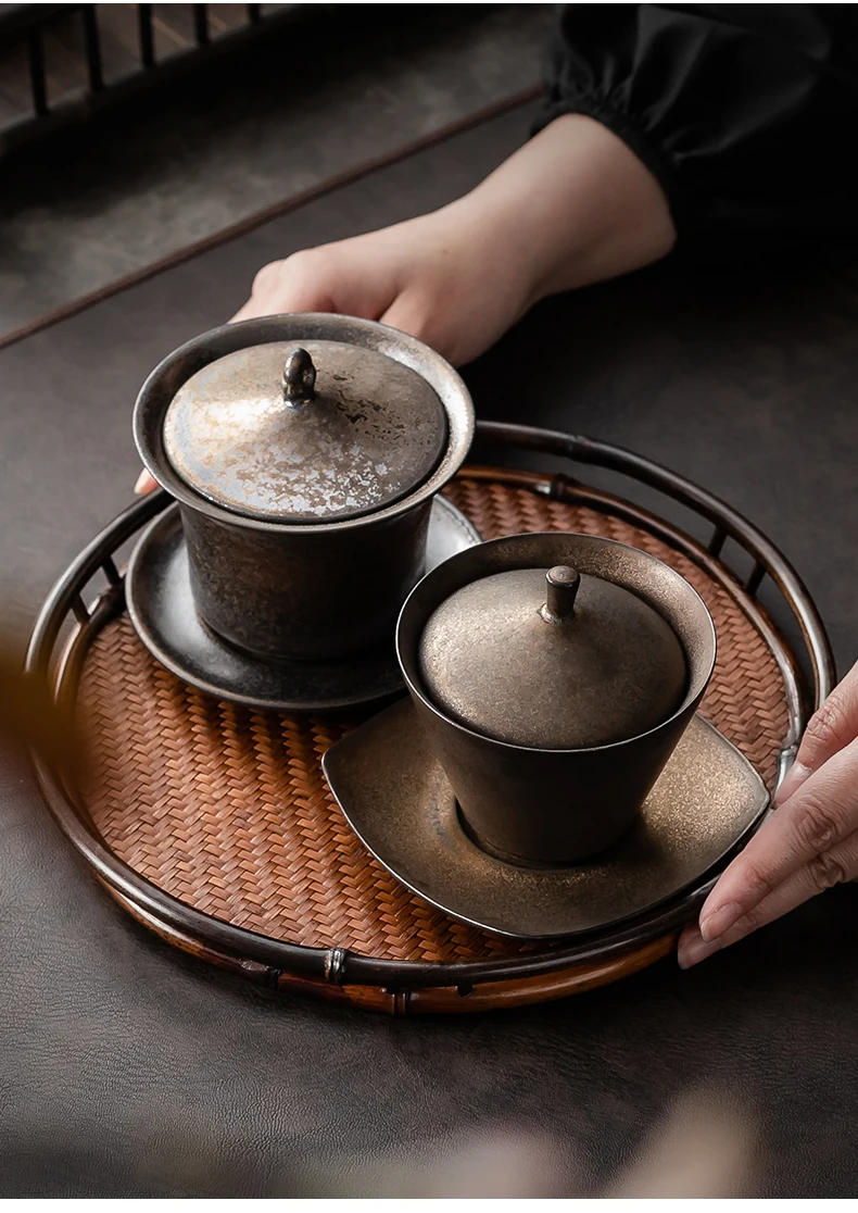Handmade Ceramic Tea Set Gaiwan Japanese Style Tureen Teacup Rust Sancai Cup Single Large Tea Bowl Teaware Kitchen Dining Bar