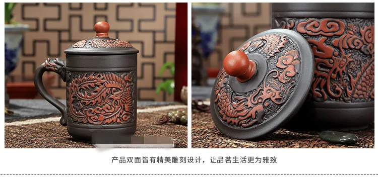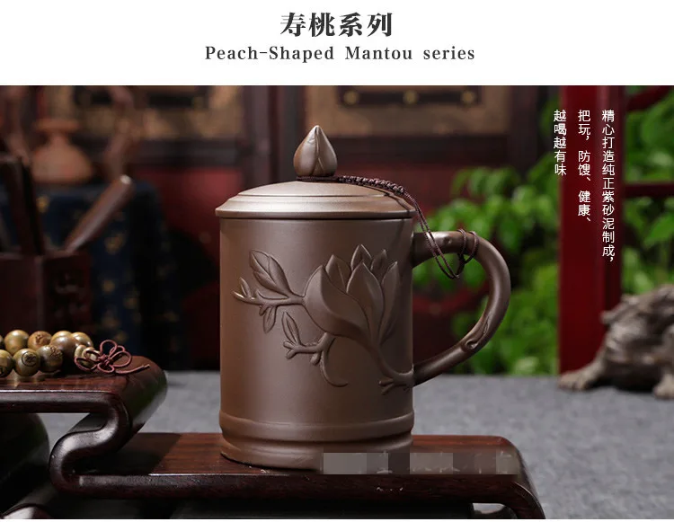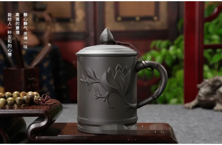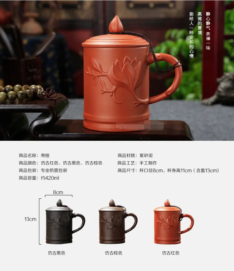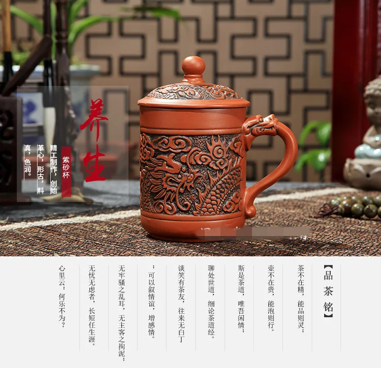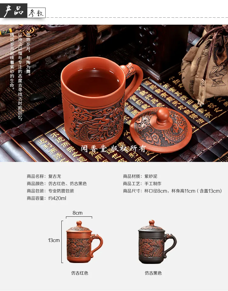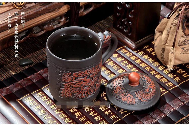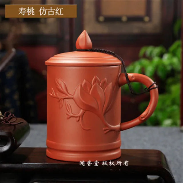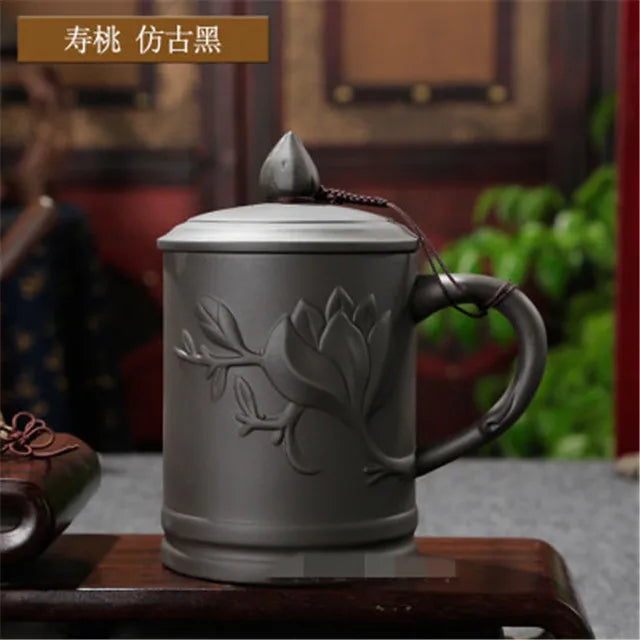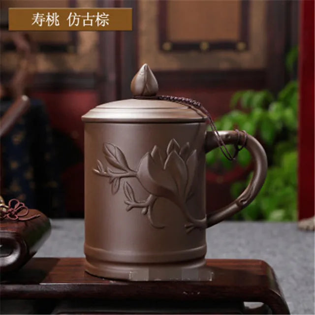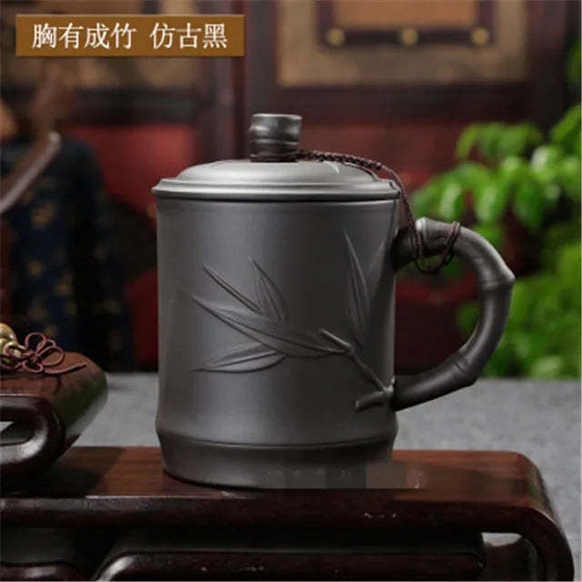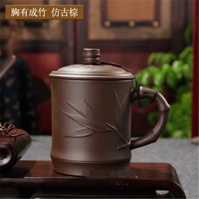 Handmade Purple Clay Teacup with Lid Yixing Purple Grid Tea Cups Chinese Zisha Kung Fu Tea Mug Office Drop Shipping