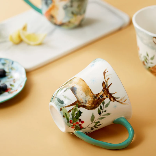 Handpainted Ceramic Tea Mug, Deer Cup, Owl Mug, Fox Mug