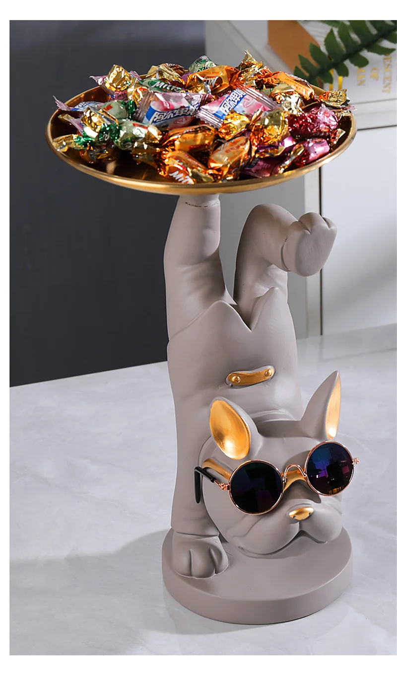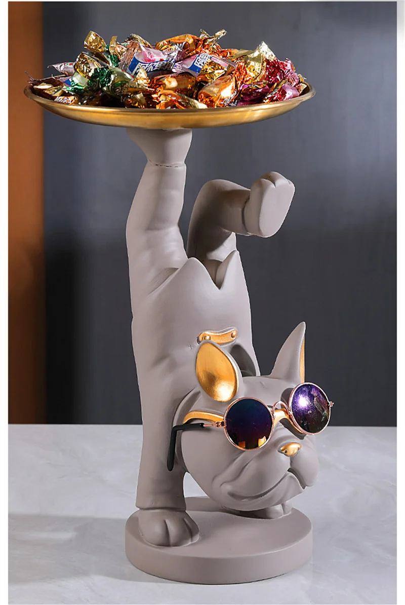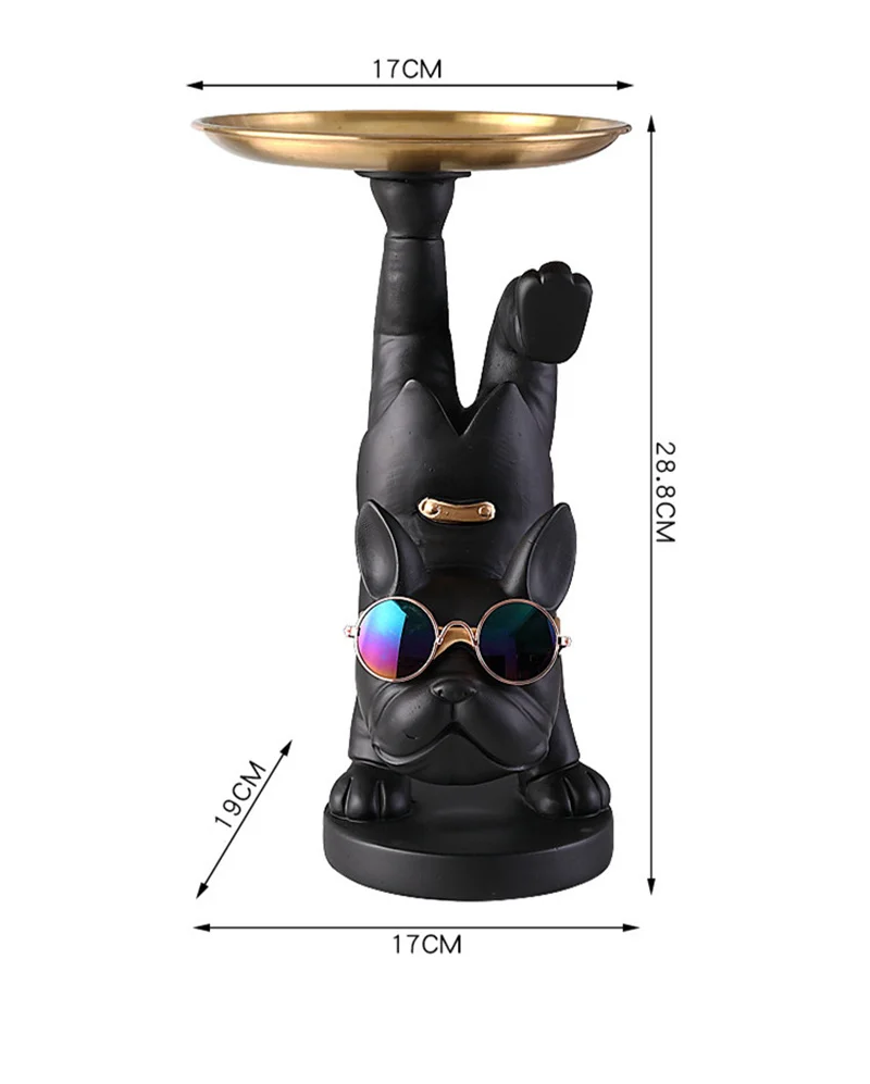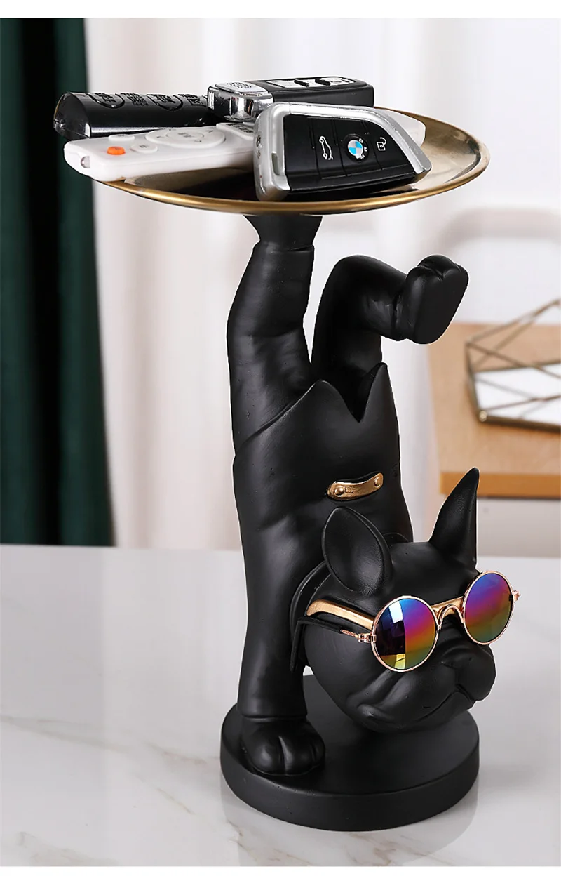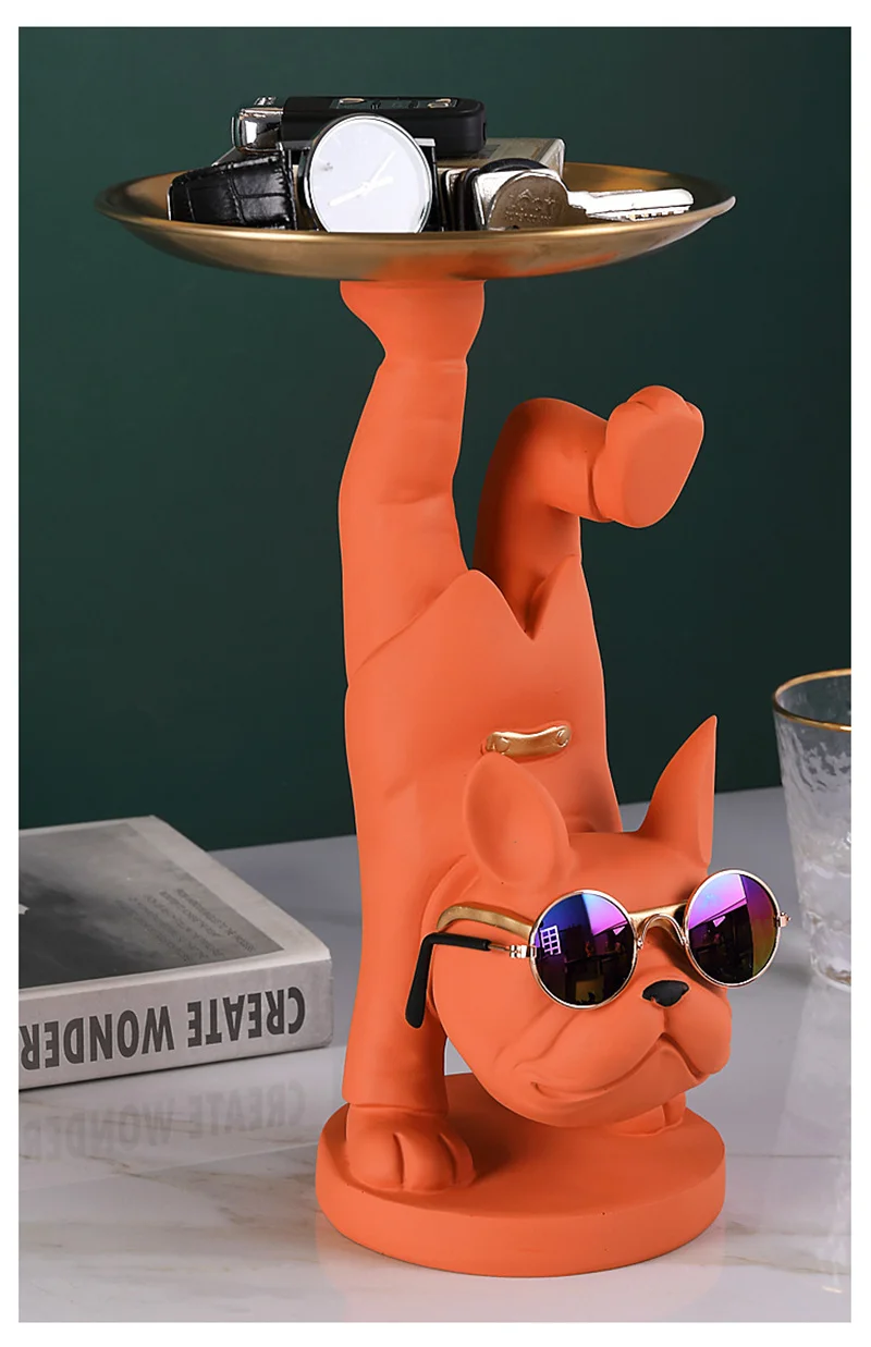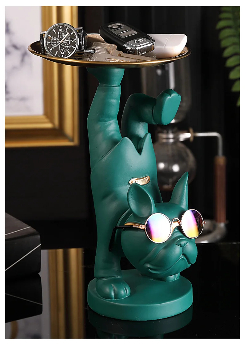 Handstand Dog Statue Decorative Storage Tray French Bulldog Home Decor Table Ornaments Animal Figurine for Room Desk Decoration