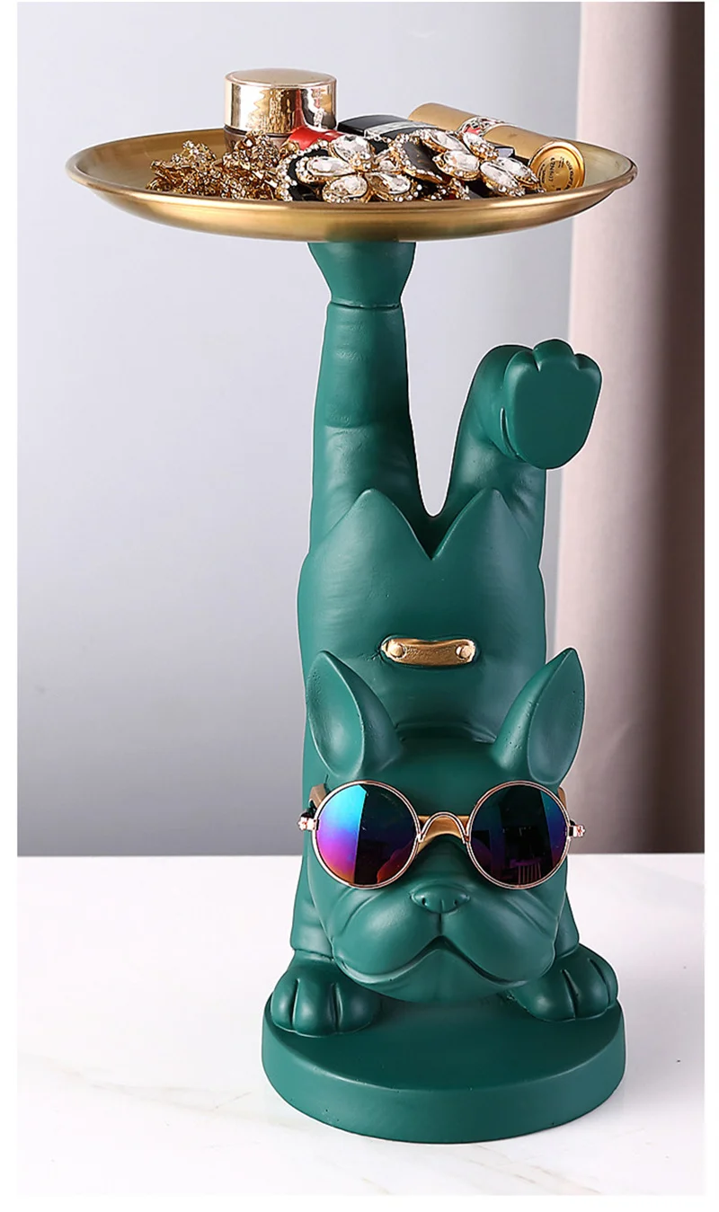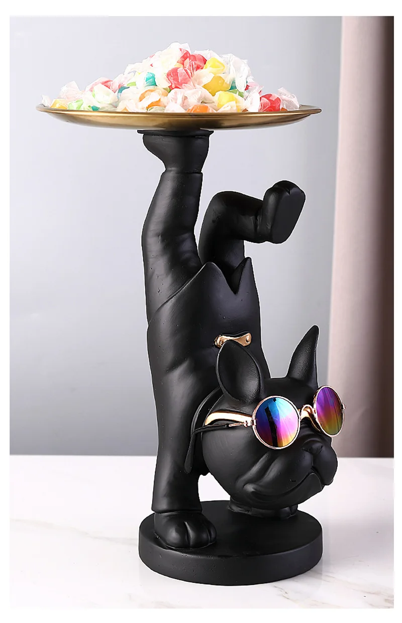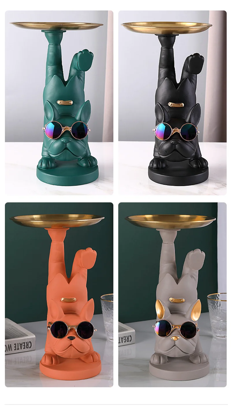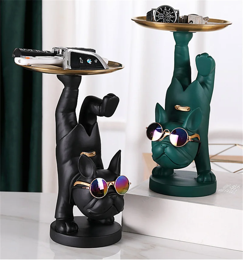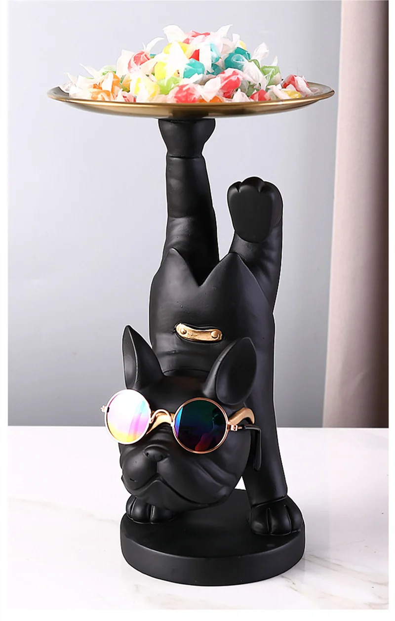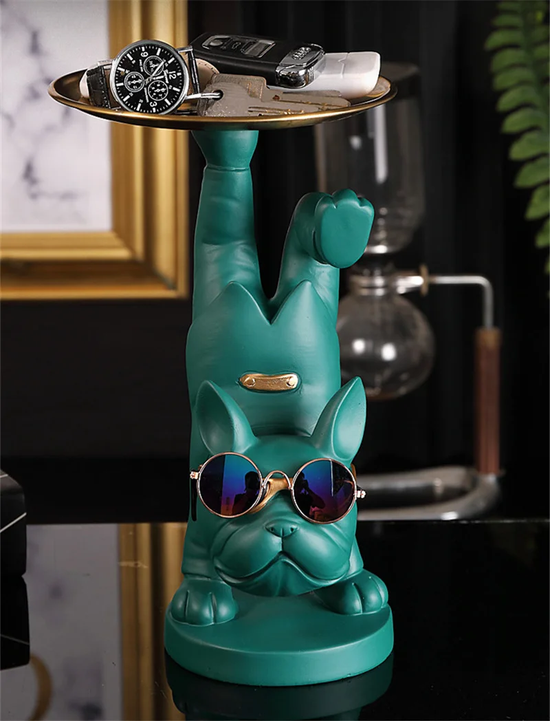 Handstand Dog Statue Decorative Storage Tray French Bulldog Home Decor Table Ornaments Animal Figurine for Room Desk Decoration