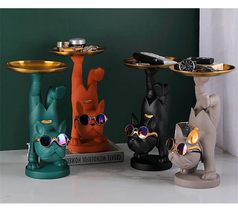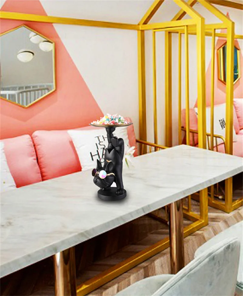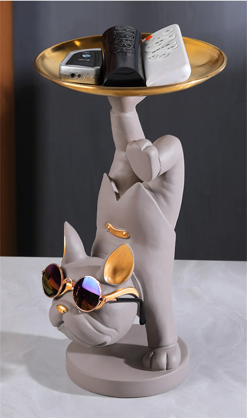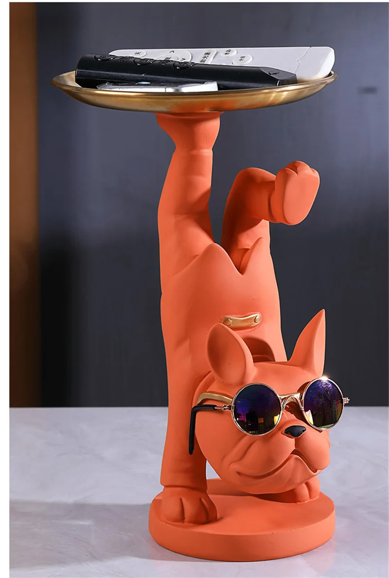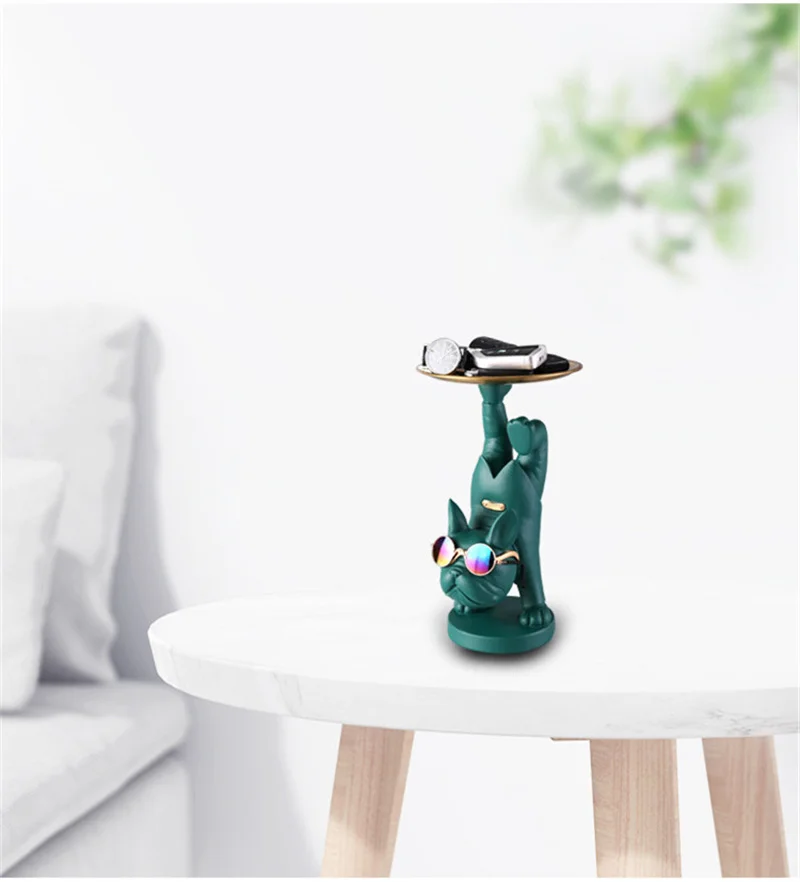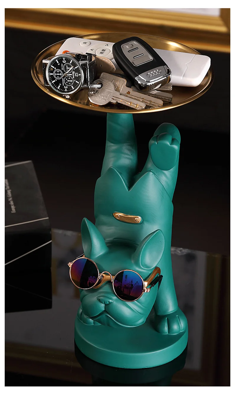 Handstand Dog Statue Decorative Storage Tray French Bulldog Home Decor Table Ornaments Animal Figurine for Room Desk Decoration