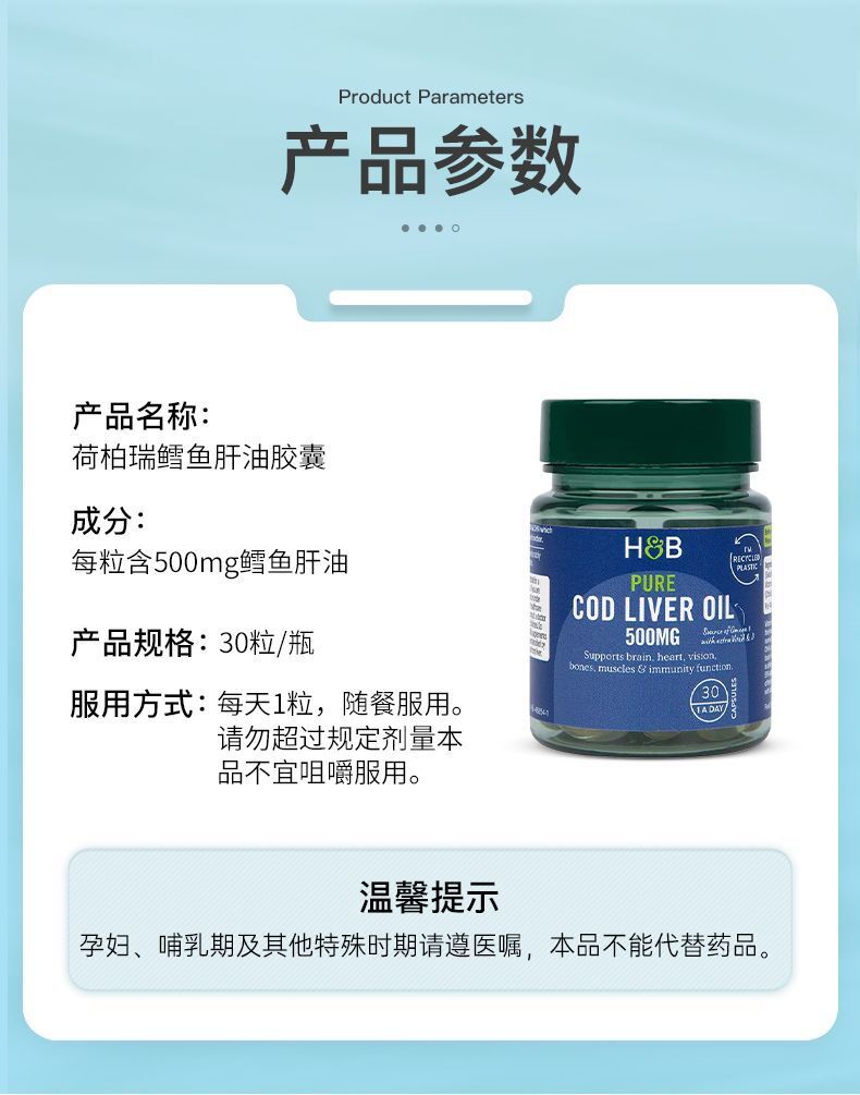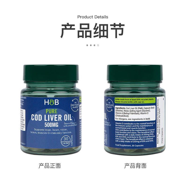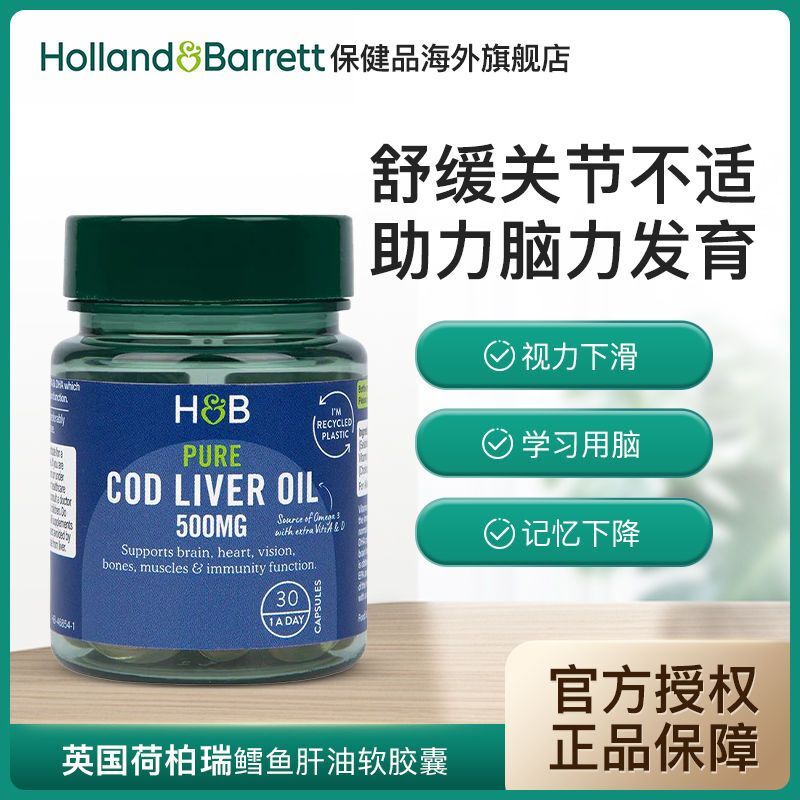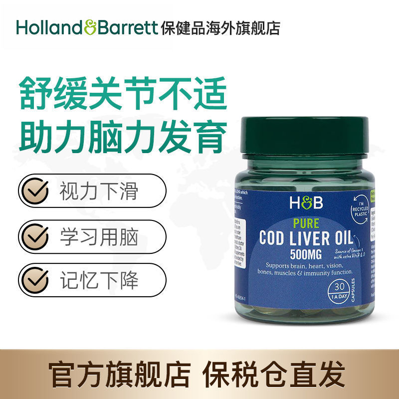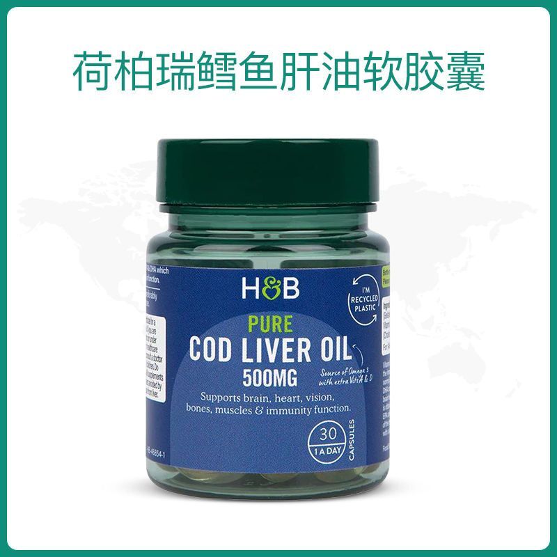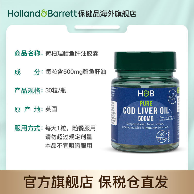 HB Holland&Barrett Cod Liver Oil DHA Capsules Fish Liver Oil 500mg*30 Capsules