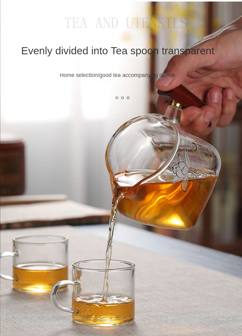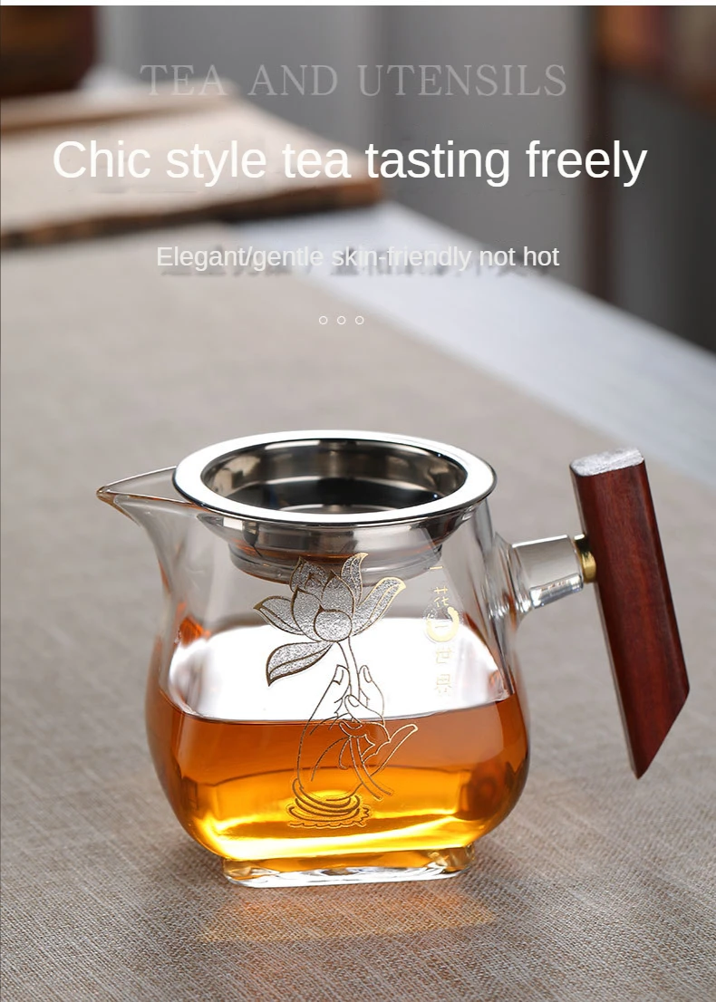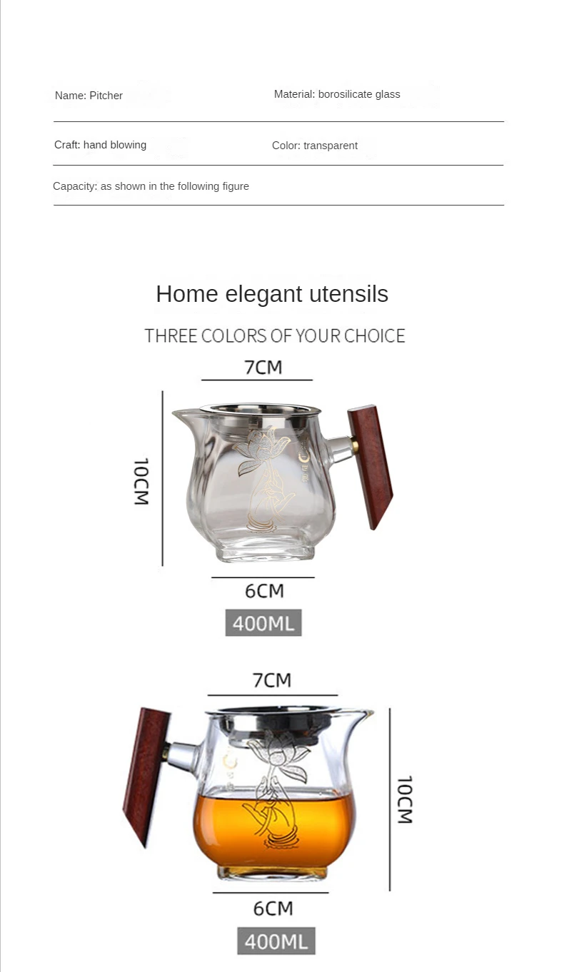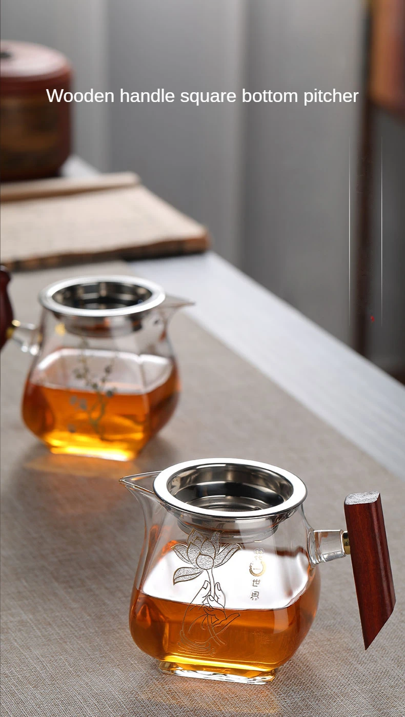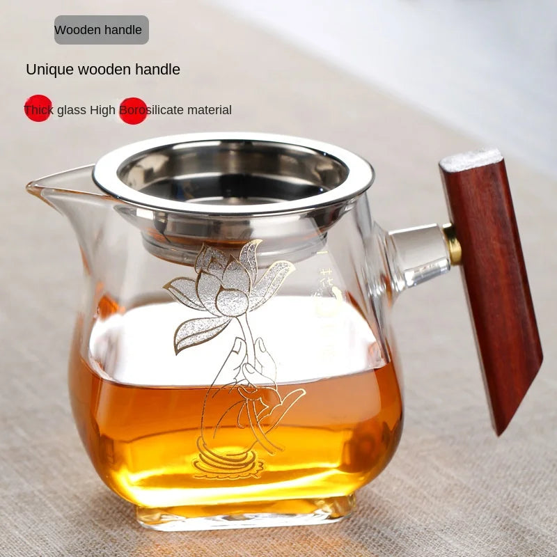 Heat-resistant Glass Gongdao Pot With Thick Wooden Handle Infuser Teapot for Tea in a Cup Tea Strainer Integrated Set Kettle Bar