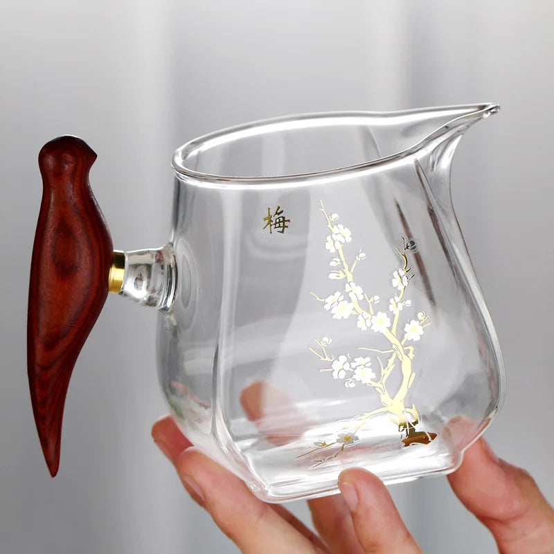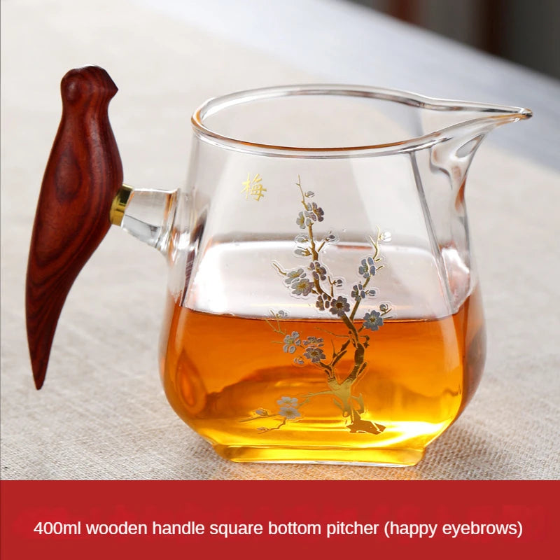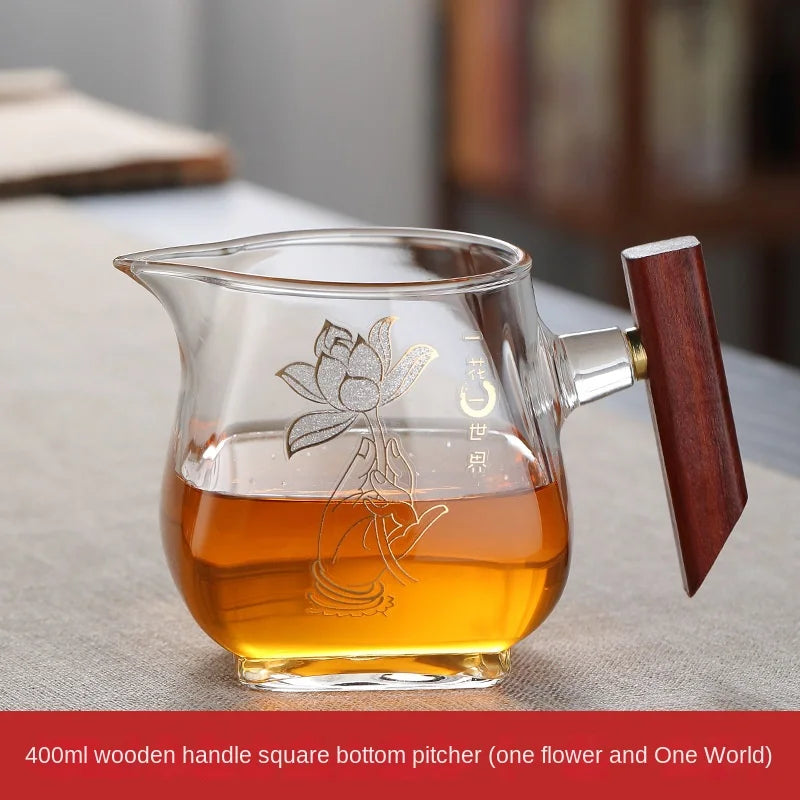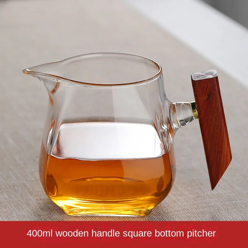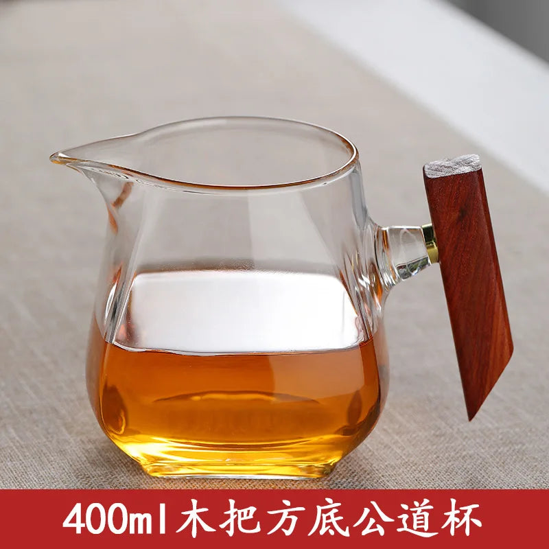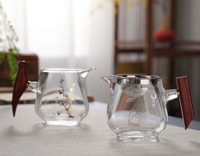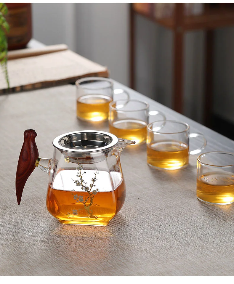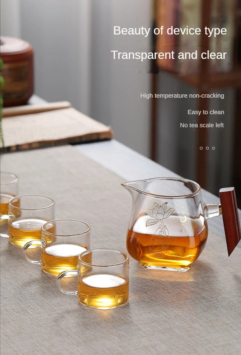 Heat-resistant Glass Gongdao Pot With Thick Wooden Handle Infuser Teapot for Tea in a Cup Tea Strainer Integrated Set Kettle Bar