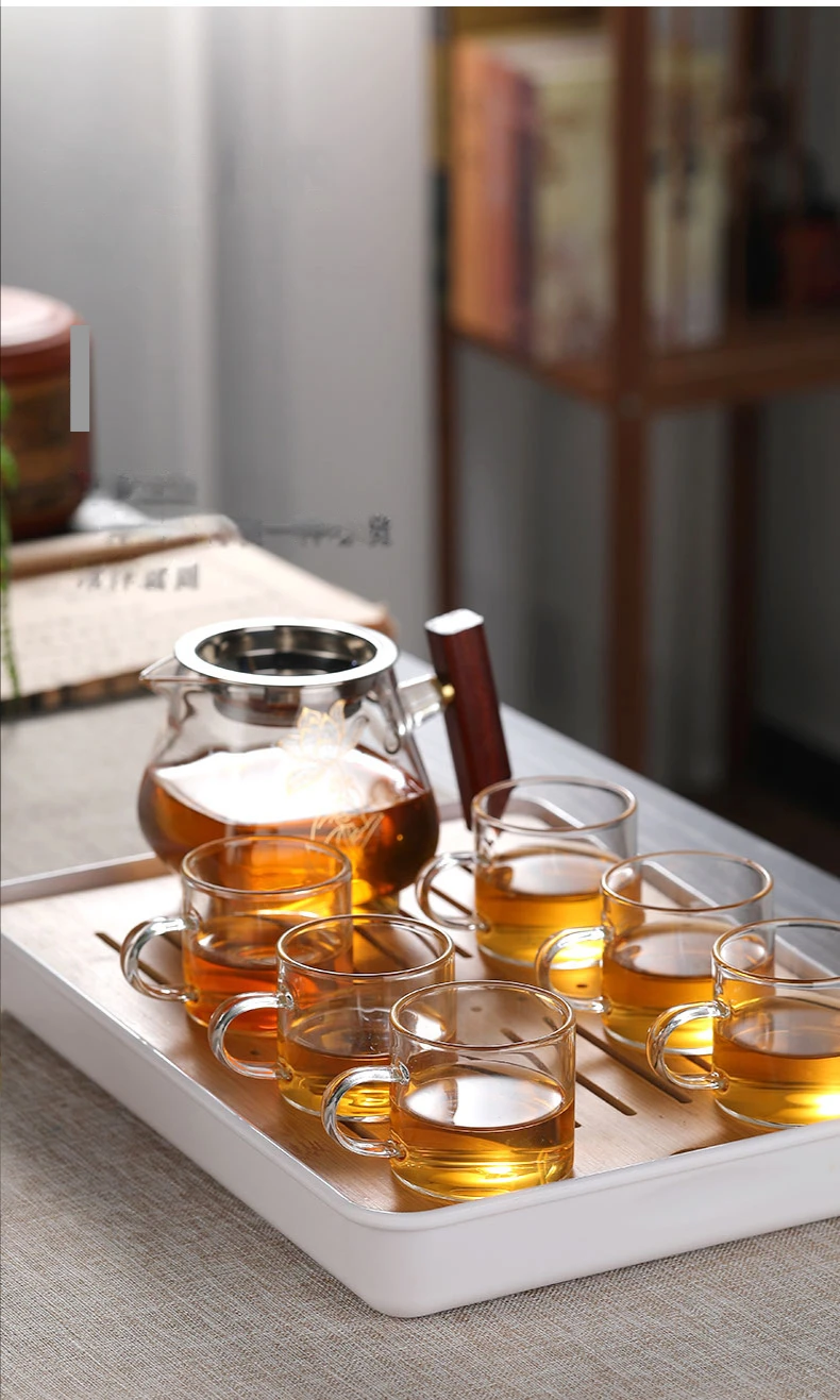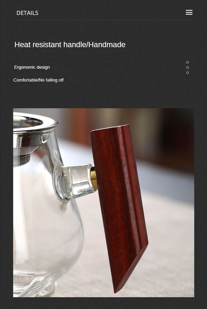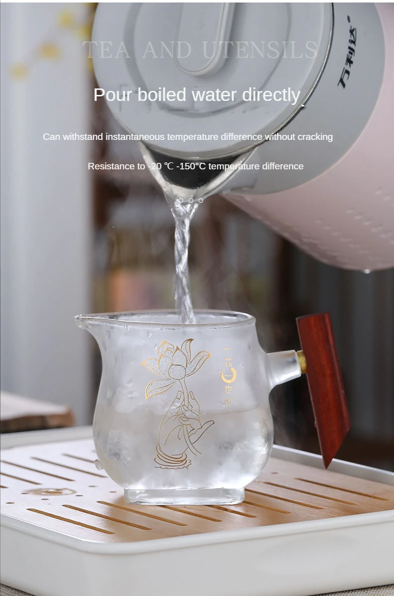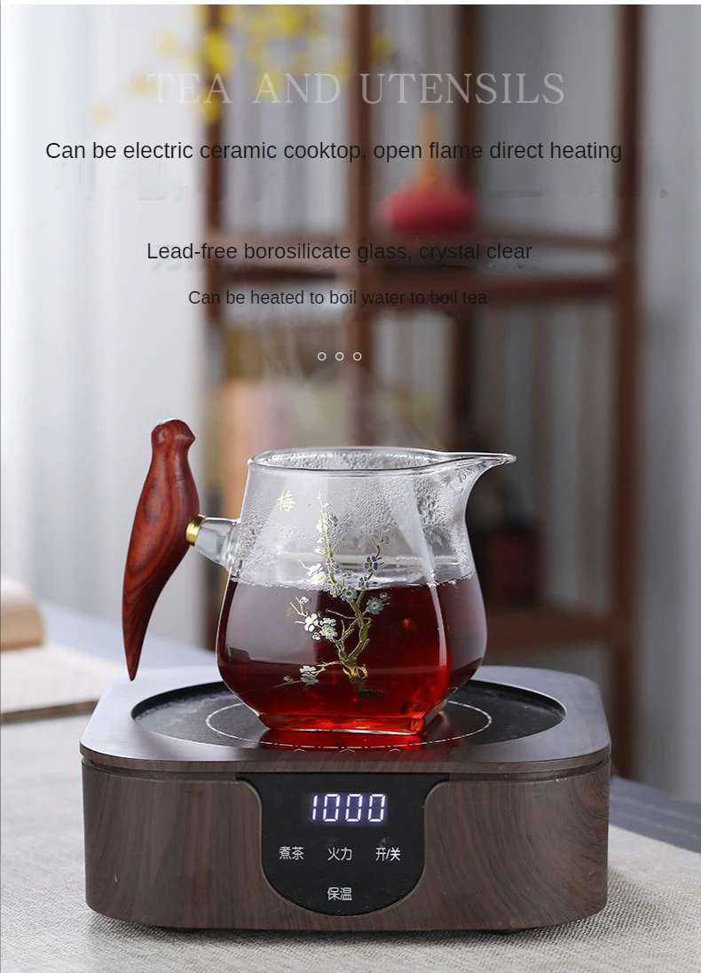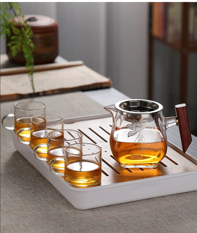 Heat-resistant Glass Gongdao Pot With Thick Wooden Handle Infuser Teapot for Tea in a Cup Tea Strainer Integrated Set Kettle Bar