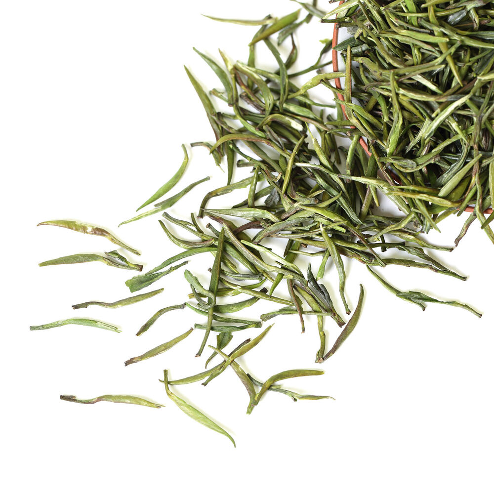 Zhuyeqing tea is grown in Southwestern China's Mount Emei, the grown environment are over 1500 meters above the sea level and covered by thick fog, and heavy mist for most of the year. The nourishing moisture and the soil contribute to the good quality of zhuyeqing tea. Zhuyeqing tea is with a smooth ‘sparrow tongue’ shape and tiny side leaves, glossy green in color. The Zhu Ye Qing tea display a good view in the glass cup, standing up and down in the cup.