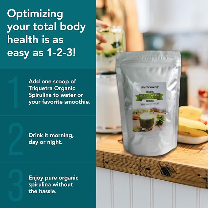 Convenient Usage : HelloYoung Barley Grass Powder 100% Pure & Organic is as simple as putting it in a cup and brewing it with boiling water. Enjoy the convenience of a quick and easy preparation method. Portability : With its compact and lightweight size, HelloYoung Pure Organic Barley is highly portable, making it perfect for on-the-go individuals. Take it with you wherever you travel and maintain your healthy routine. Ideal for Specific Individuals : Organic Barley Grass Powder is specifically designed for people who often stay up late, work overtime, or have poor lifestyle habits. It provides a natural and wholesome option to support their well-being. Contents : Barley Grass Powder Organic Each bag contains 250g of HelloYoung Barley Grass Powder. Quality Customer Service: We value your satisfaction. If you have any questions or concerns regarding the product, please don't hesitate to contact us. Our dedicated customer service team is available 24 hours a day to provide you with a prompt and satisfactory response.