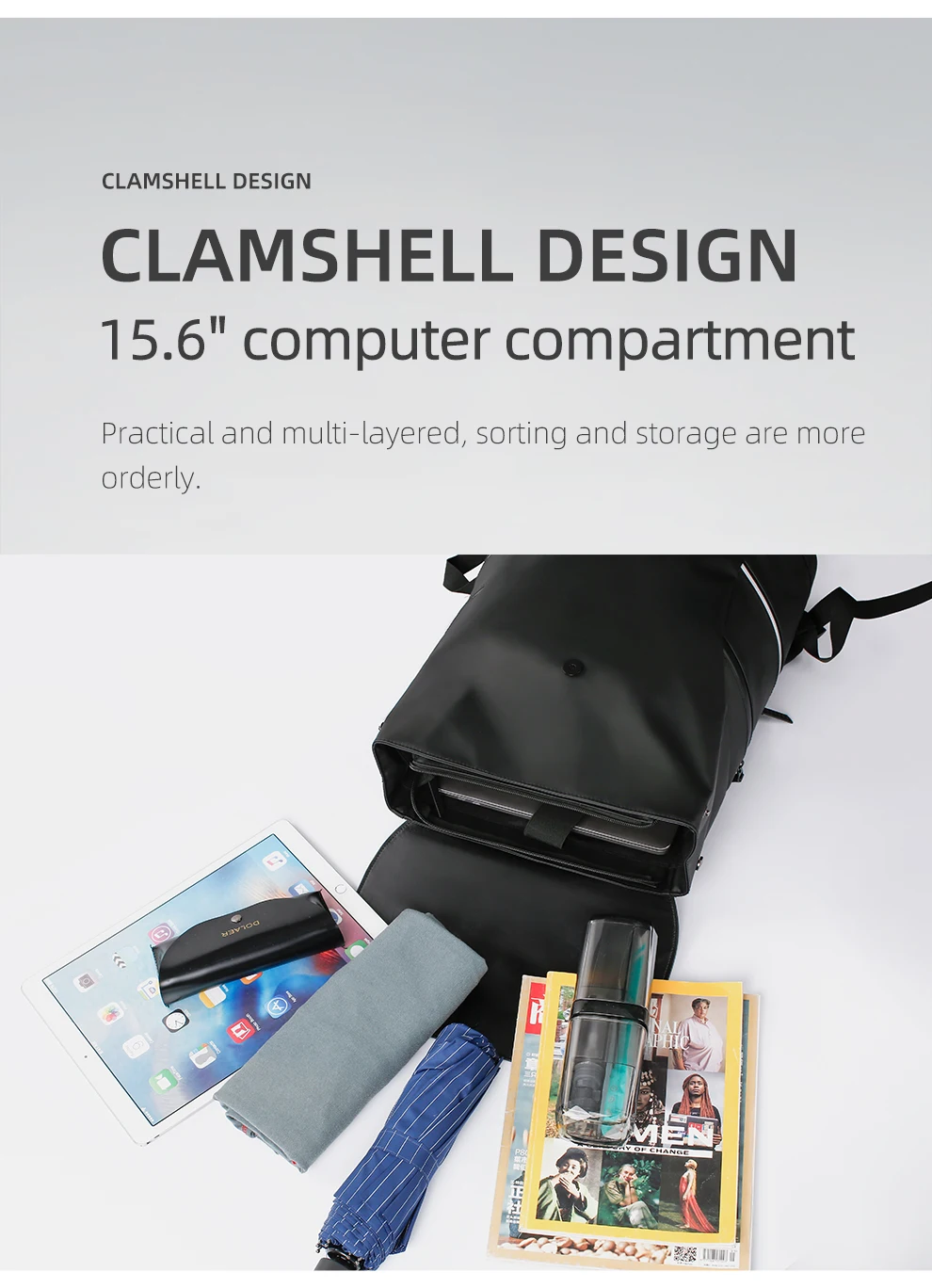 This is a new design laptop travel Bag, you can walk at night by a convient reflective strip design,it has a spcial clamshell design,which can be used for many occasion.