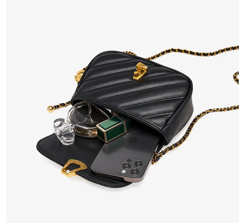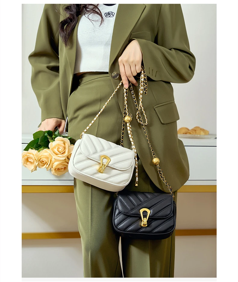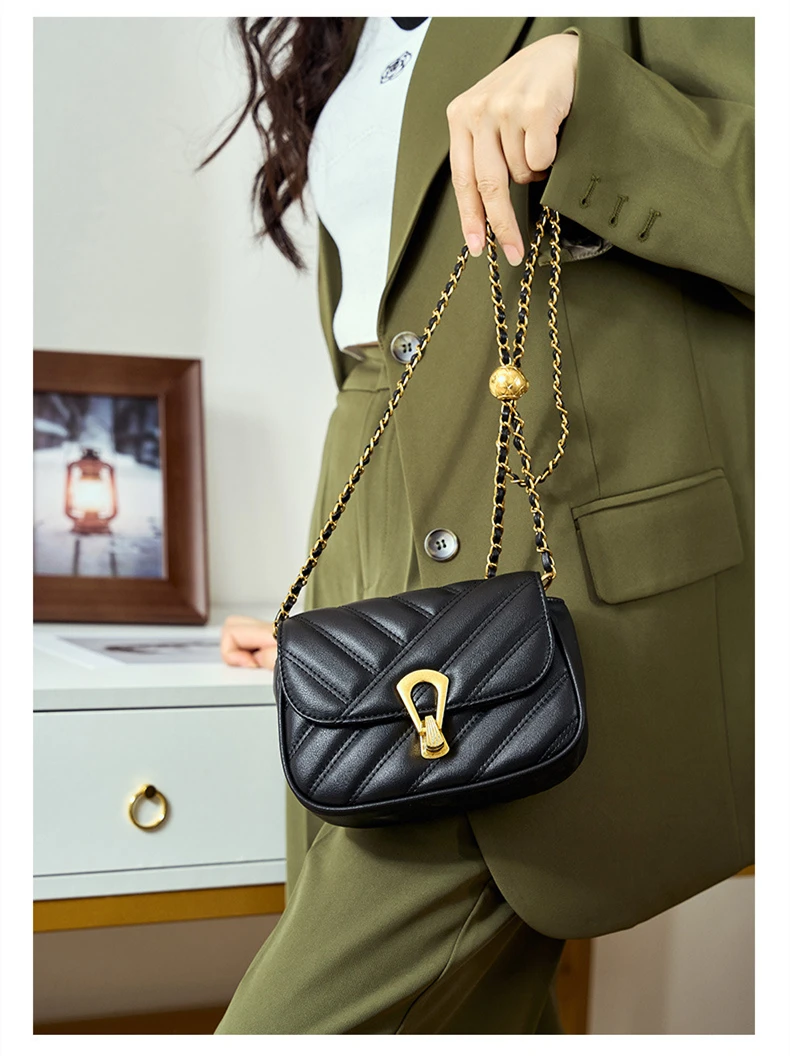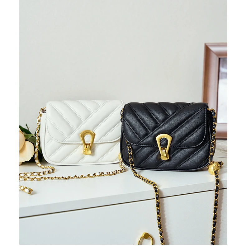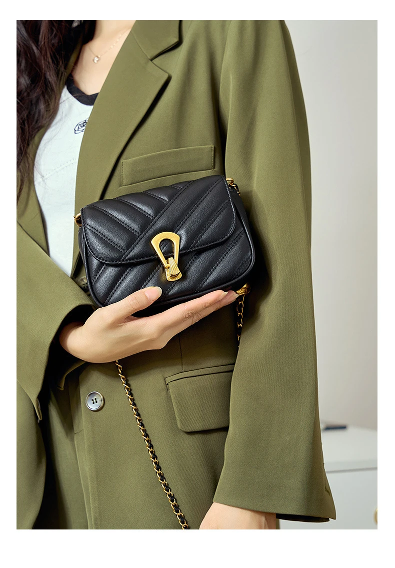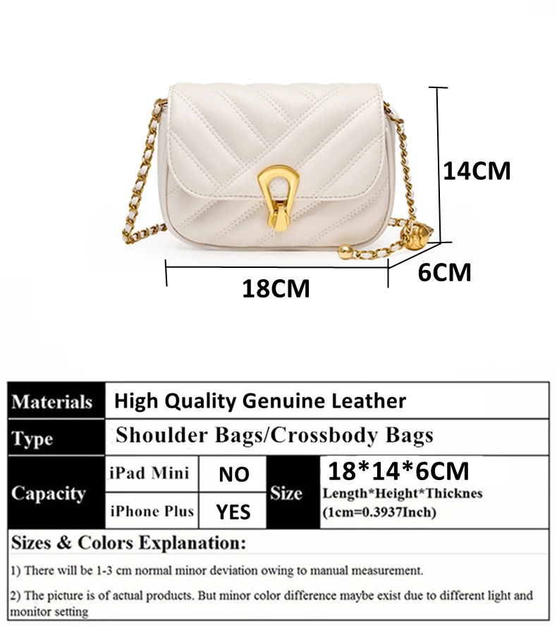Hifashion Cowhide Genuine Leather Quilted Chain Small Shoulder Crossbody Bags For Women 2024 Trend Designer Flap Ladies Handbags