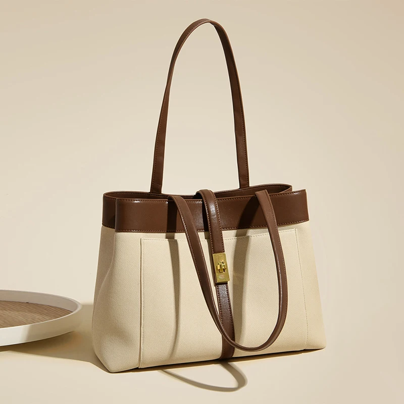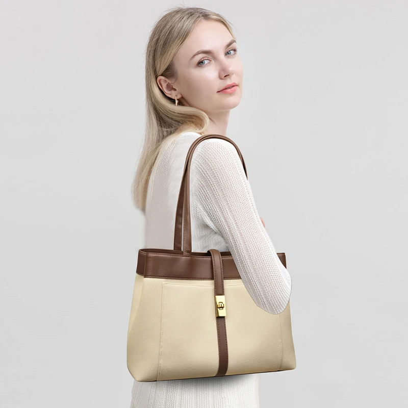 High-end Large-capacity Tote Bag Summer New Versatile Handbag Commuting To Work Contrast Color Shoulder Bag