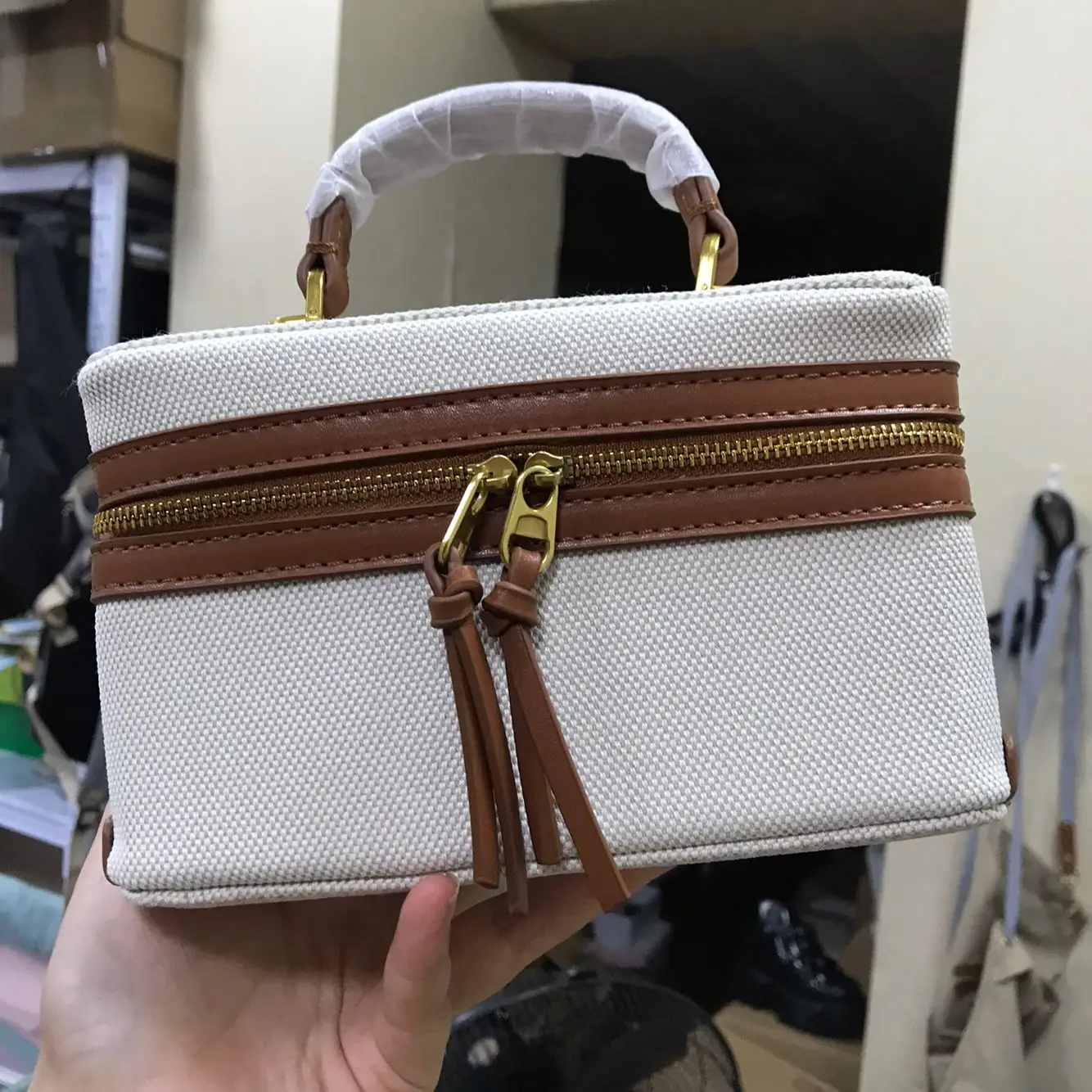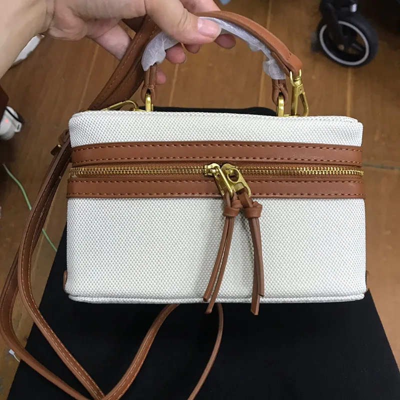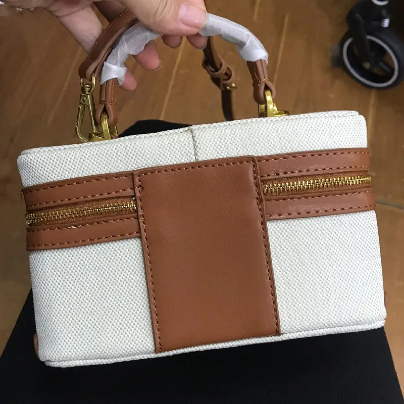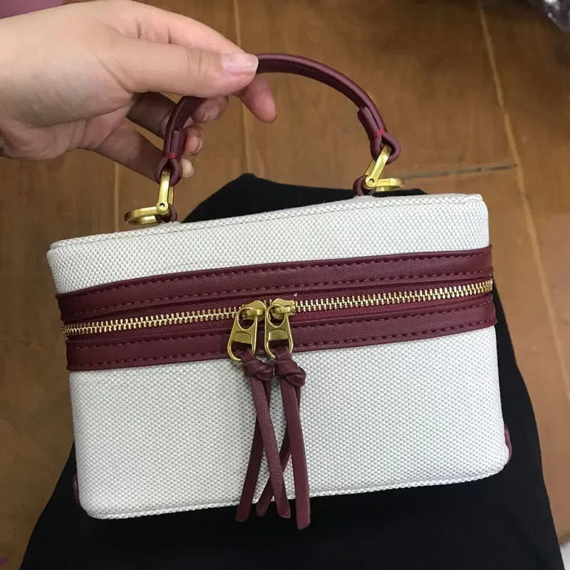 High quality canvas women's box shoulder bag on sale 2024 new zipper patchwork sewing thread makeup bag fashion crossbody bag