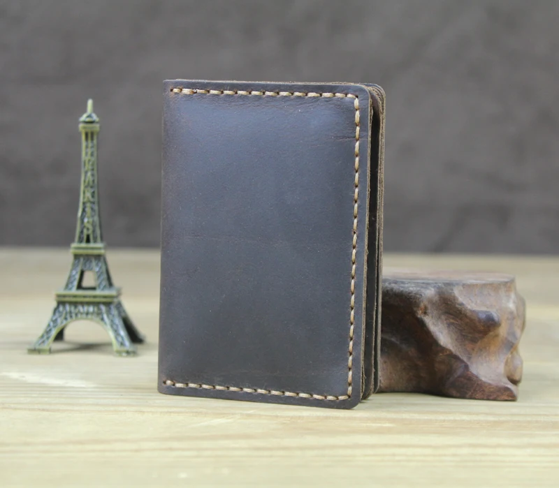 100% Handmade Credit/ID Card Case Genuine leather High Quality Men Retro Small Wallet Bus/Name Card Holder Leather women card holder