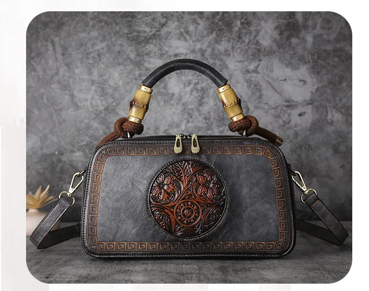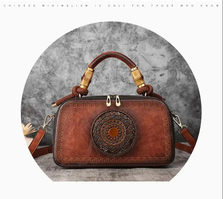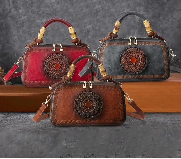 High Quality Handmade Shoulder Bags For Women Designer Bag Retro Totem Embossing Women's Bag Leather Luxury Handbag 2024