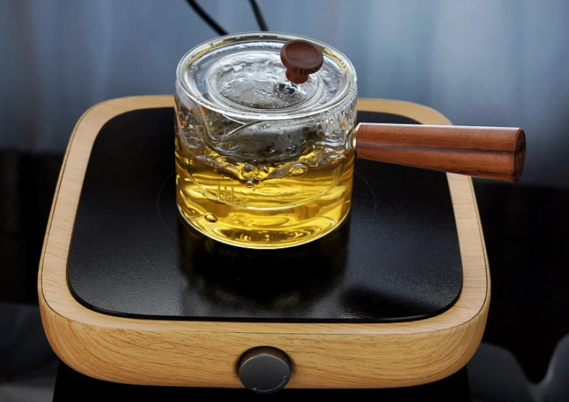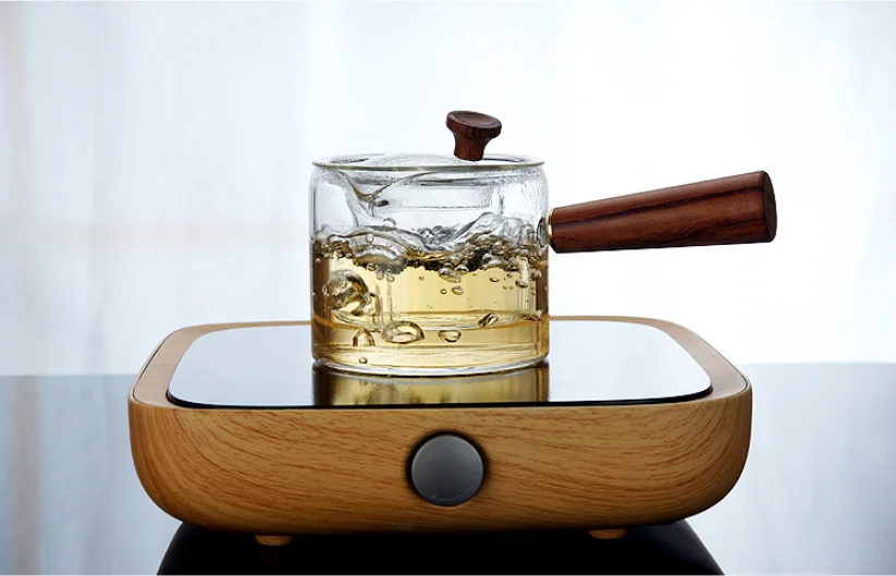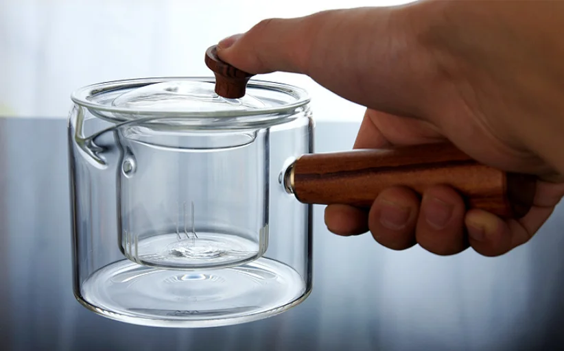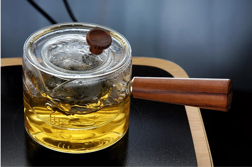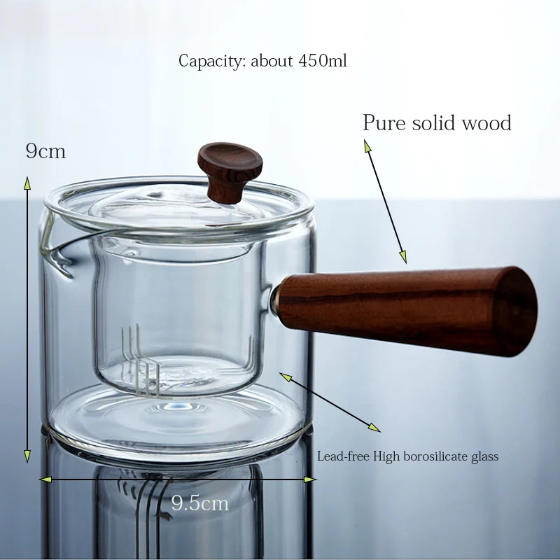 Lead-free heat-resistant glass, pure solid wood grip, glass built-in tea