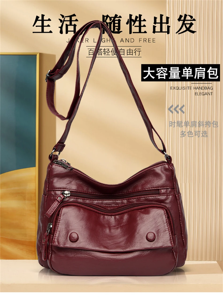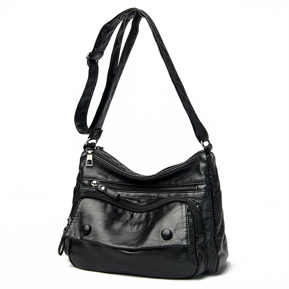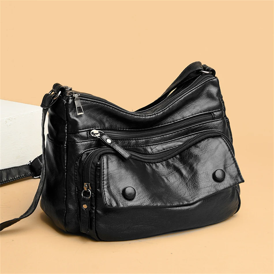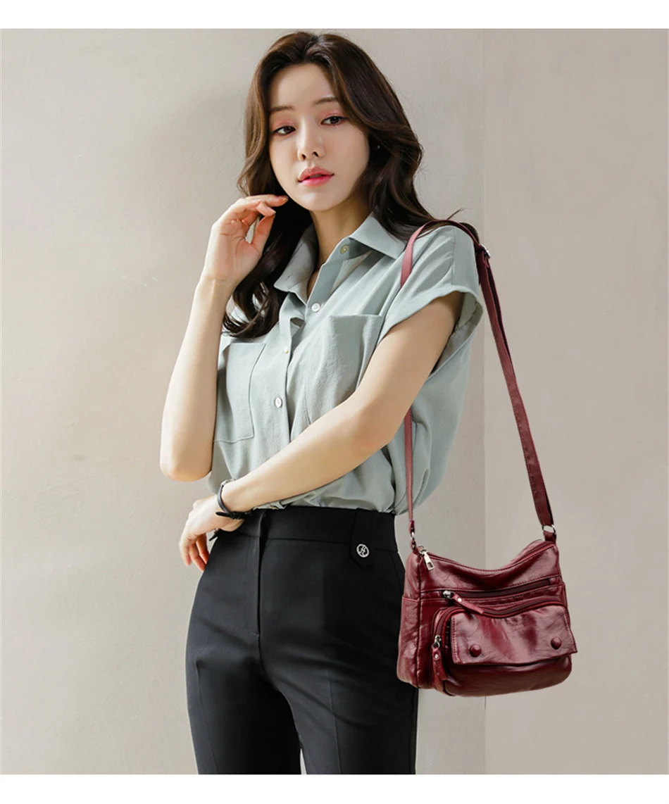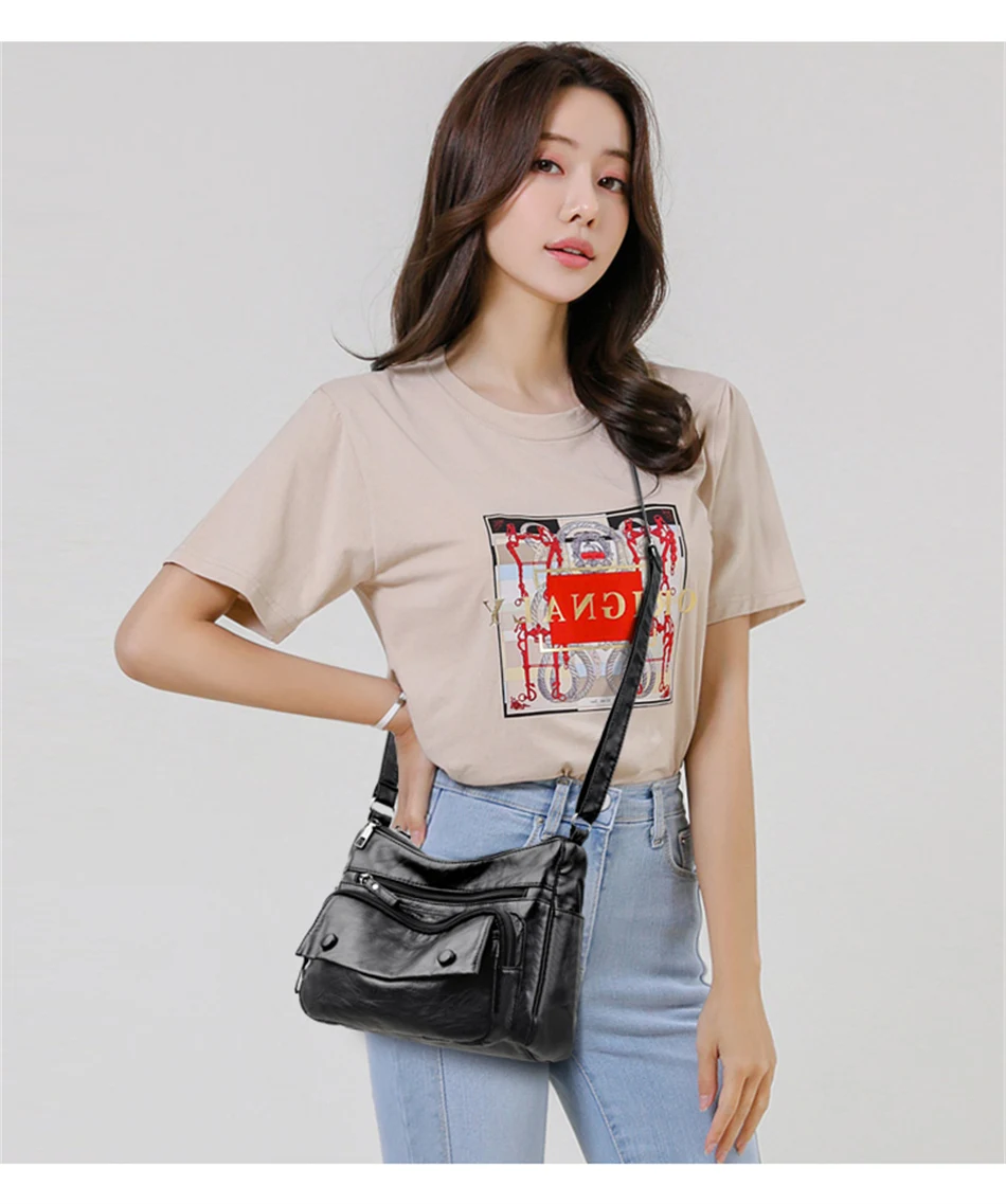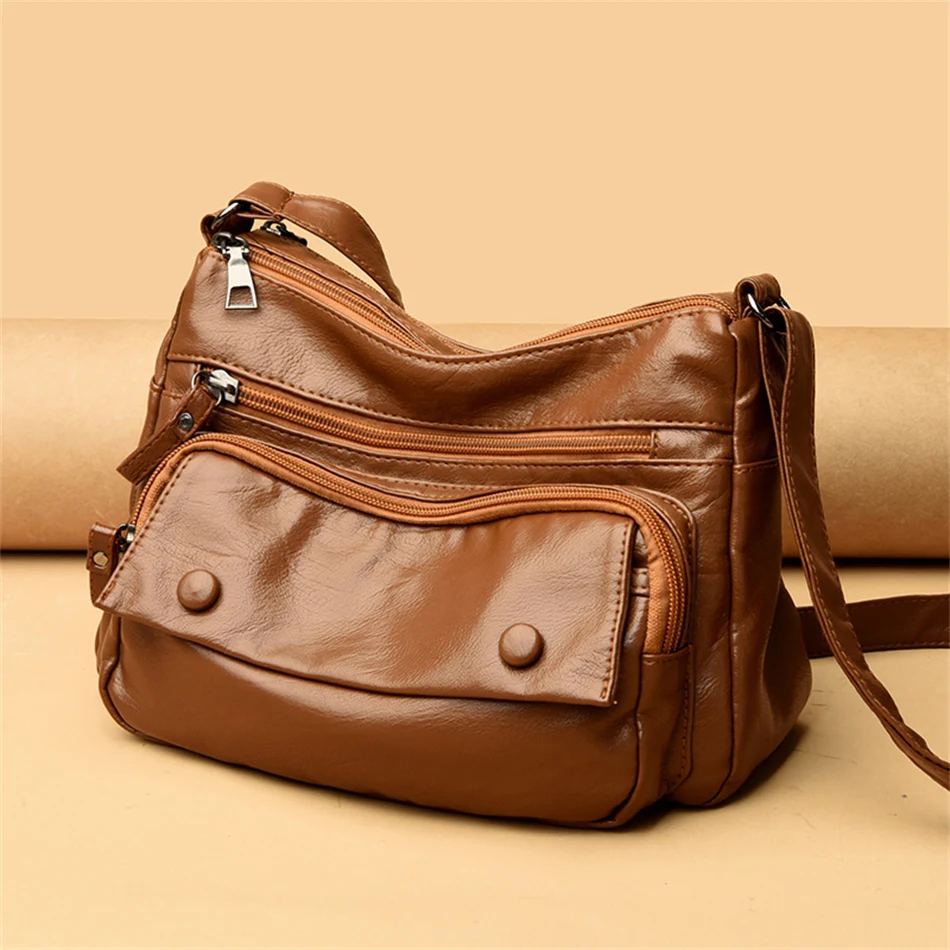High Quality Soft PU Leather Crossbody Bag Vintage Many Pockets Messenger Bag for Women 2022 Casual Shoulder Handbags and Purses