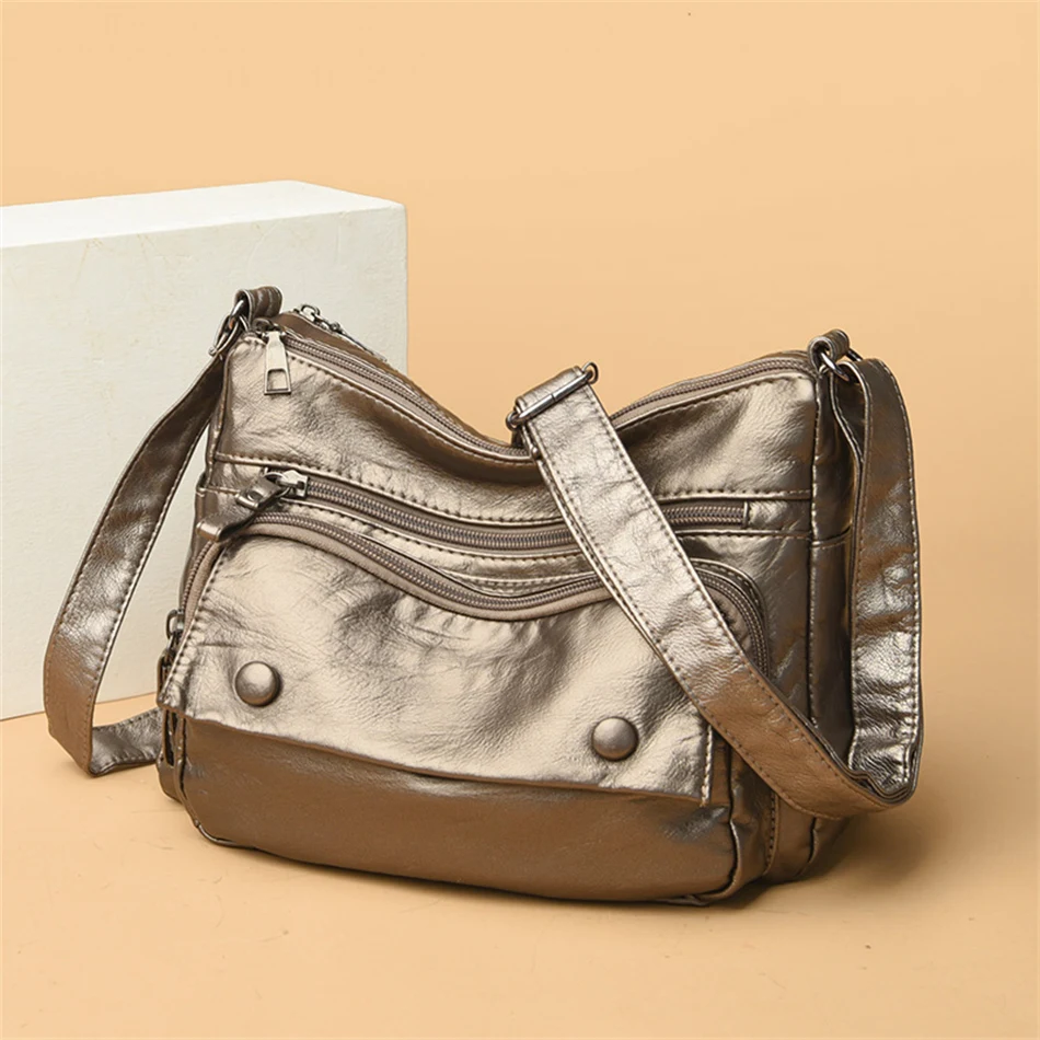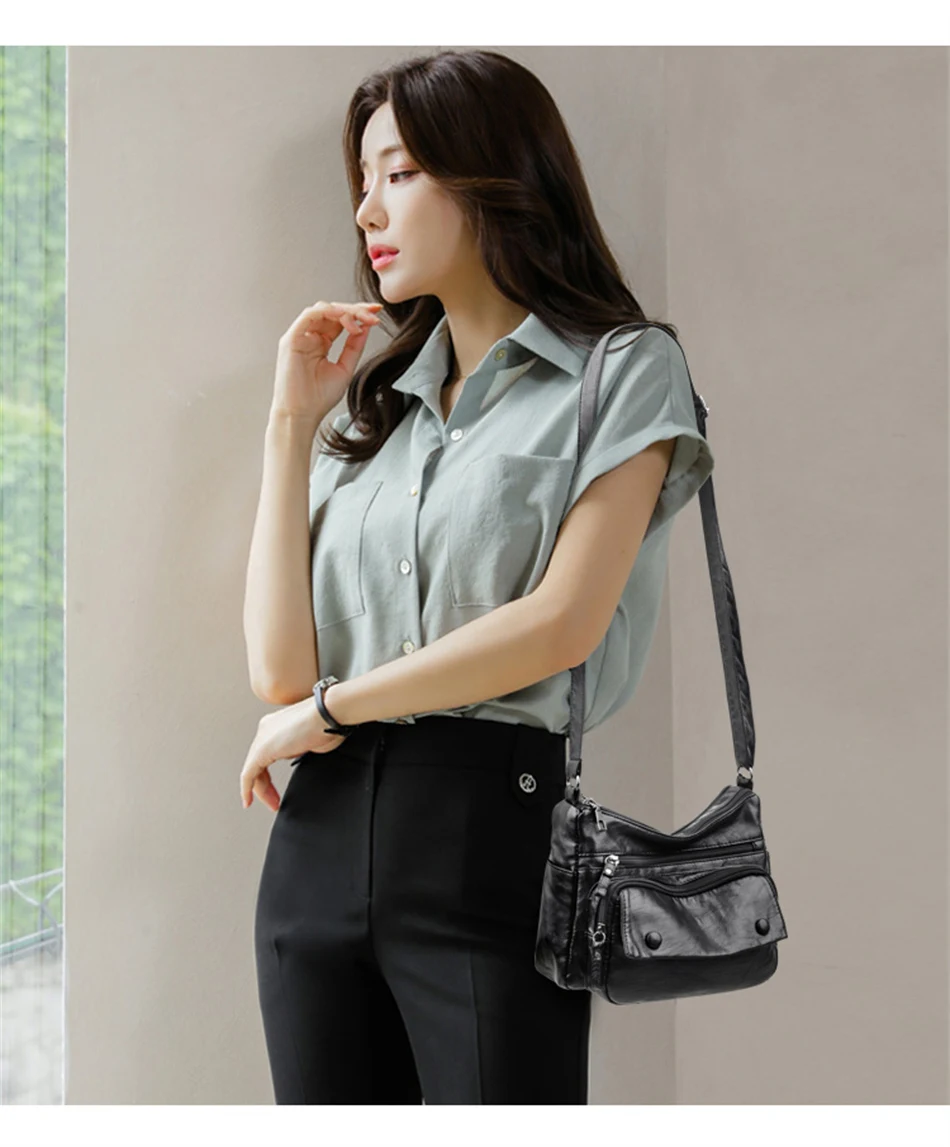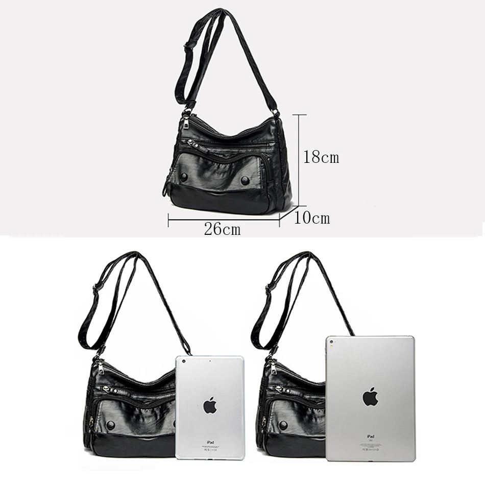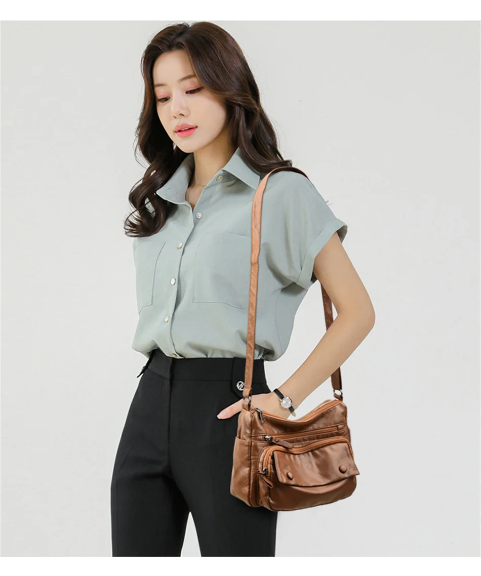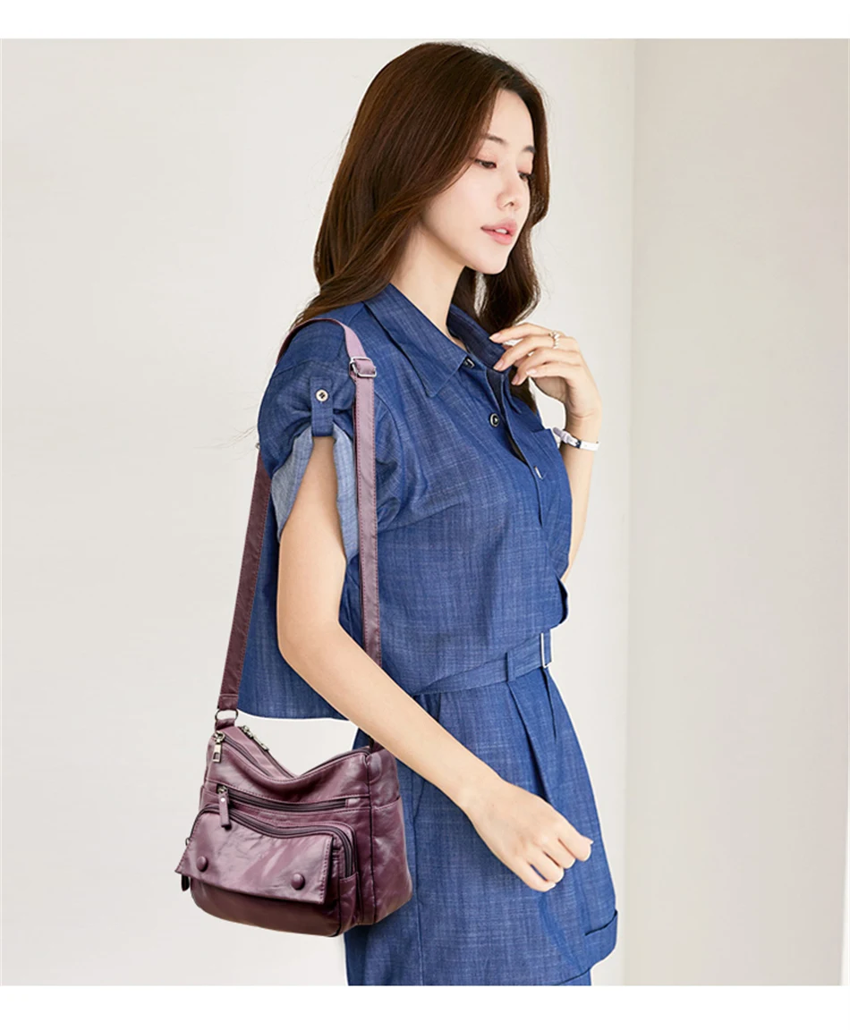 High Quality Soft PU Leather Crossbody Bag Vintage Many Pockets Messenger Bag for Women 2022 Casual Shoulder Handbags and Purses