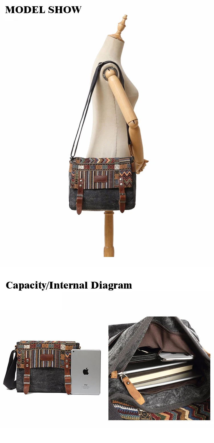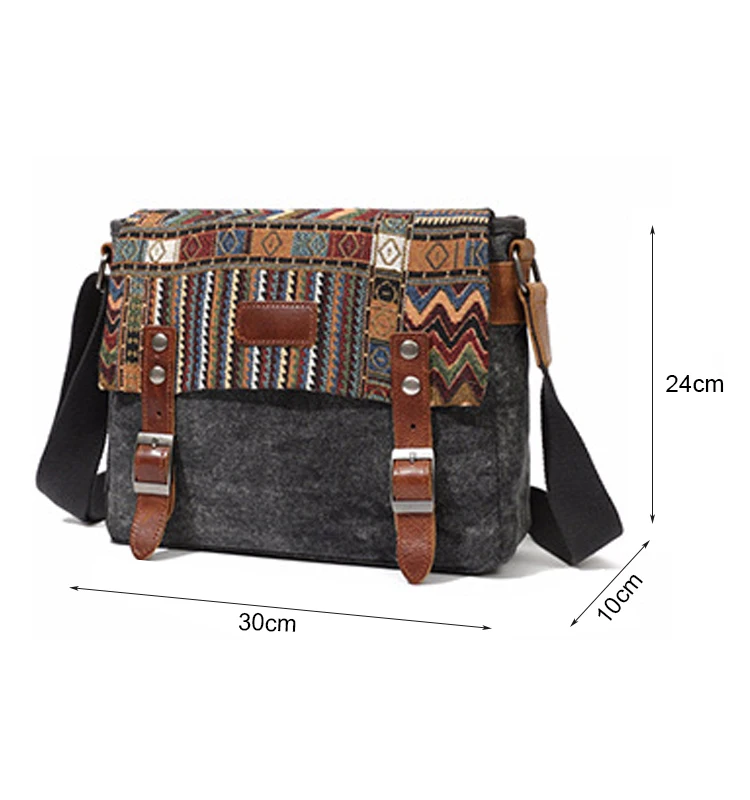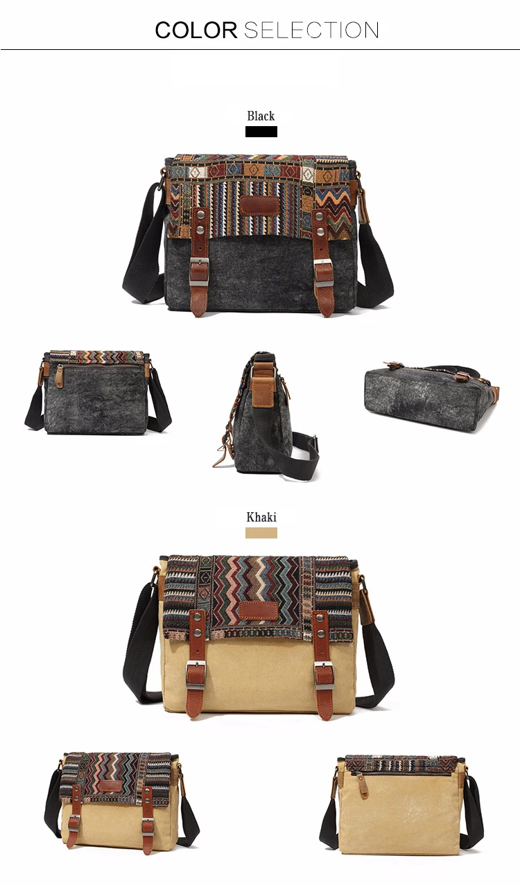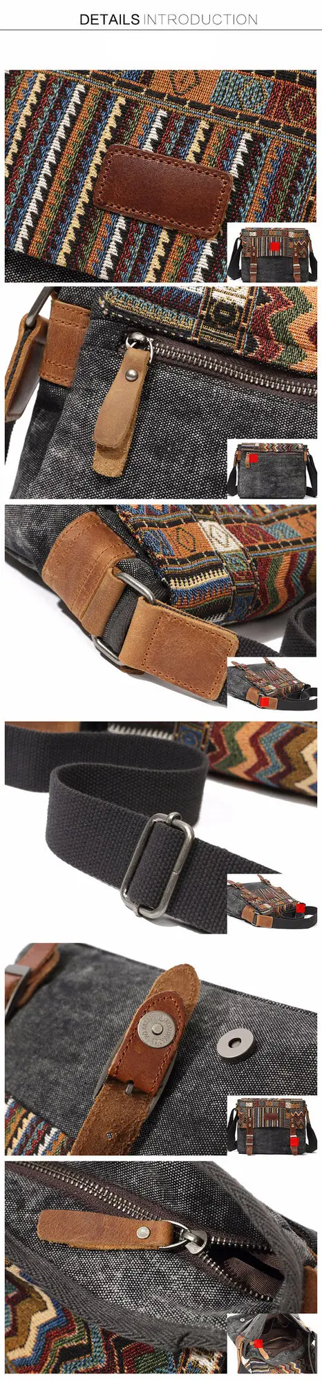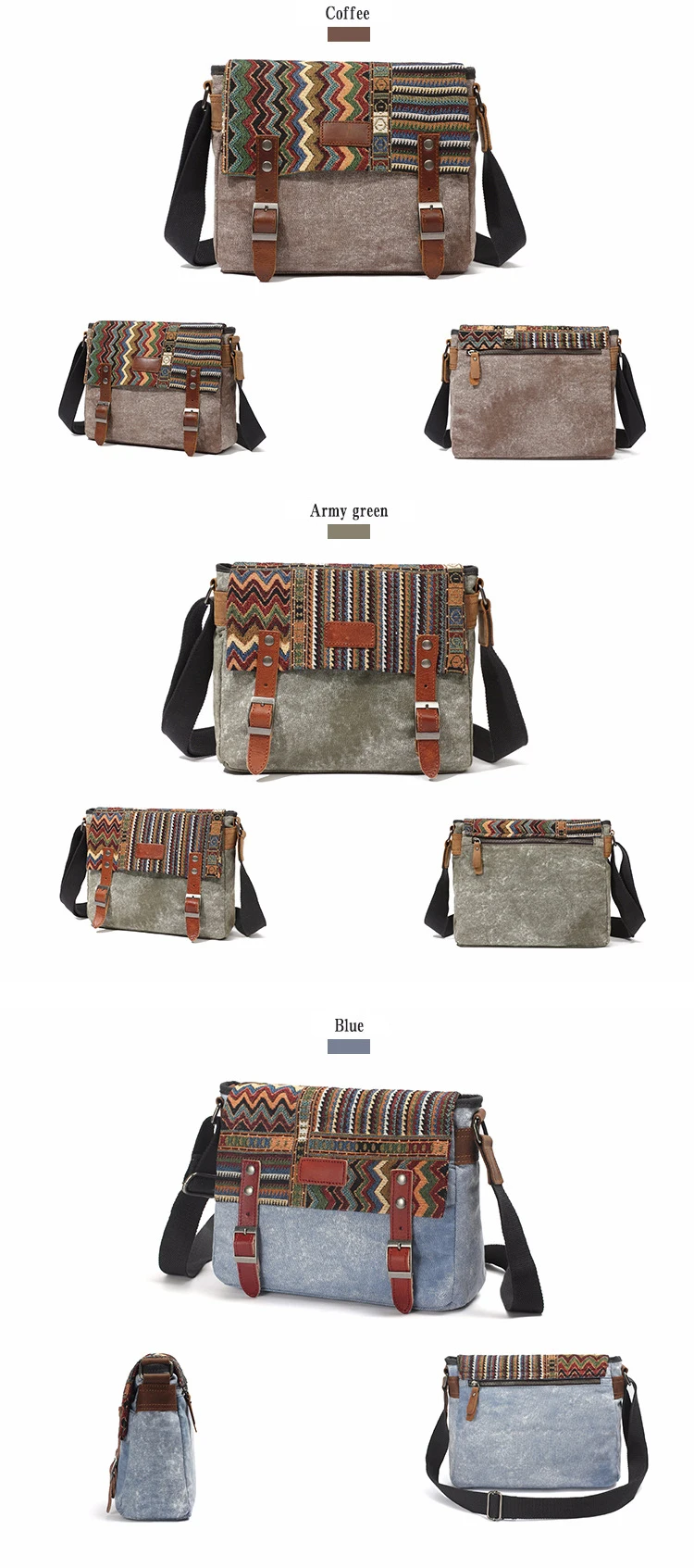 High Quality Waxed Canvas Shoulder Bag National Style Crossbody Bag Young Men Patchwork Color Flap Sling Bag 2022