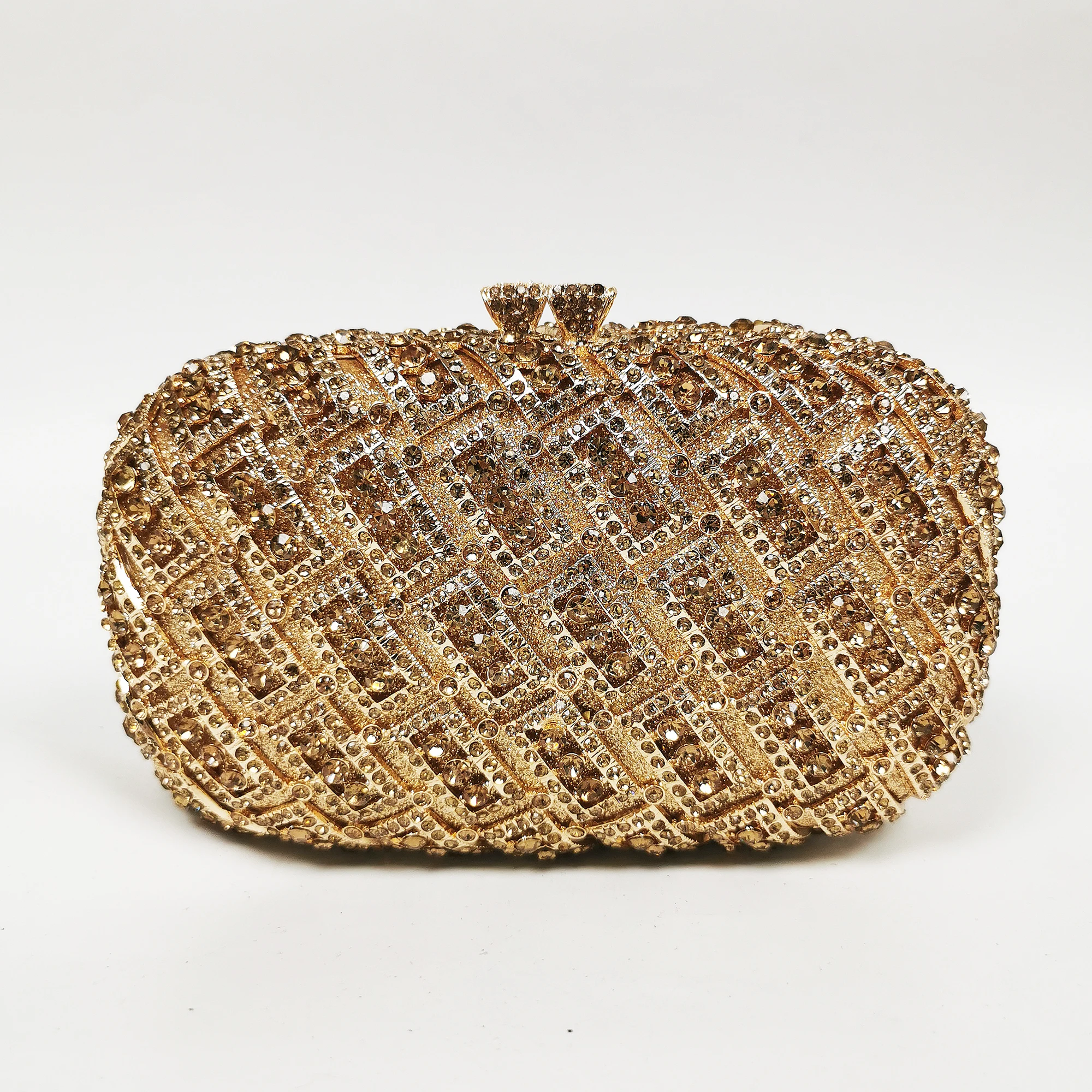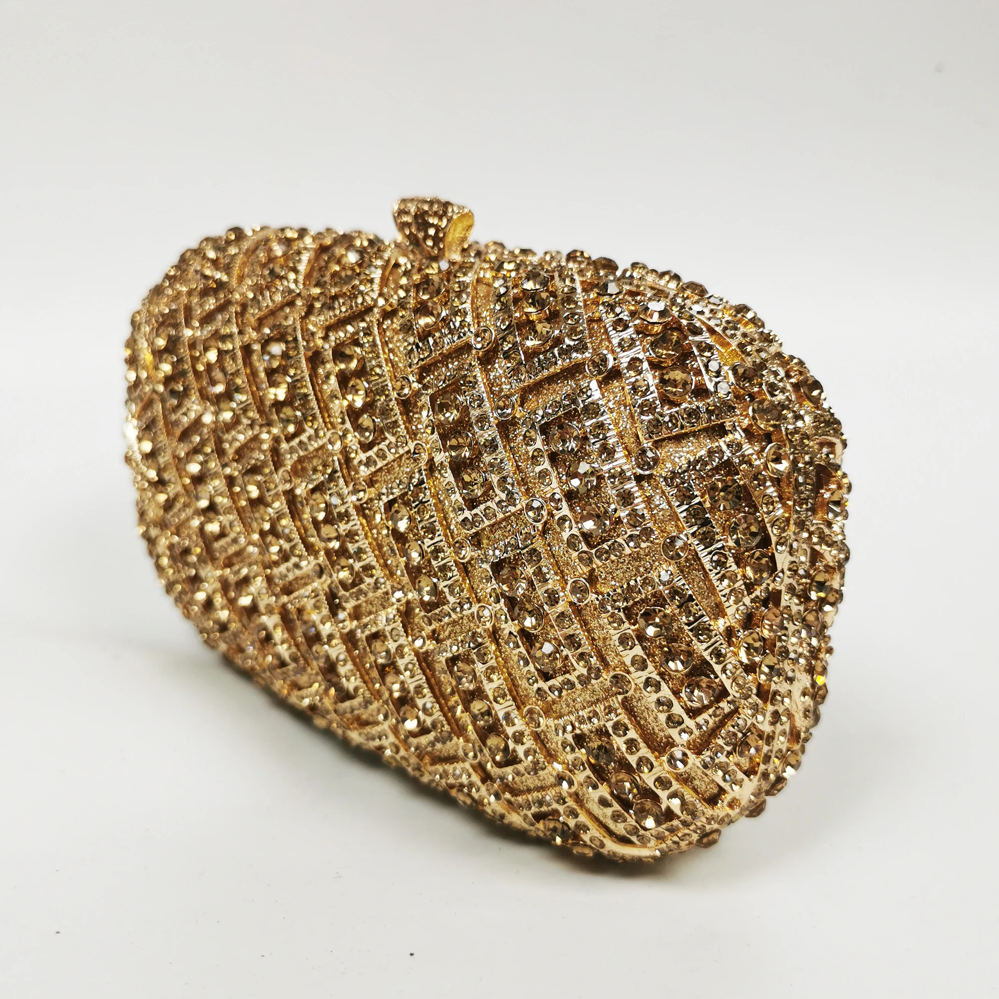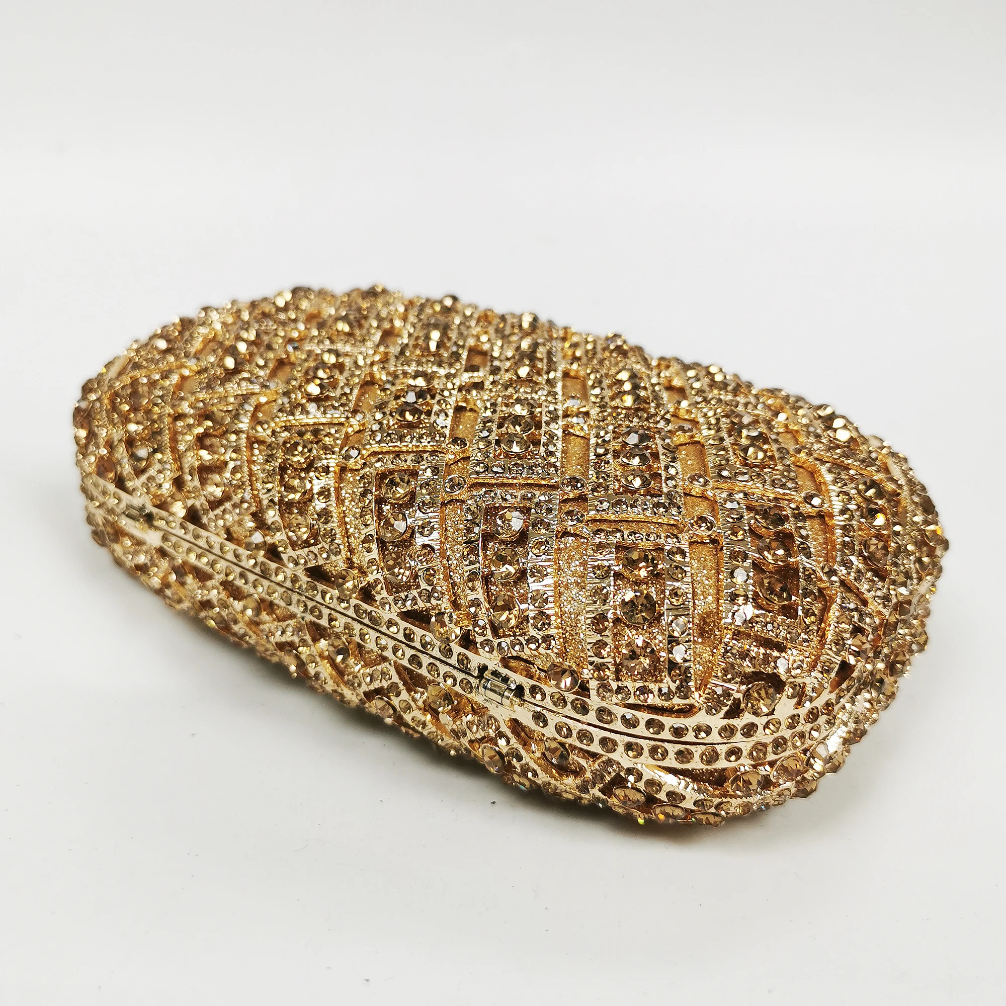 Hollow Out Gold Banquet Gala Toted Metal Clutches Woman Diamond Evening Purse Crystal Bag Ladies Birthday Dinner Party Handbag