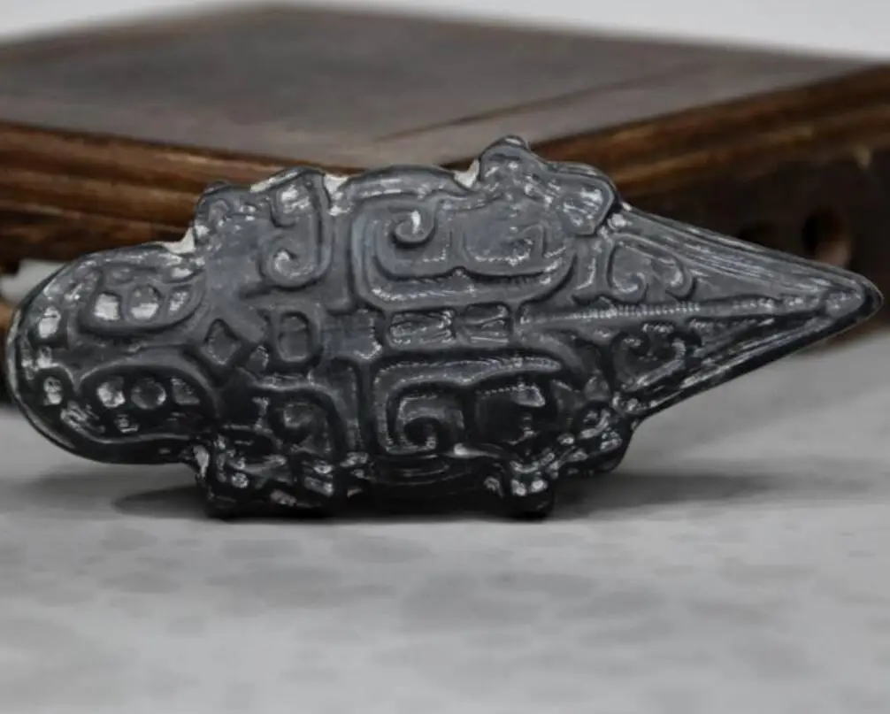 Hongshan culture archaize black iron meteorite sculpture crocodile statue