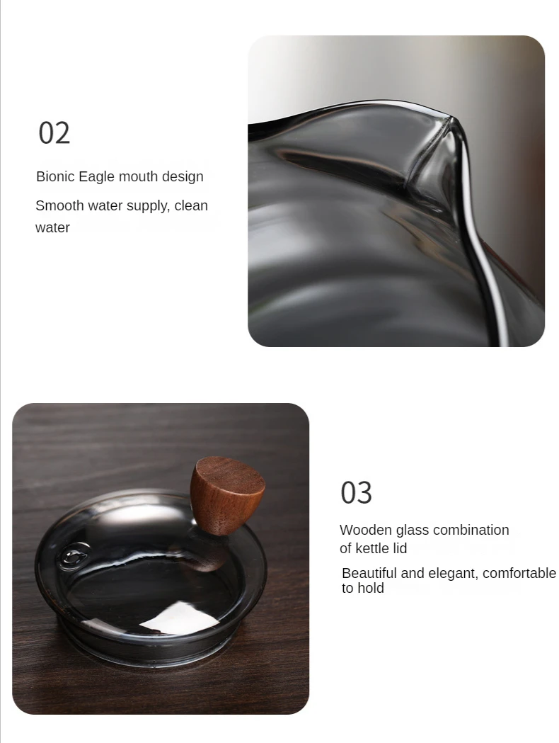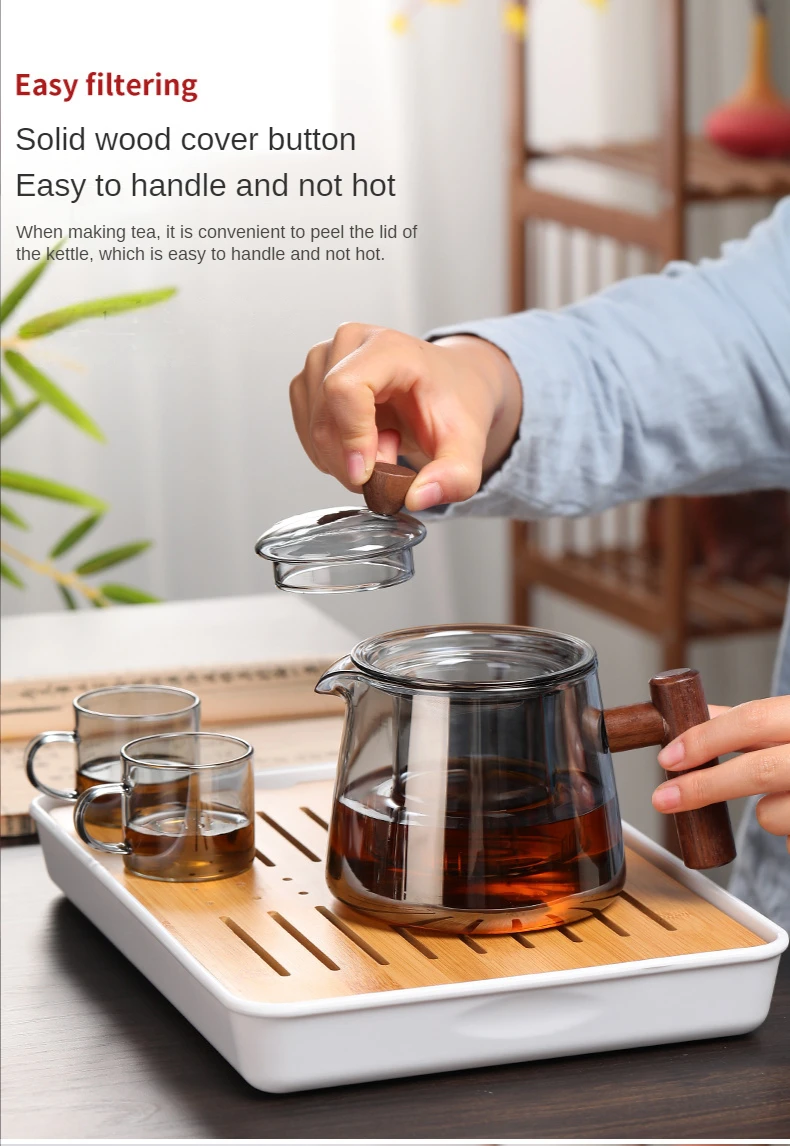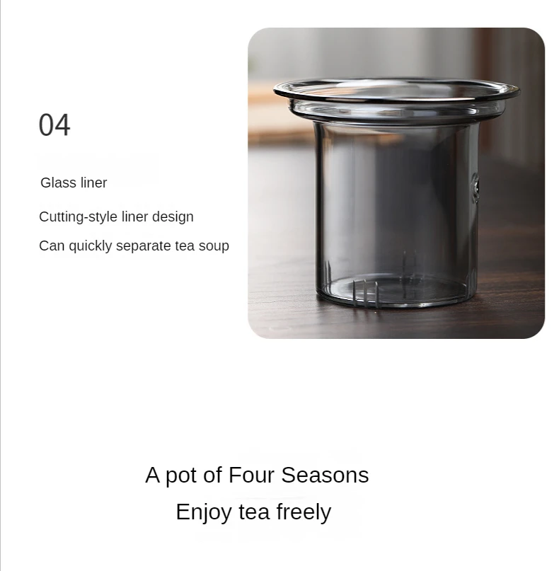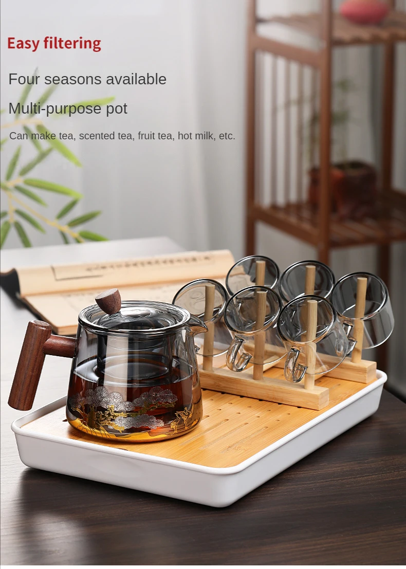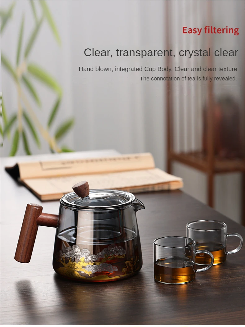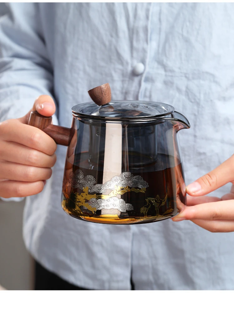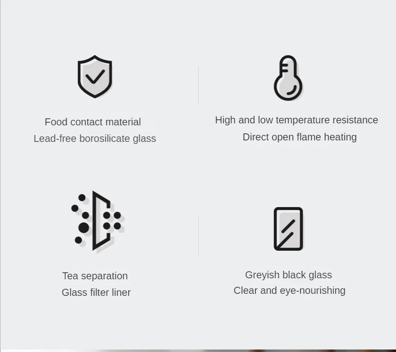 Features: Food grade contact material, lead-free high peng silicon glass, resistant to temperature difference between high and low, can be directly heated by open flame, tea separation, glass tank, easy to clean and disassemble