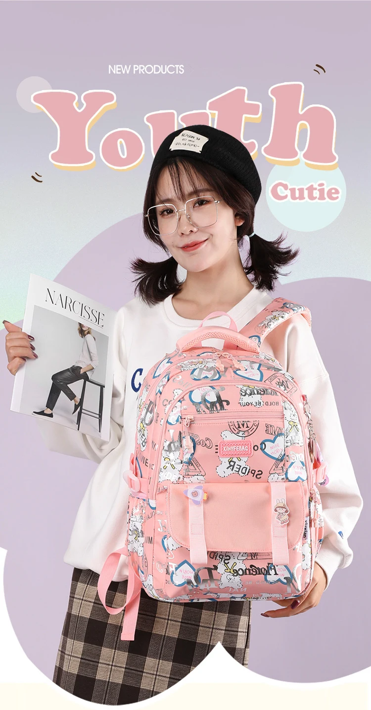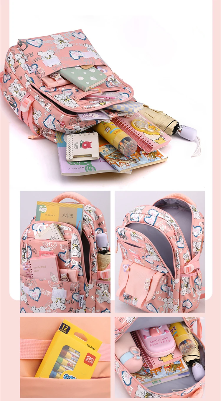 Hot Kids Backpacks School bags for girls Large Capacity Nylon Student School Child Children Cartoon Grades 1-6 Female Backpack