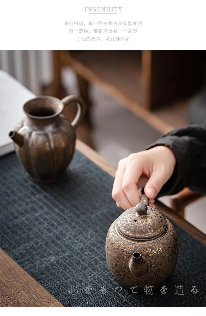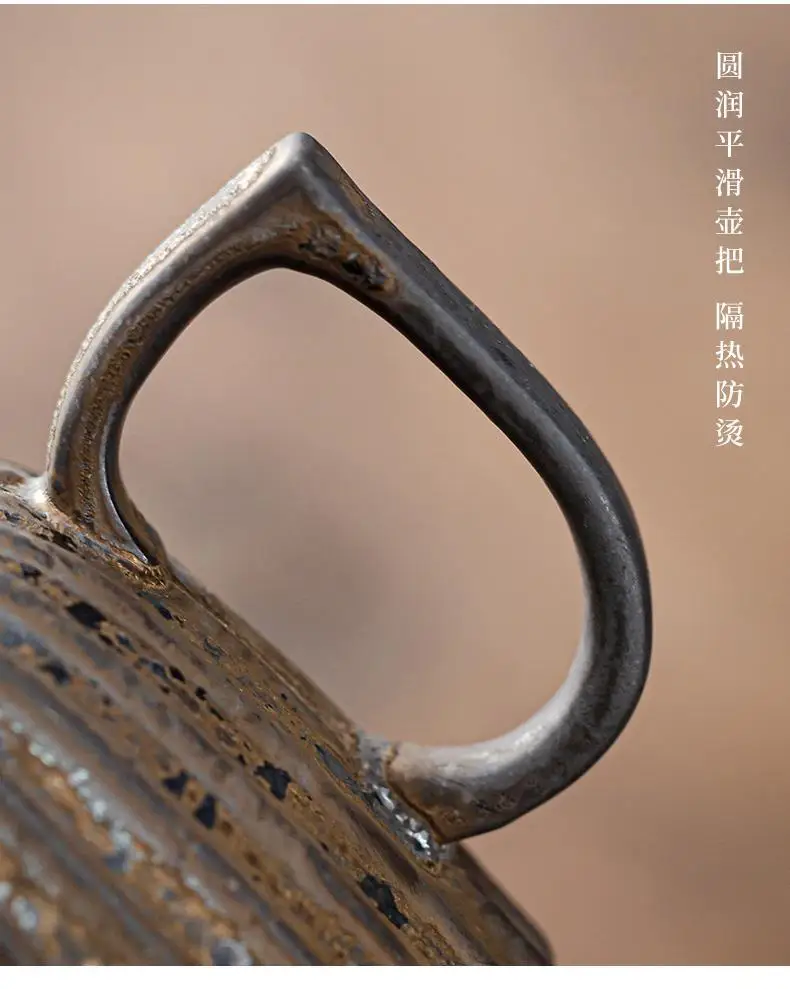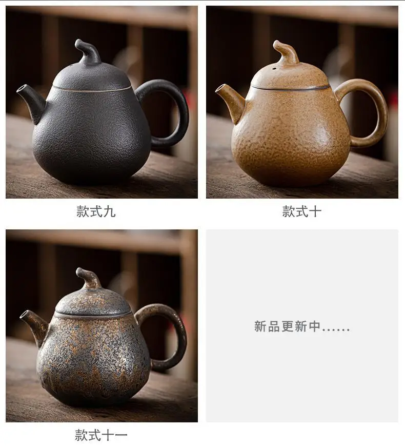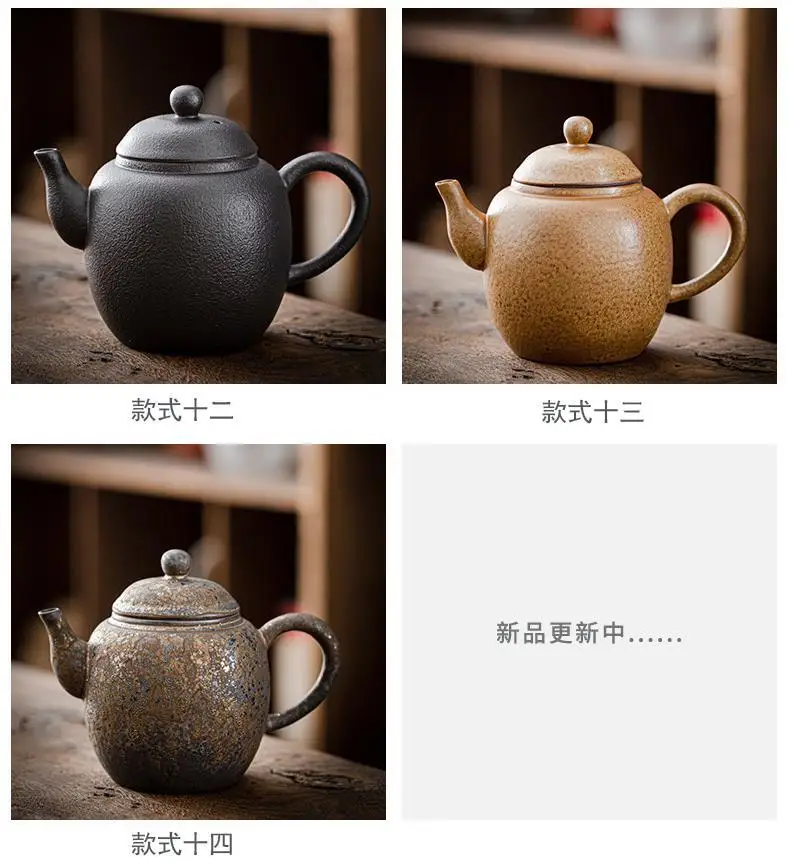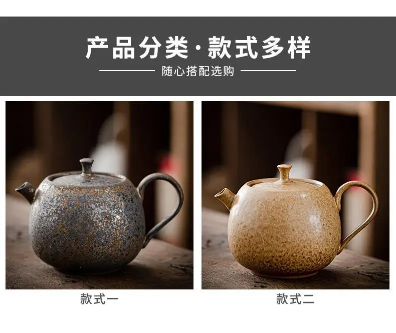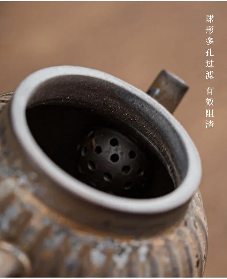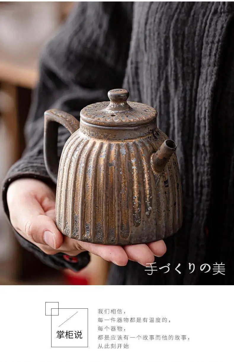 Household Kung Fu Tea Set Teapot Gilt Tea Maker Japanese Stoneware Teapot Single Pot Handmade Retro Ceramic Round Jug Teaware