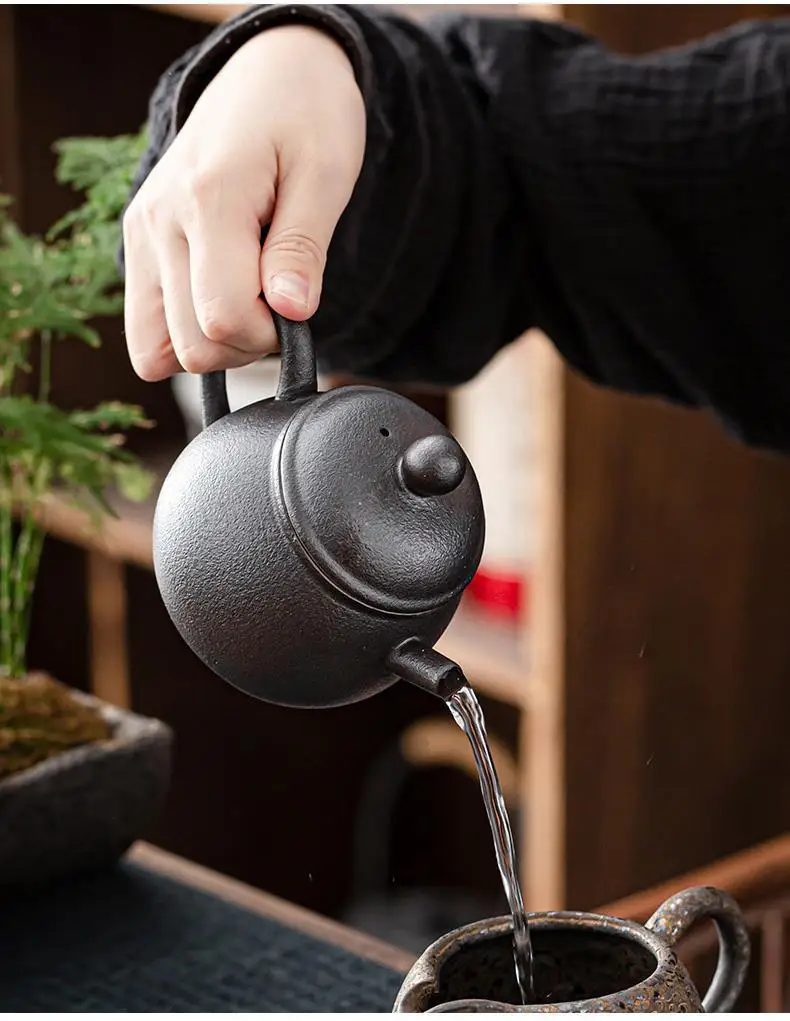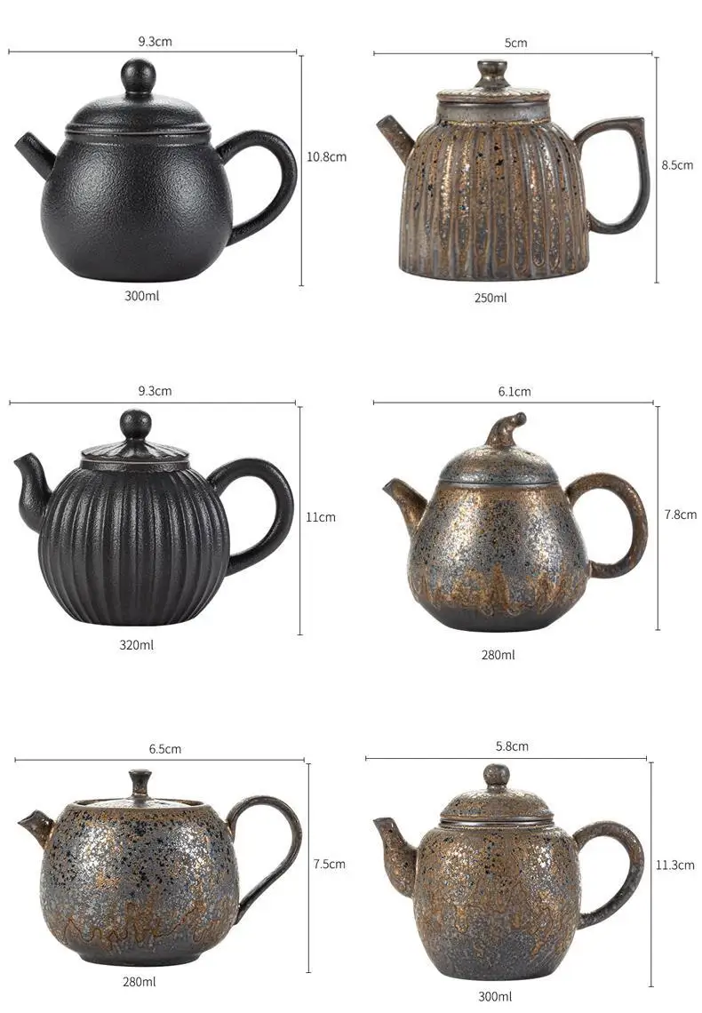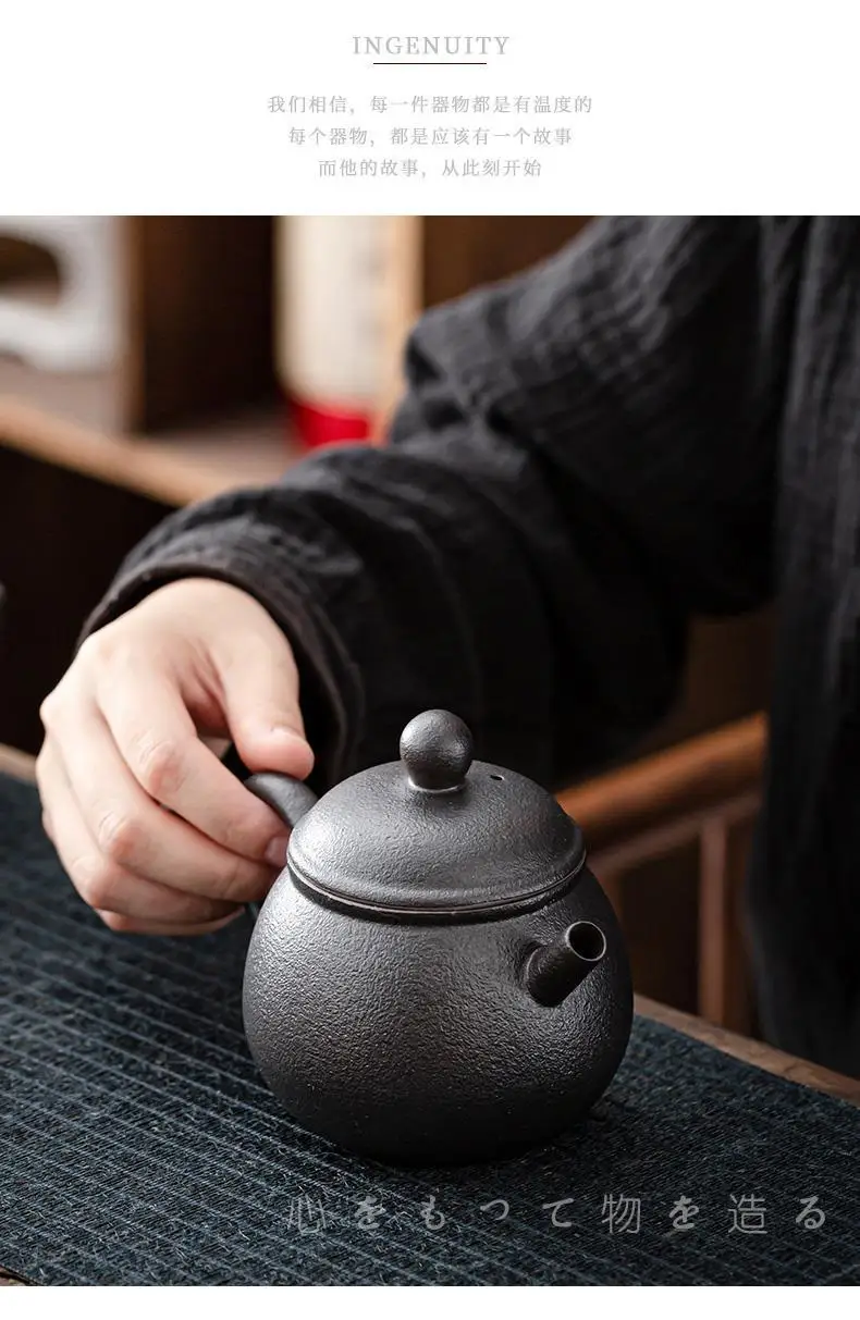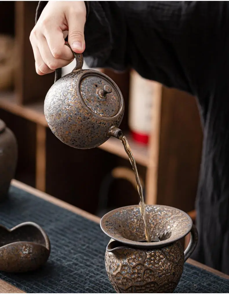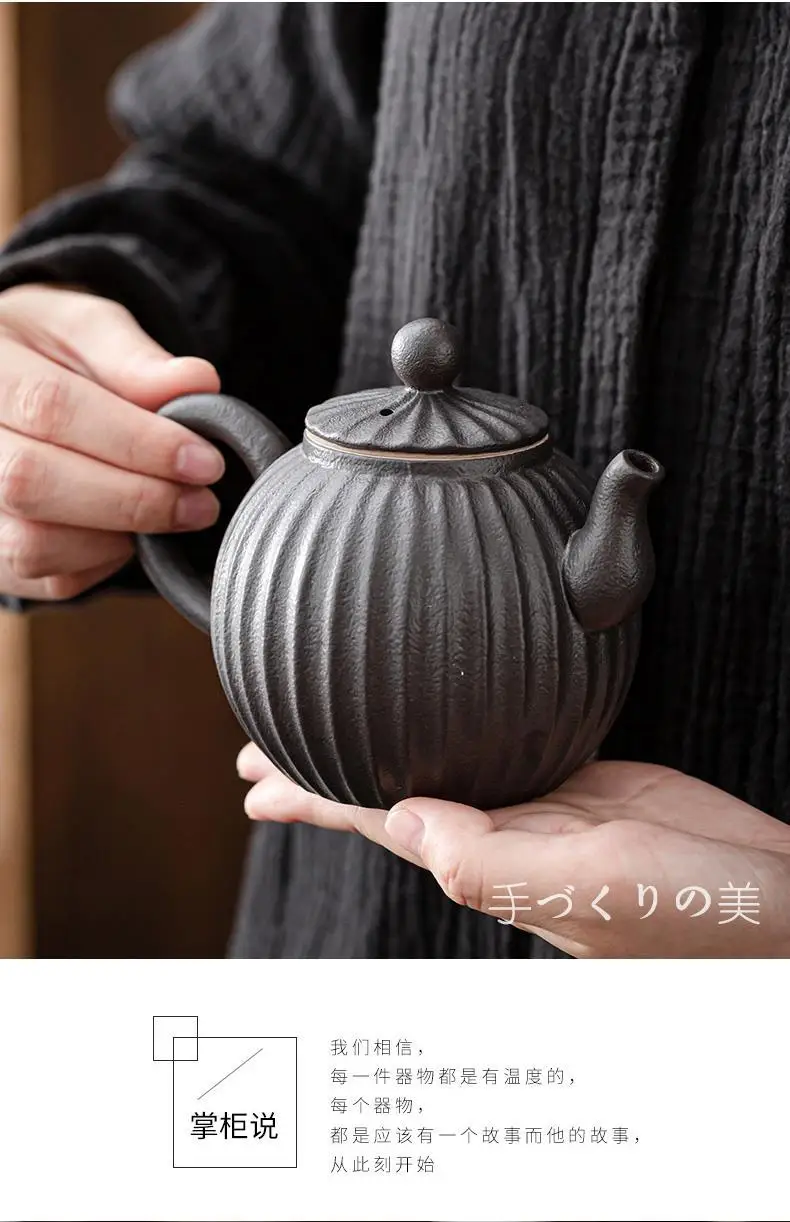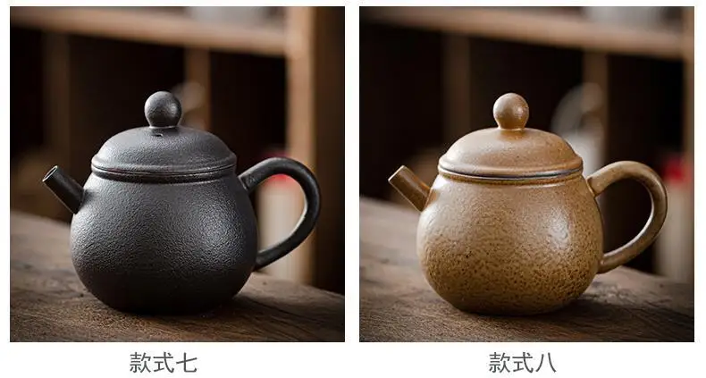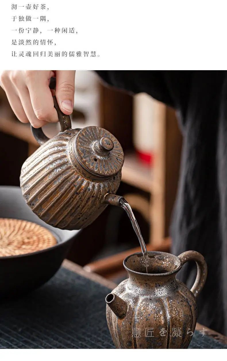 Household Kung Fu Tea Set Teapot Gilt Tea Maker Japanese Stoneware Teapot Single Pot Handmade Retro Ceramic Round Jug Teaware