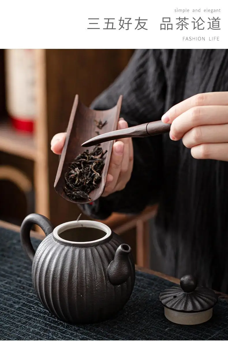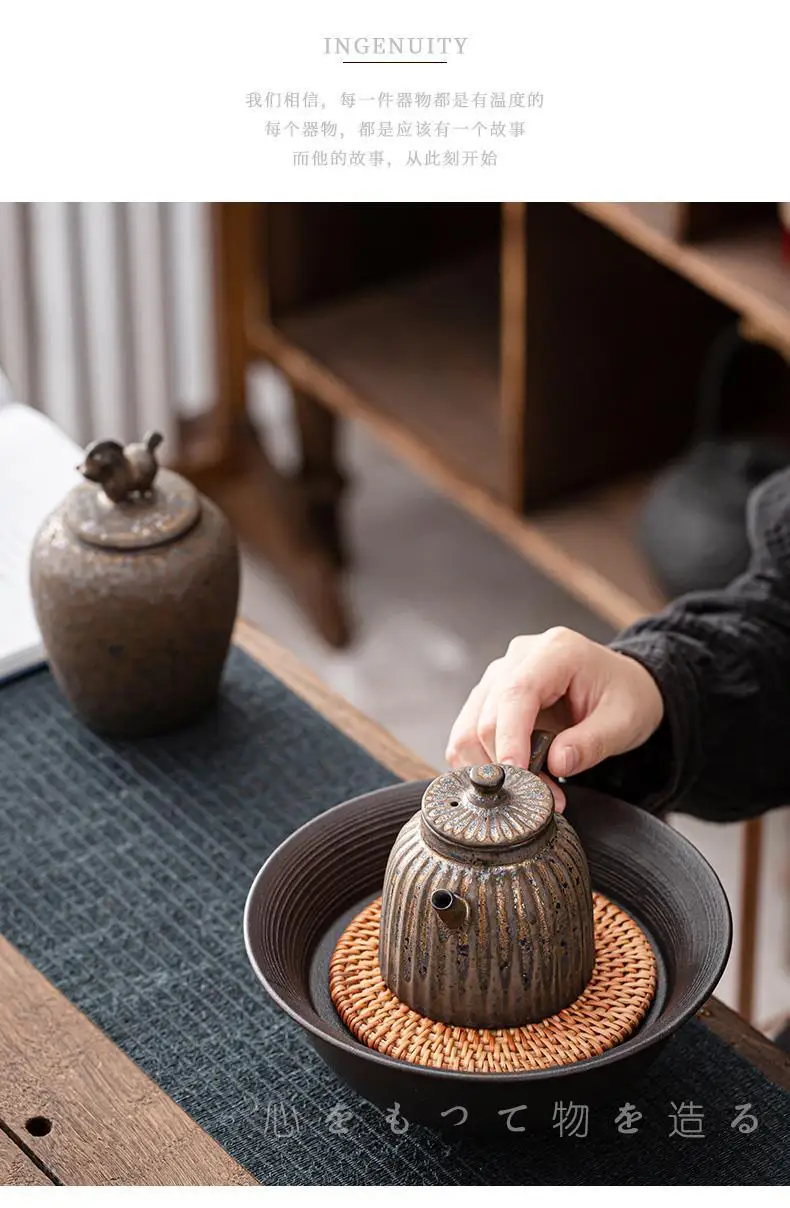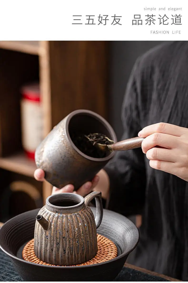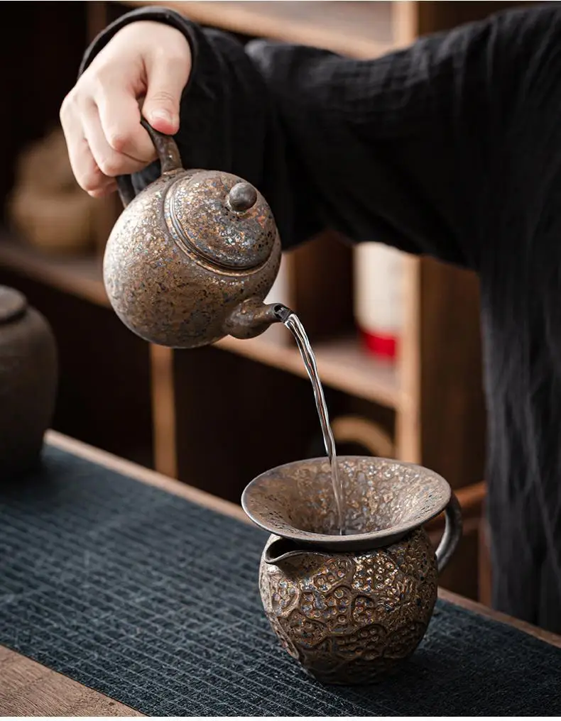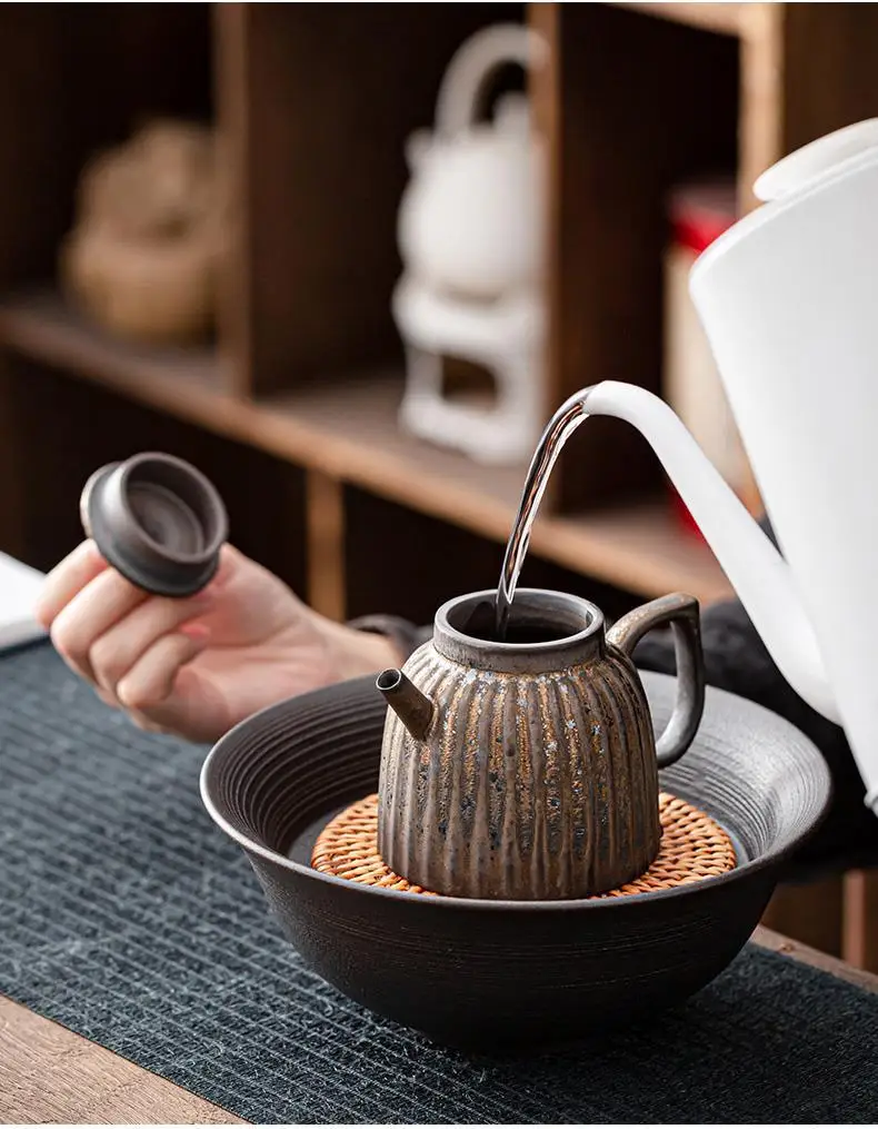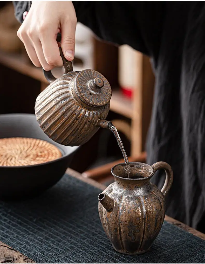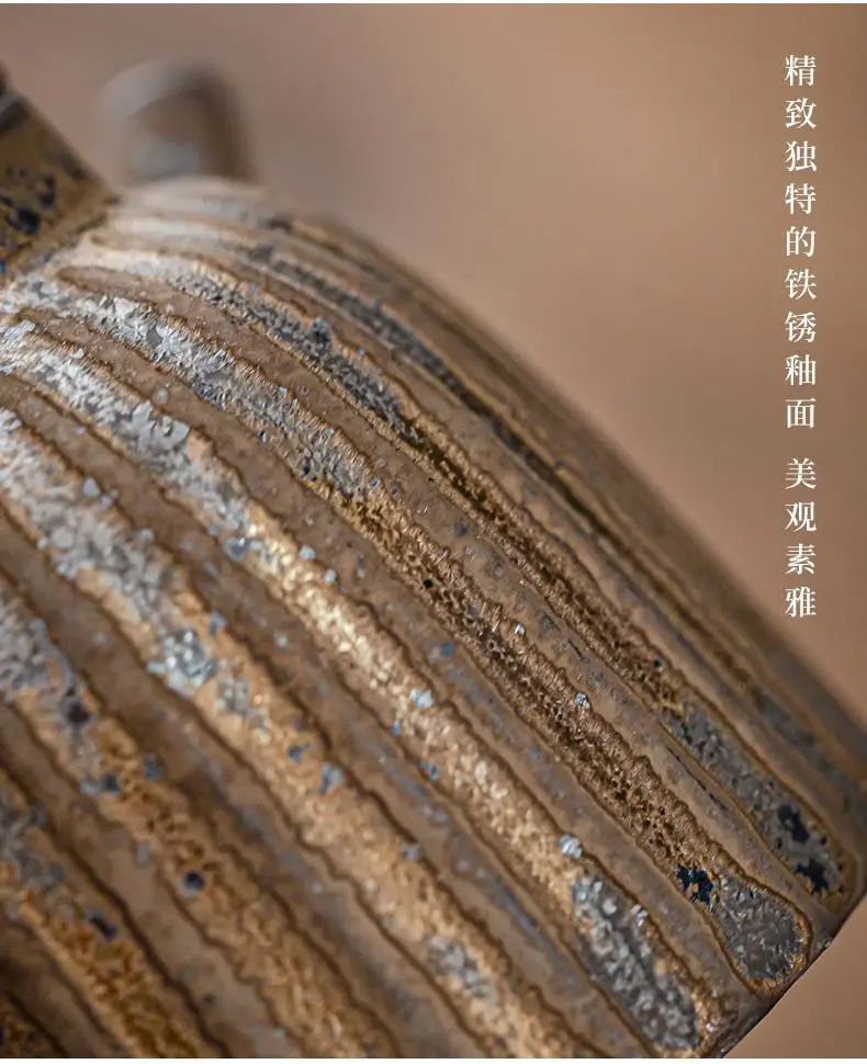 Household Kung Fu Tea Set Teapot Gilt Tea Maker Japanese Stoneware Teapot Single Pot Handmade Retro Ceramic Round Jug Teaware