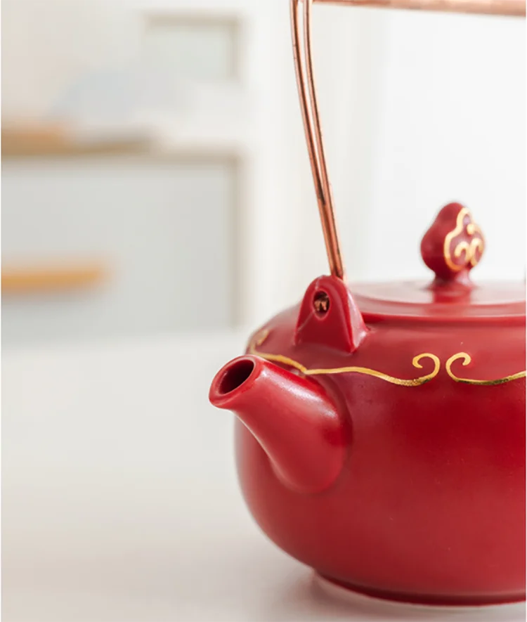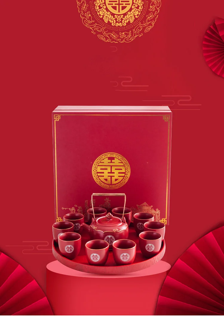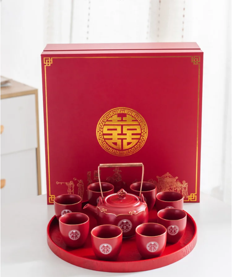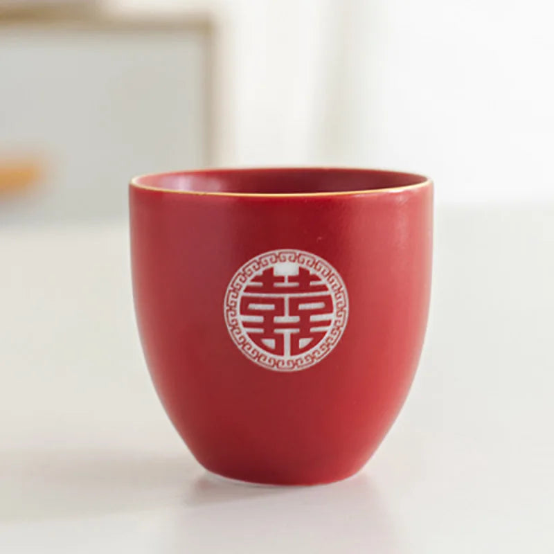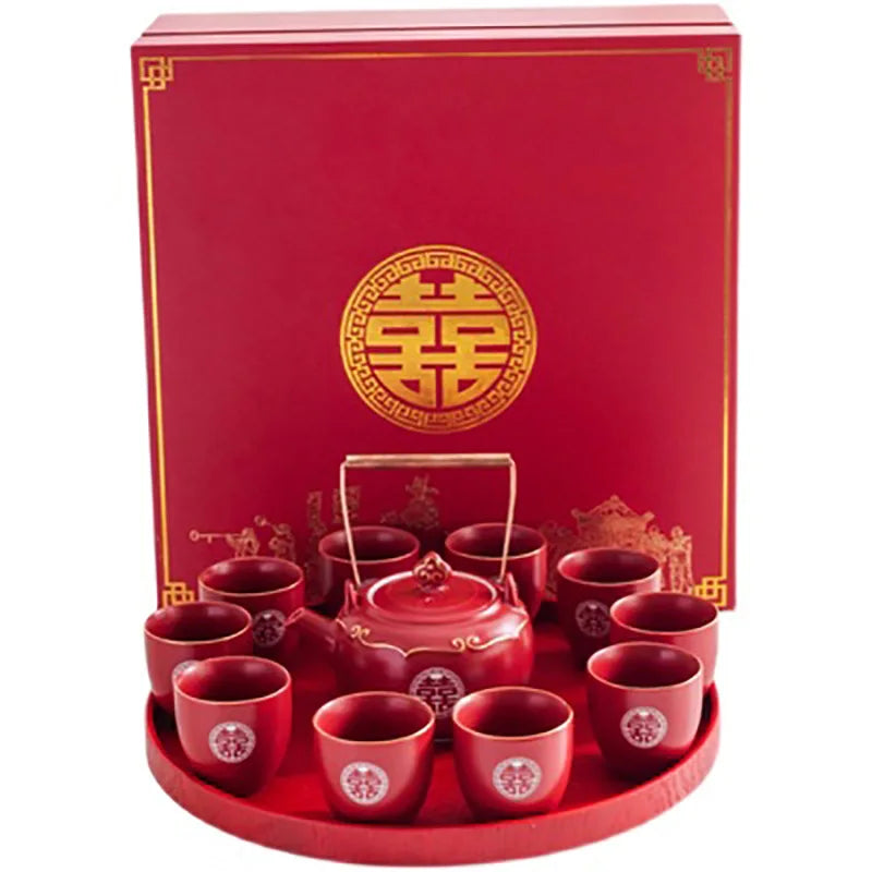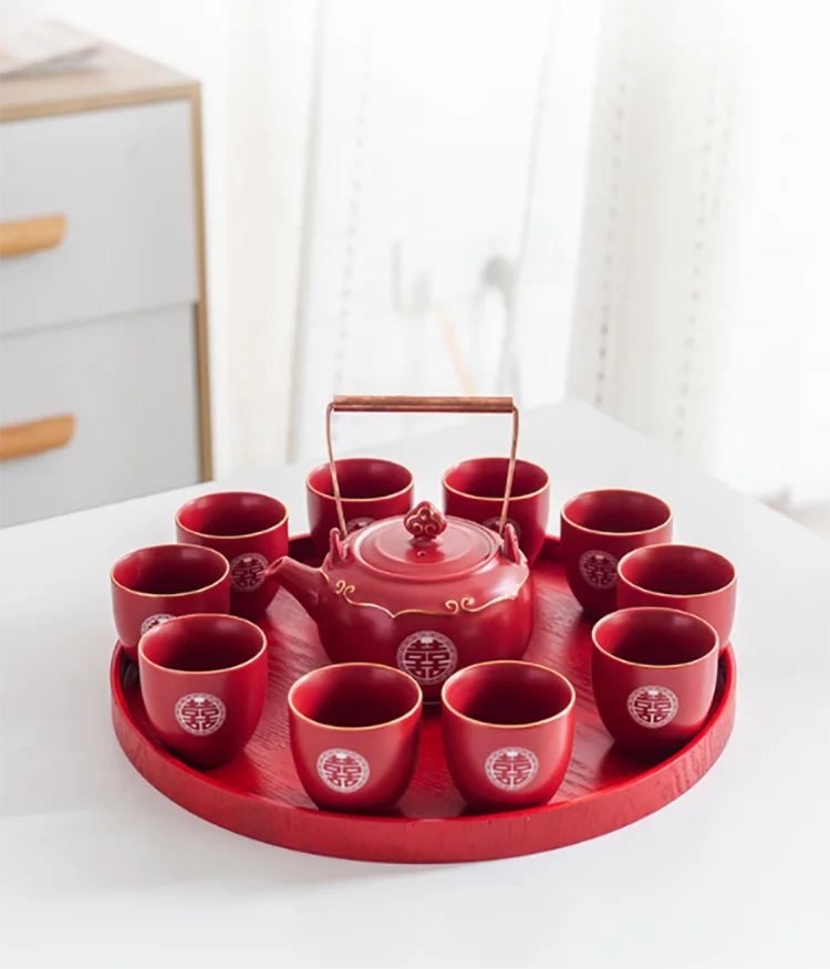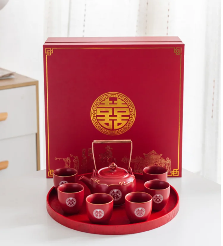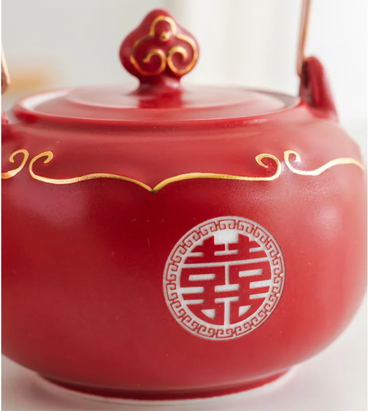 Household Red Ceramics Teapot Teaware Double Happiness Tea Pot and Cup Set Customized Wedding Newlywed Souvenir Gift Supplies