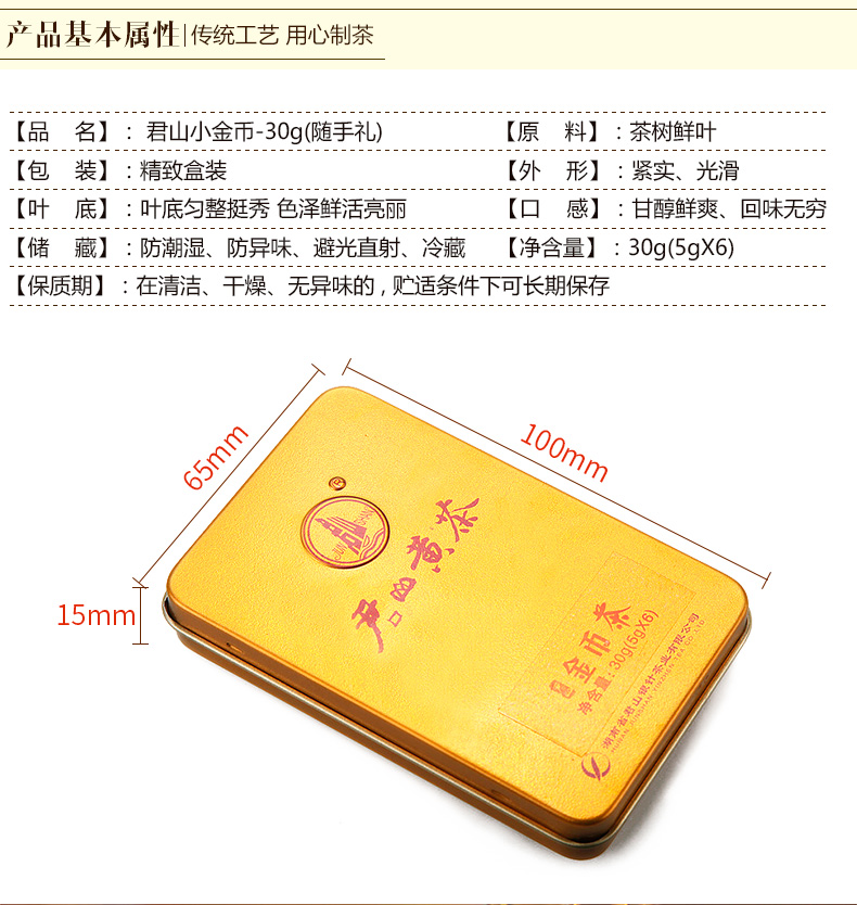 Jun Shan Huang Cha is less expensive than Jun Shan Yin Zhen needle tea, first grade leaves harvested from the same area, followed by traditional process, you can try the famouse yellow tea at an affordable price. An authentic product from Hunan Junshan Yinzhen Tea Co., Ltd.