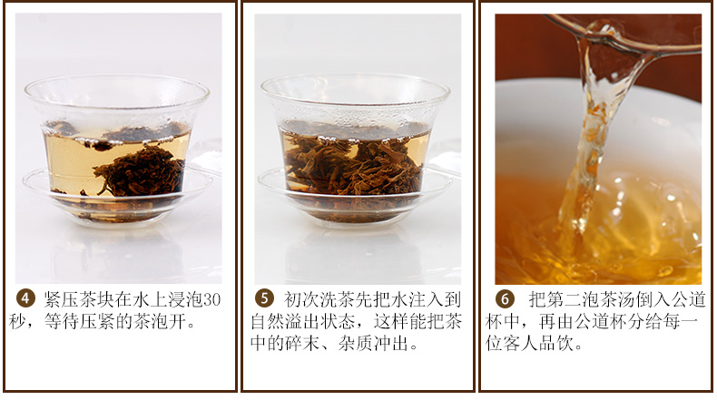 Use each cake for 200ml of water. Quickly rinse the tea leaves with hot water at 80 degree Celsius, and then gently pour hot water at 80-85 degree C into the teapot, let it brew for 2 minutes. The leaves are good for 5 infusions. Add a little more time for each subsequent infusion.