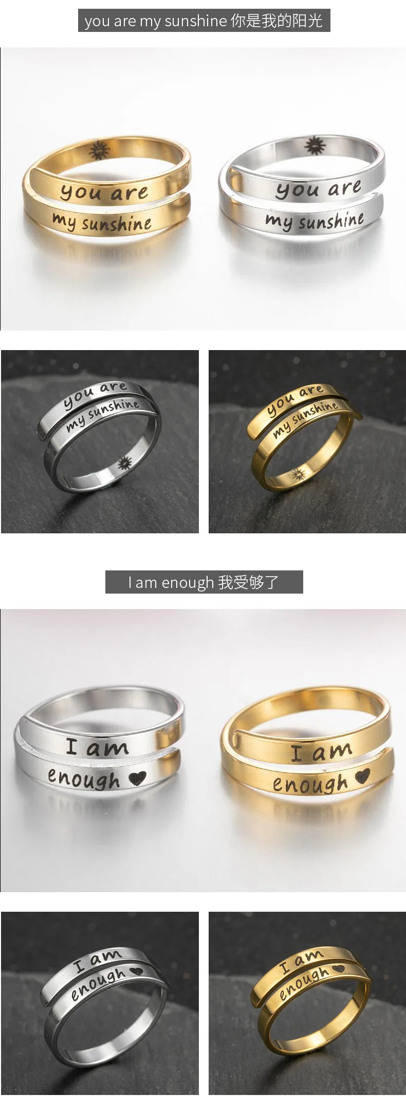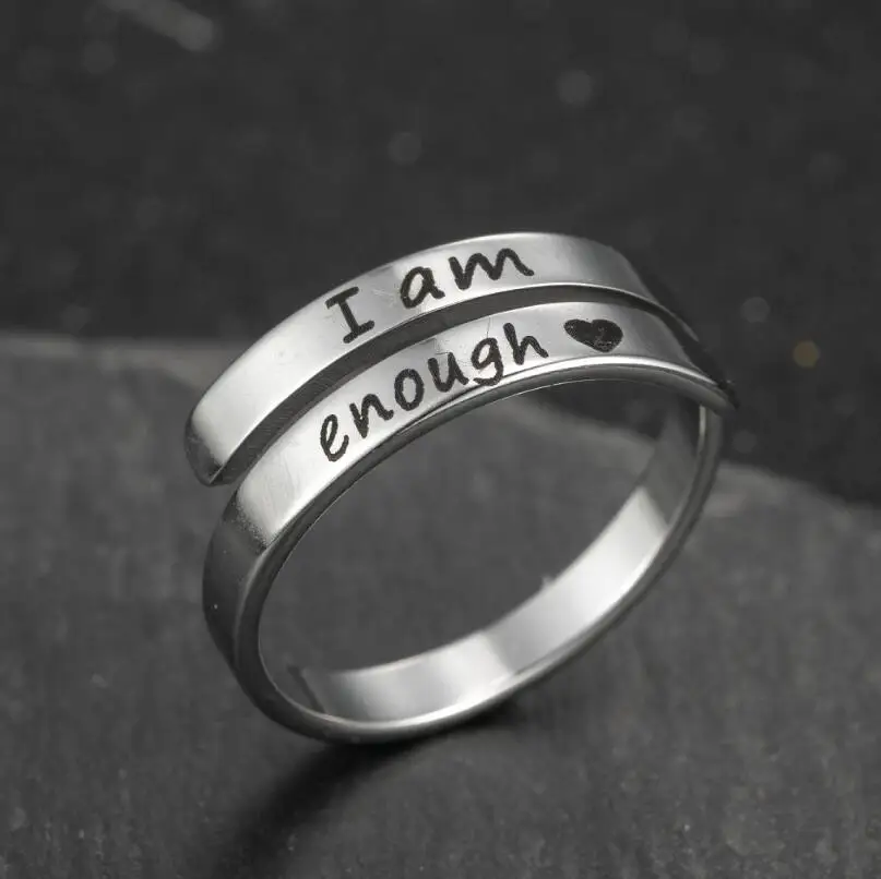 I Am Enough Rings for Women Stainless Steel Engrave Letter Couple Ring Cuff Inspiration Adjustable Opening Jewelry Love Gift