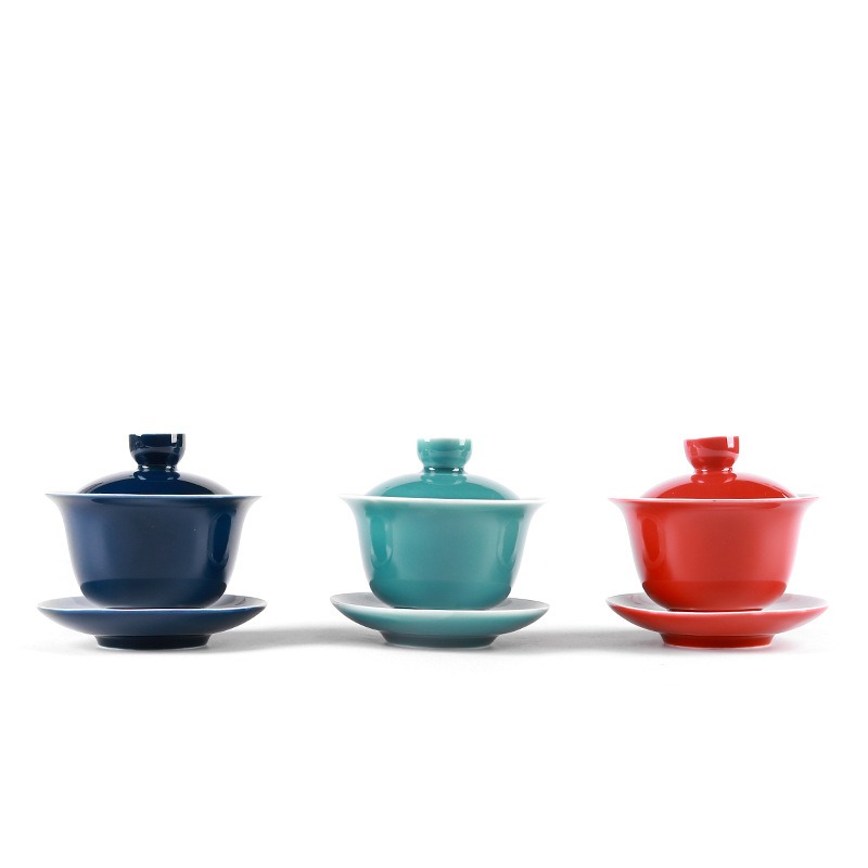 Indigo Glaze Ceramic Tea Tureen Cup Blue Gaiwan Tea Porcelain Pot Set Travel Kettle Hand Painted Red Cover Bowl Tea Set 180ml