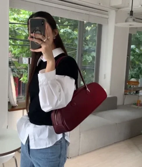 Ins Blogger Favor Fashion Cowhide Handbag Underarm Bag Good Mix Women's Purse