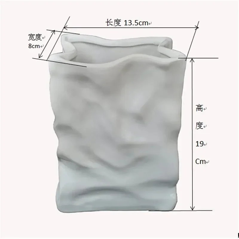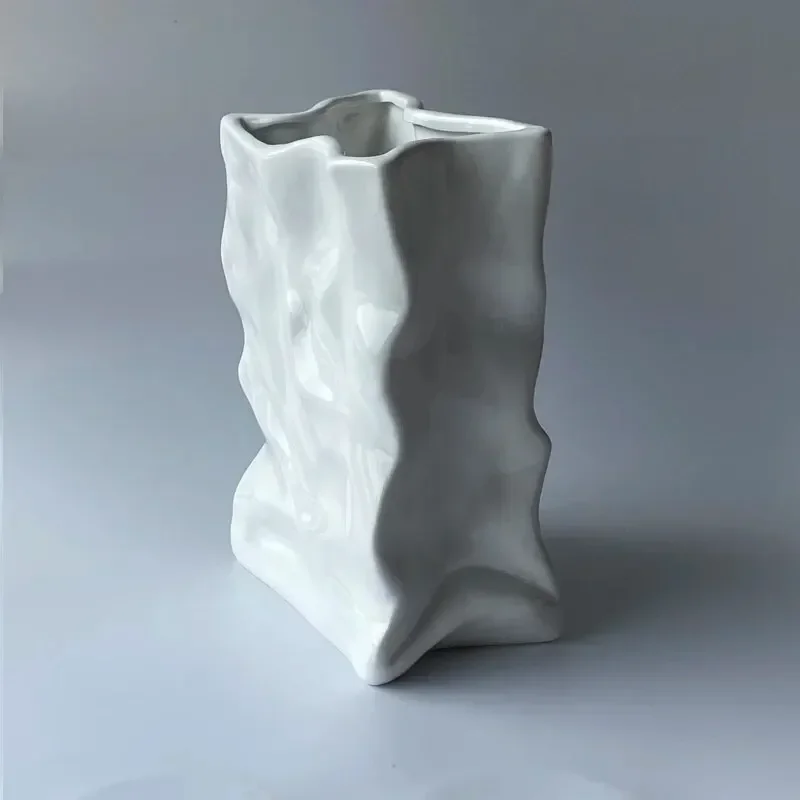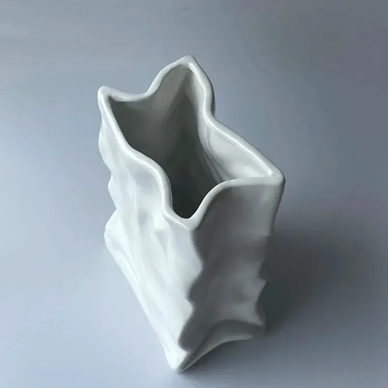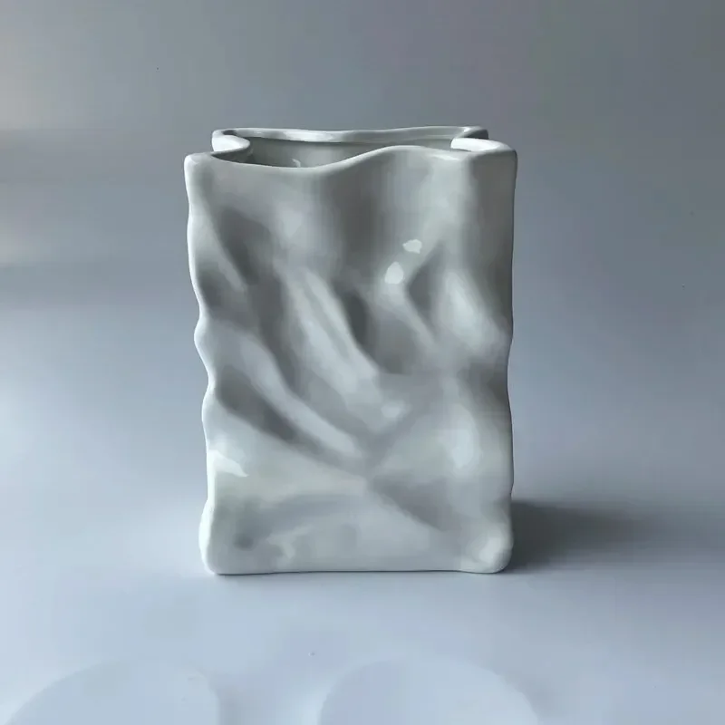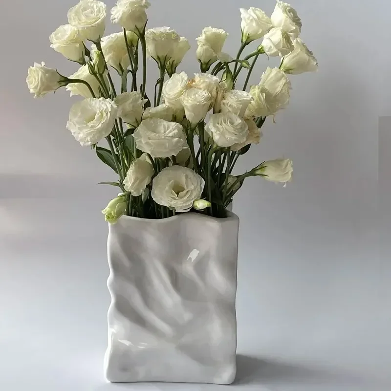 Ins Nordic Handbags Ceramic Vase White Square Rope Pleated Paper Bags Flower Pot Water Planting Room Home Decoration Accessories