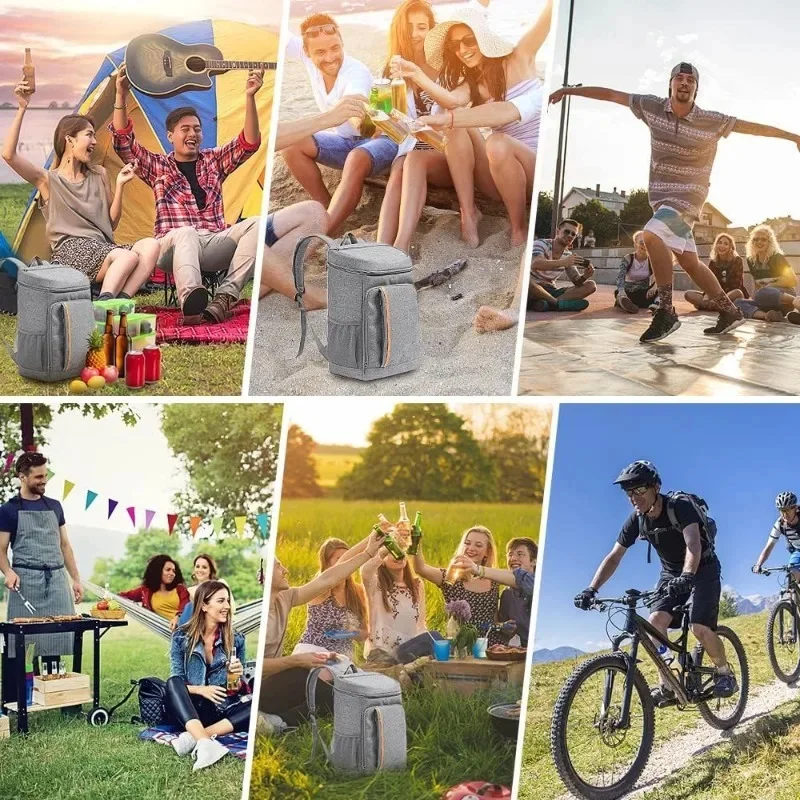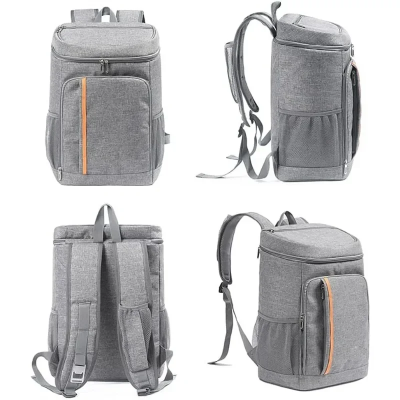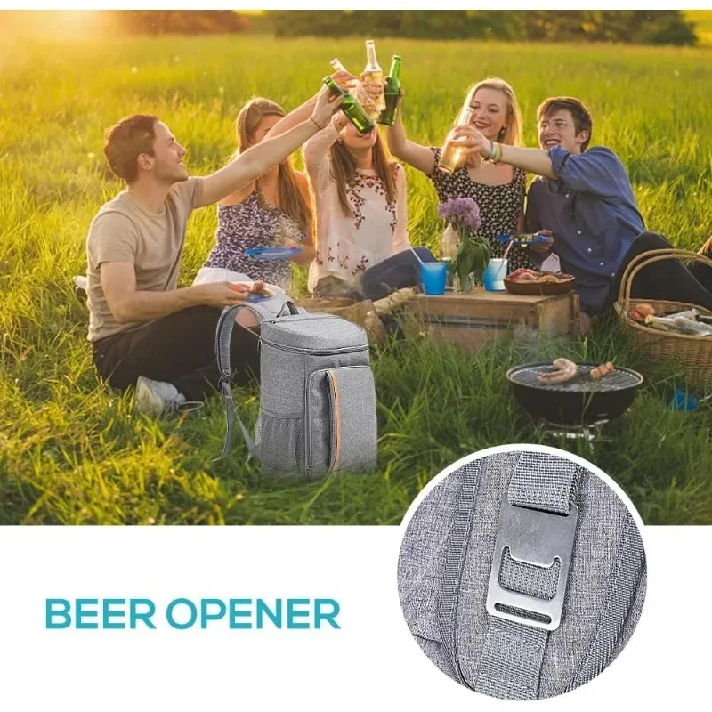 Multiple Pockets: 1 main large coolers compartment for drinks or food, 2 large zipper pocket in front for your dry items, and 1 zipper pocket on the lid used to organize small items, 2 plus large mesh side pockets which are perfect space for tall beverages or water bottle. 1 beer opener and 1 mesh pocket for phone on the strap.