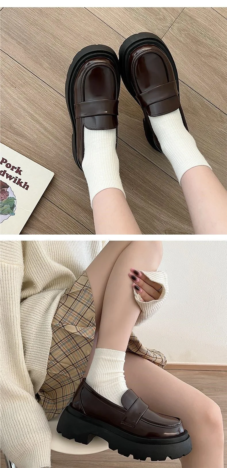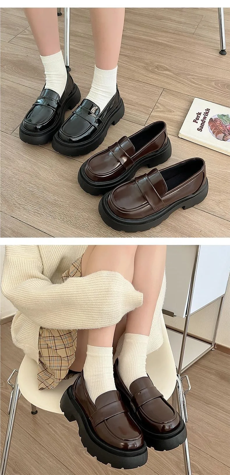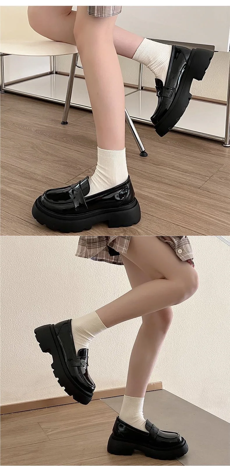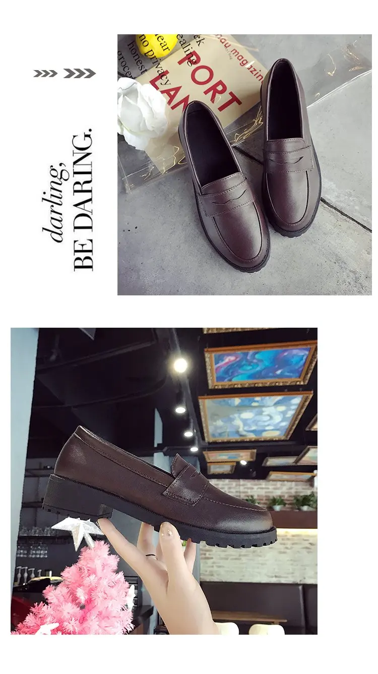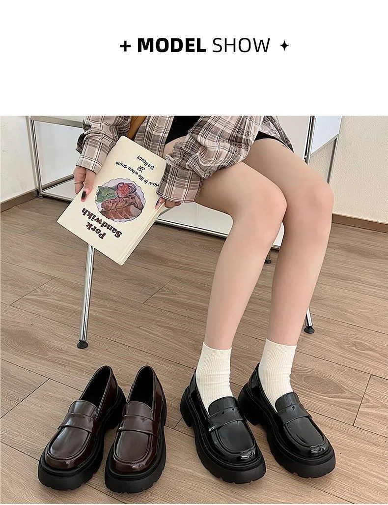 Japan Style Students Girl JK Shoes Female PU Leather Loafers Platform Elevator Shoes