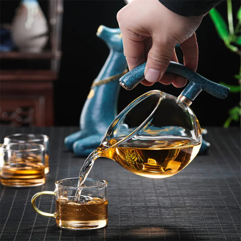 Japanese High Borosilicate Glass Teapot Creative Semi-Automatic Infuser Tea Coffee Pot Heat-Resistant Kettle With Base Teaware
