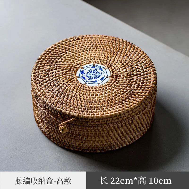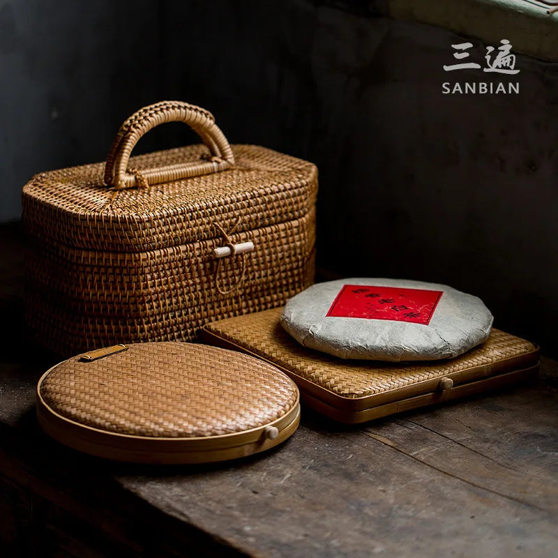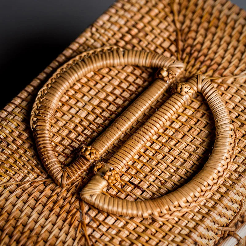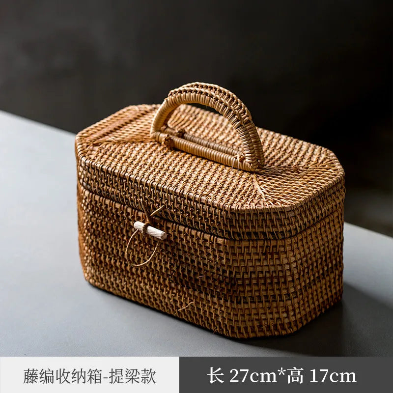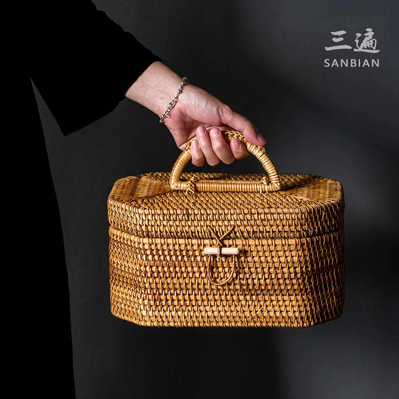 Japanese-Style Bamboo Woven Bag Rattan Storage Box Lifting Handle Portable Storage Box Tea Ceremony Utensils Tea Set Household