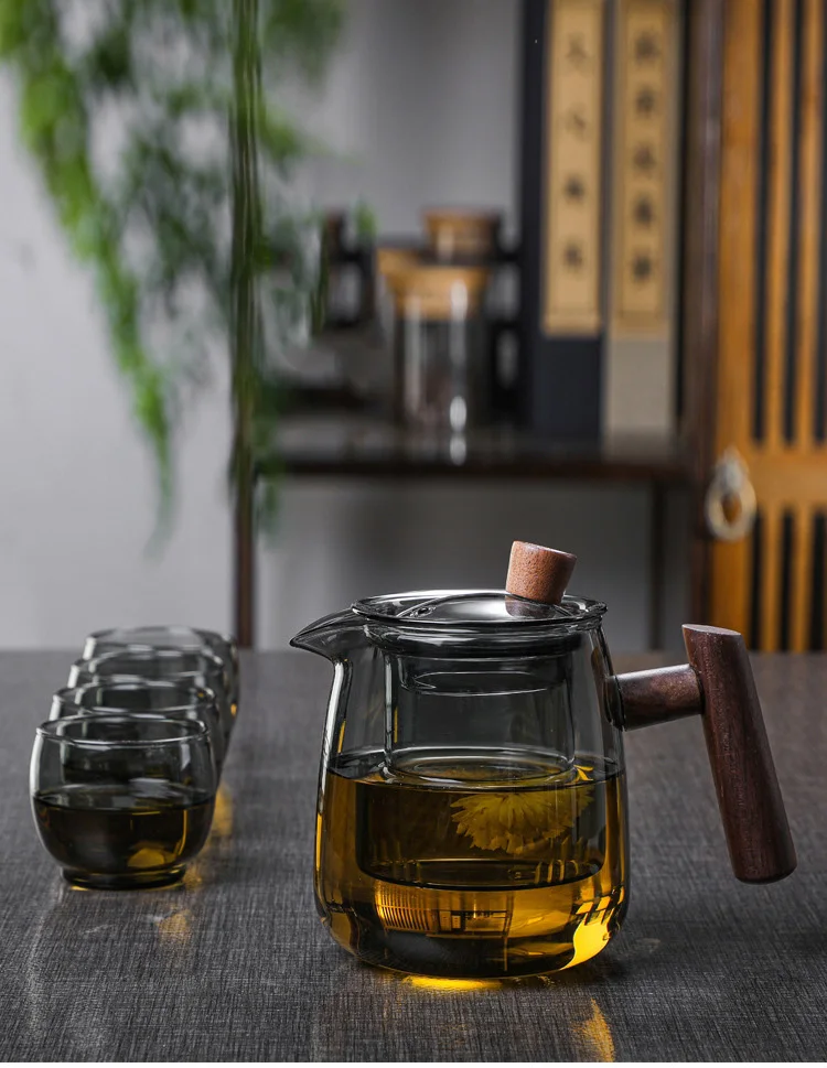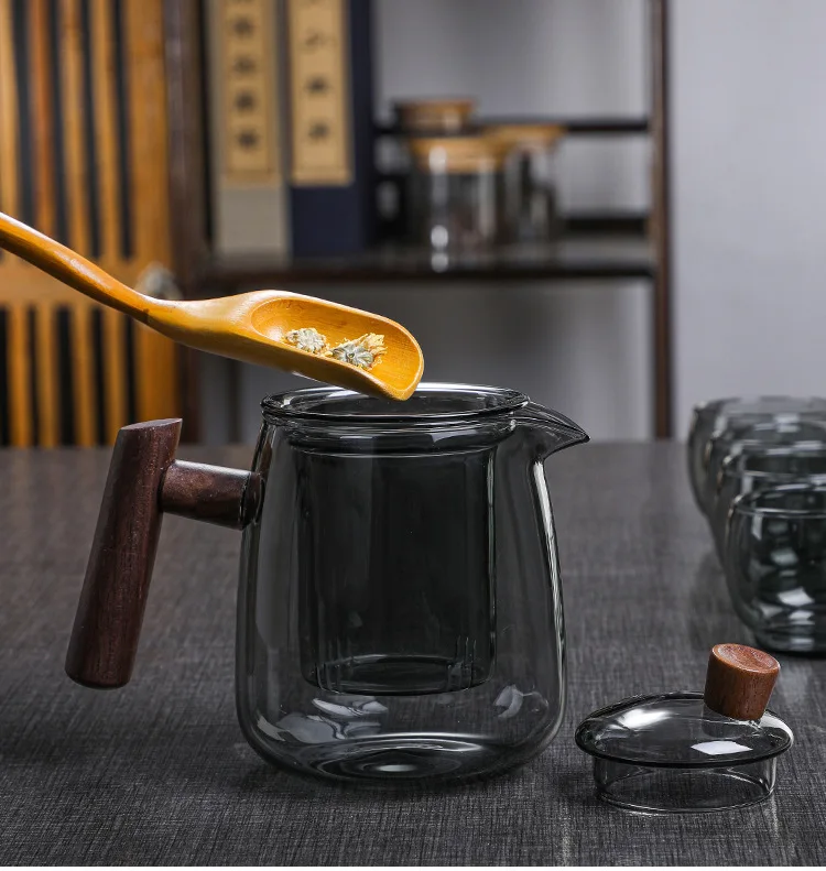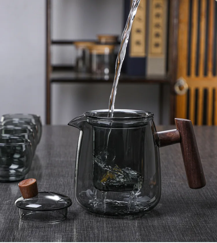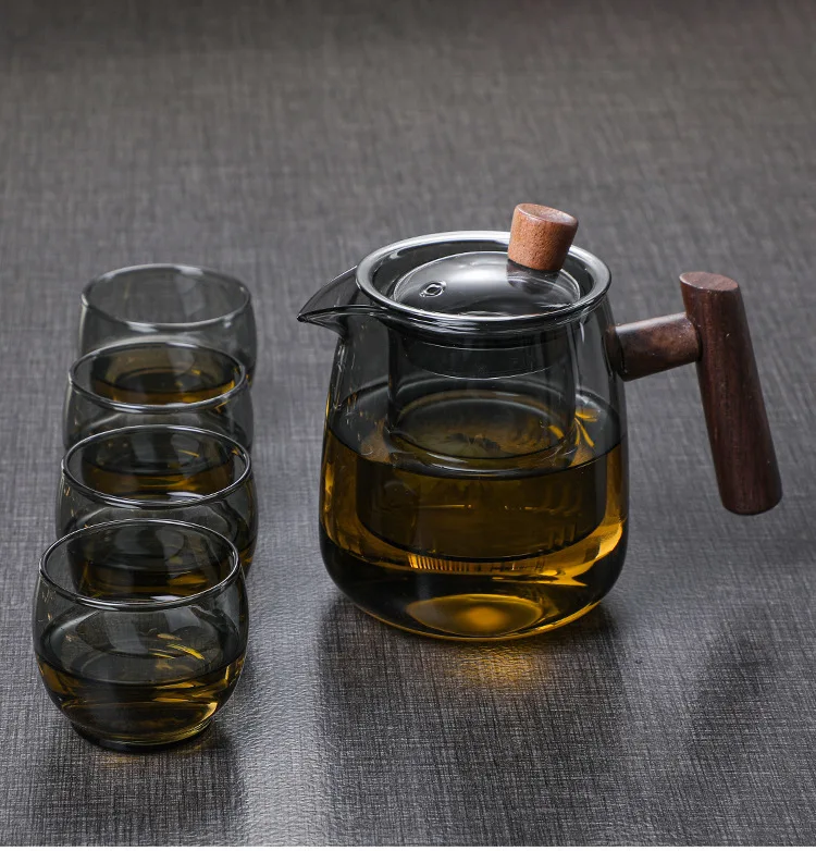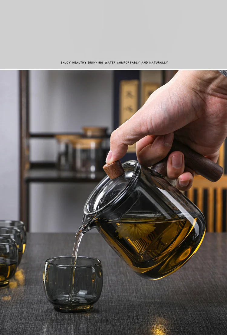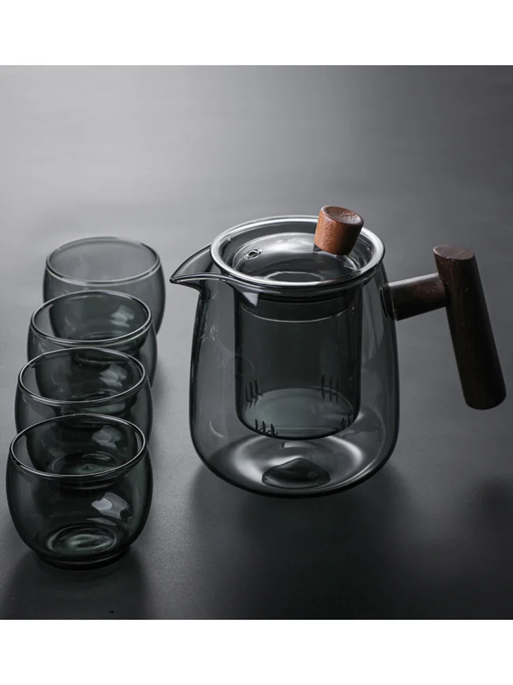 Japanese style glass teapot High temperature resistance built-in filter kung fu tea set suit- Clear-Smoke grey thickened glass