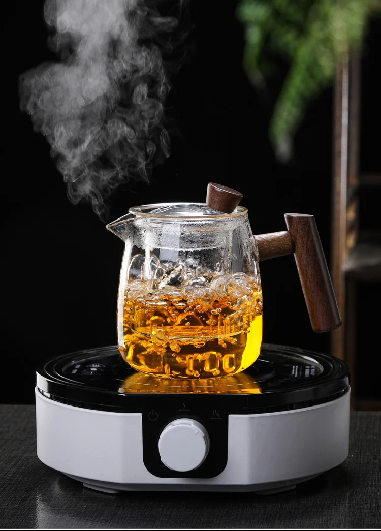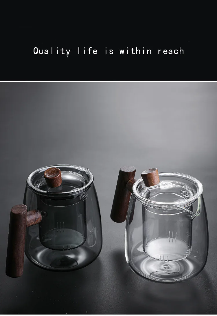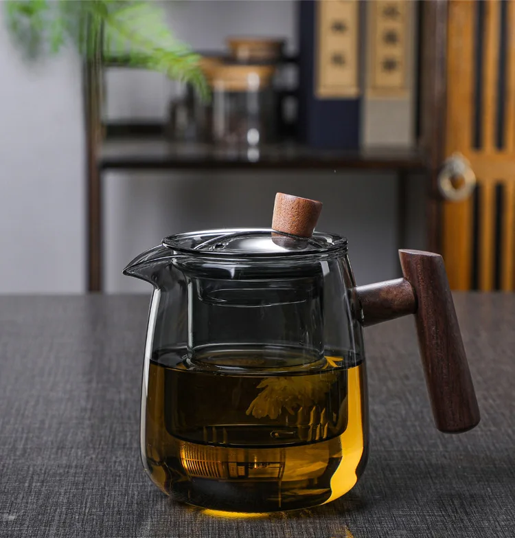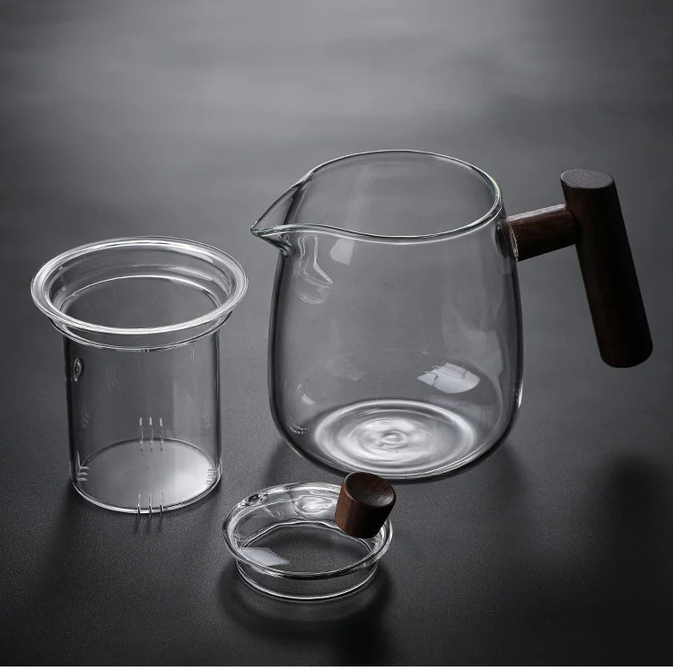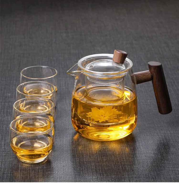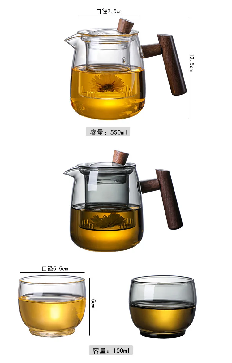 Japanese style glass teapot High temperature resistance built-in filter kung fu tea set suit- Clear-Smoke grey thickened glass