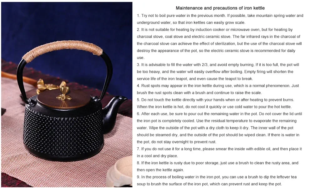 --Please dry the iron kettle in time after use to prevent rust!