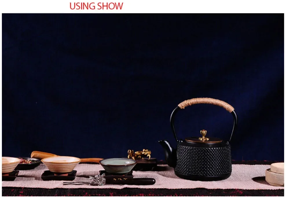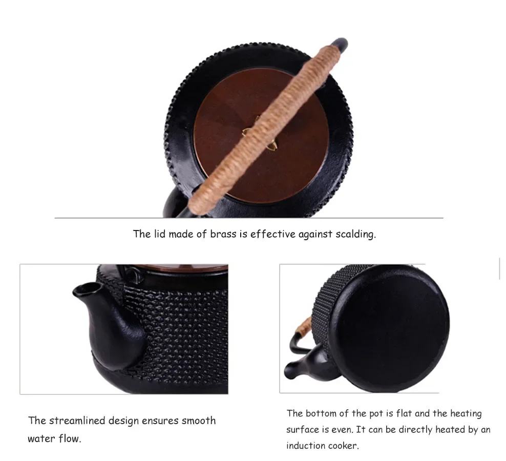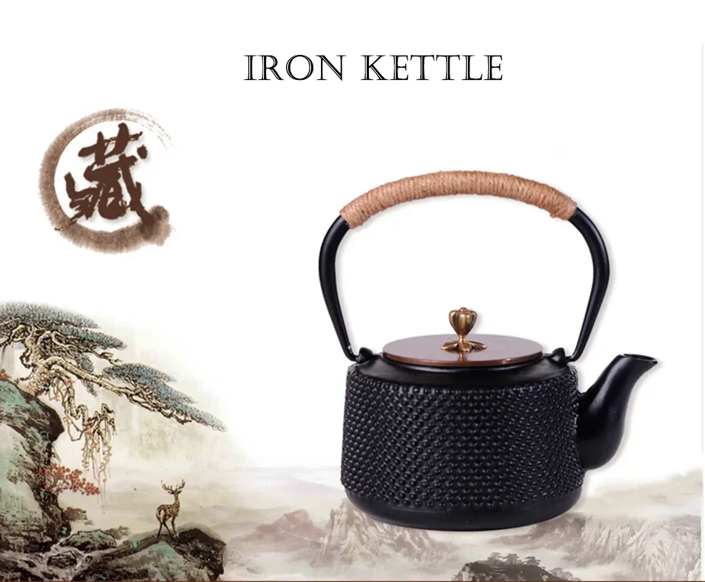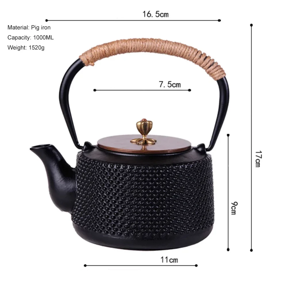 Japanese Style Pig Iron Teapot Cast Iron Kettle 1L Boiling Kettle Health Iron Kettle With Copper Lid Handle Pot