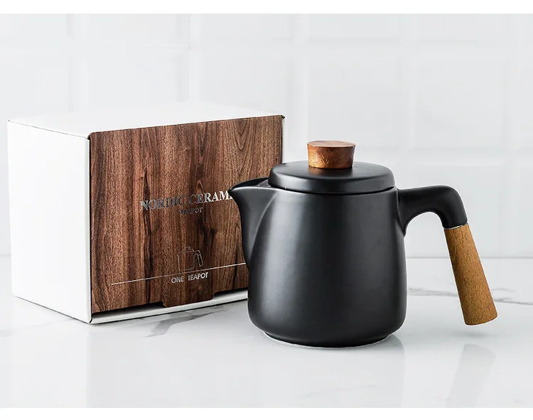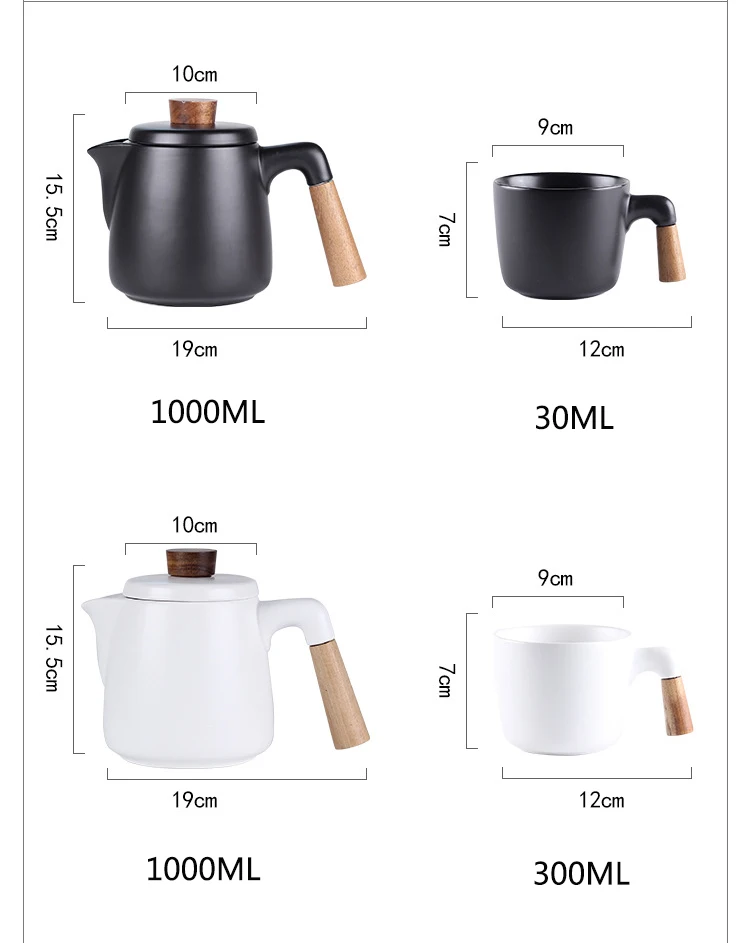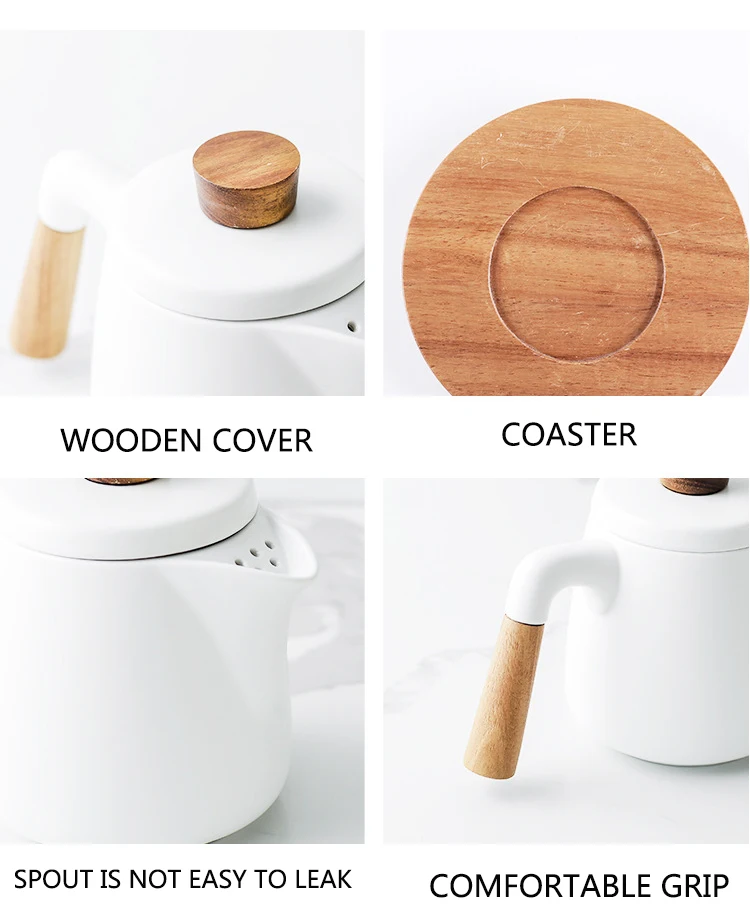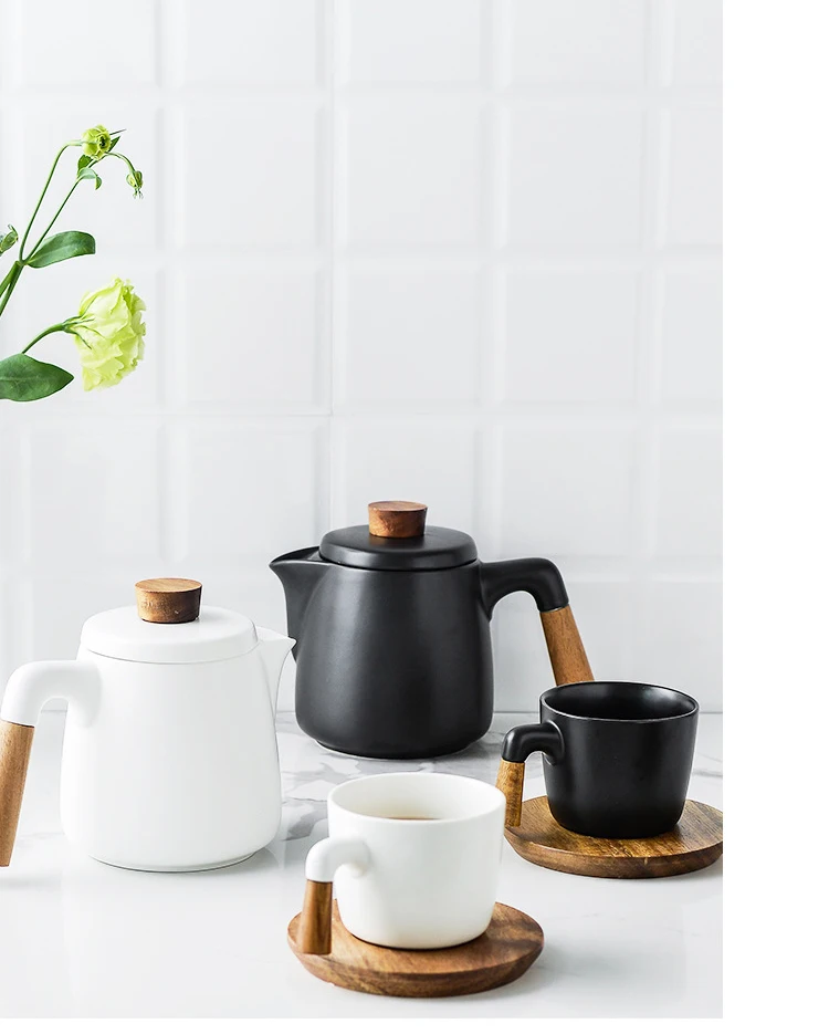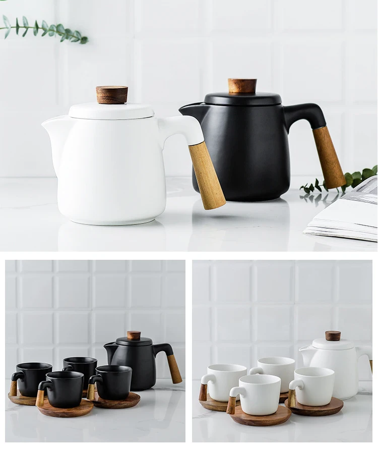 Japanese Style Tea Set Wooden Handle Ceramic Tea Pot Thickened High Borosilicate Glass Transparent Heat Resistant Tea Pot